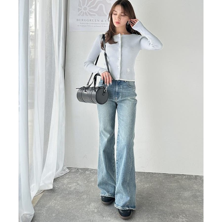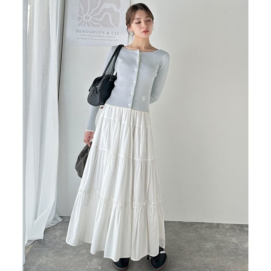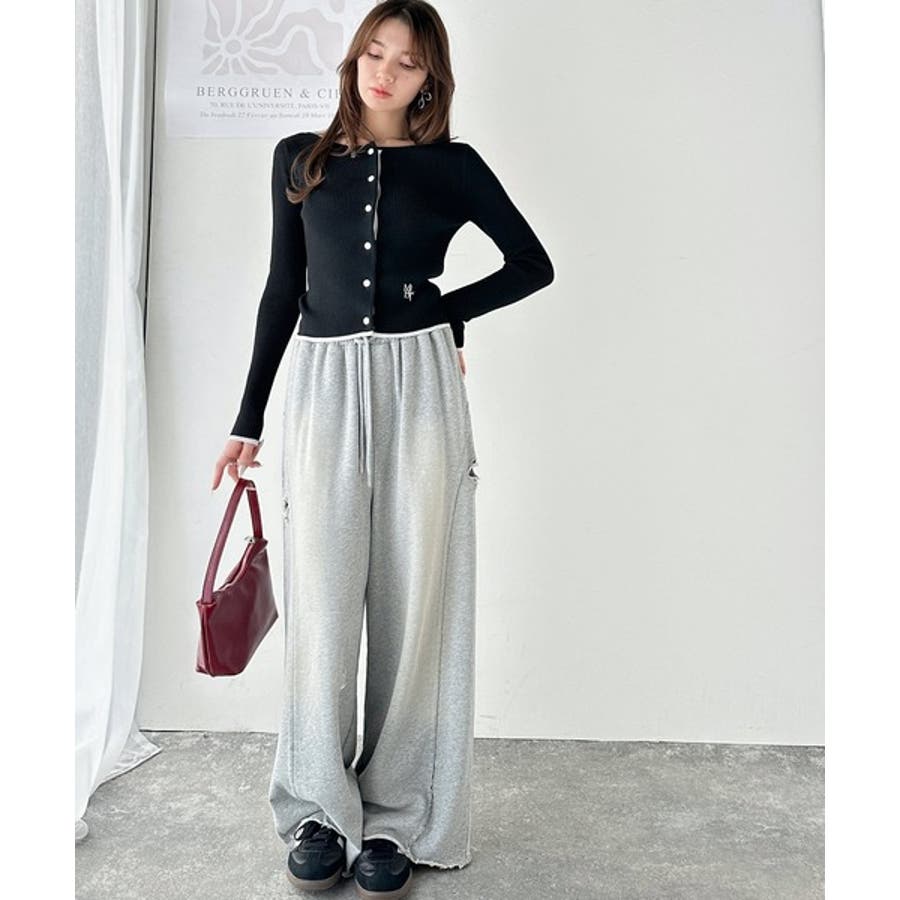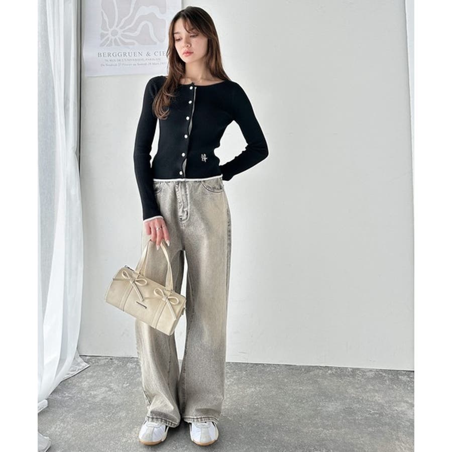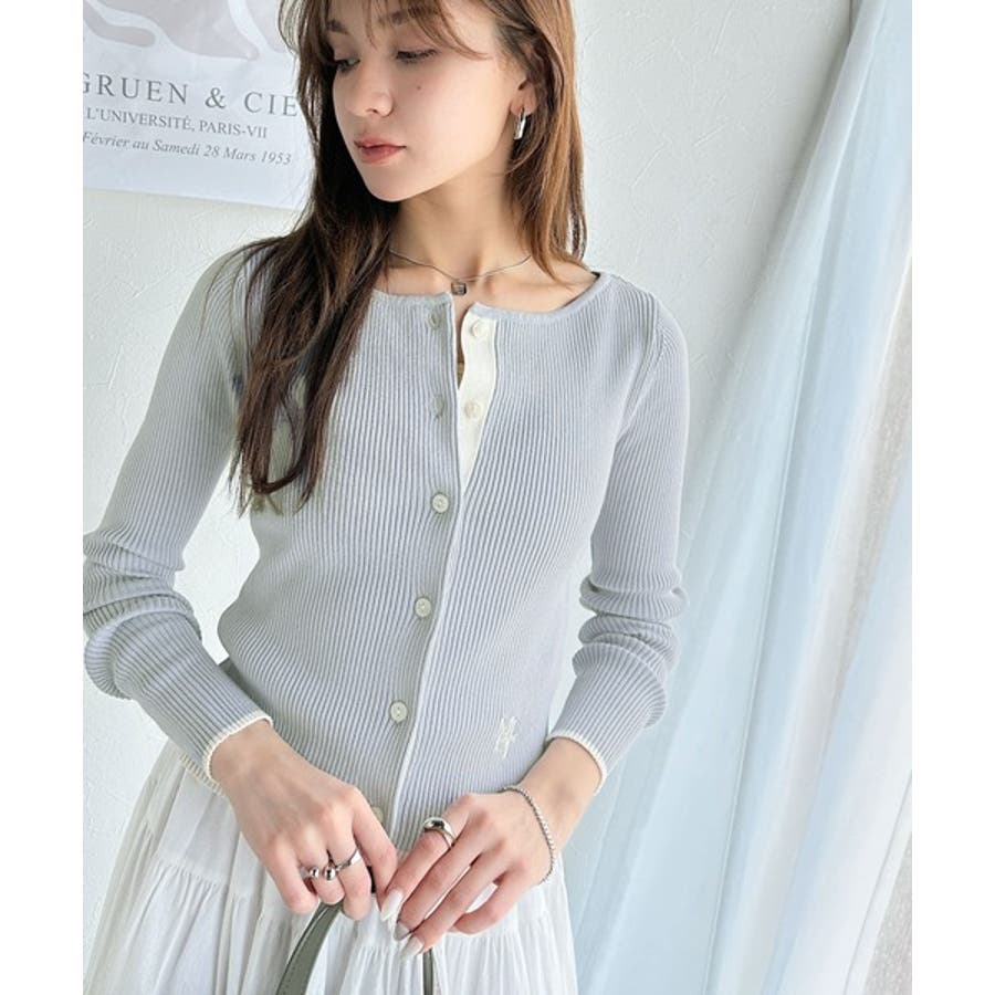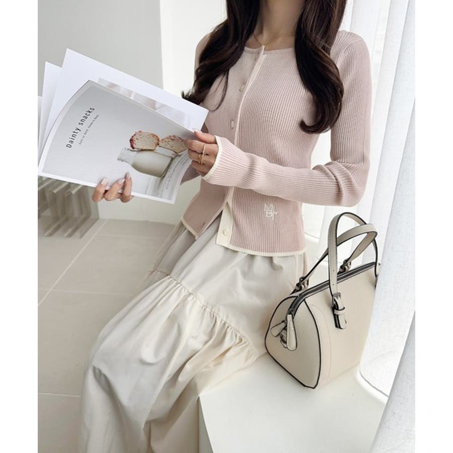【mily bilet】女性らしさ漂う。裾配色ロゴ刺繍コンパクトニットカーディガ…