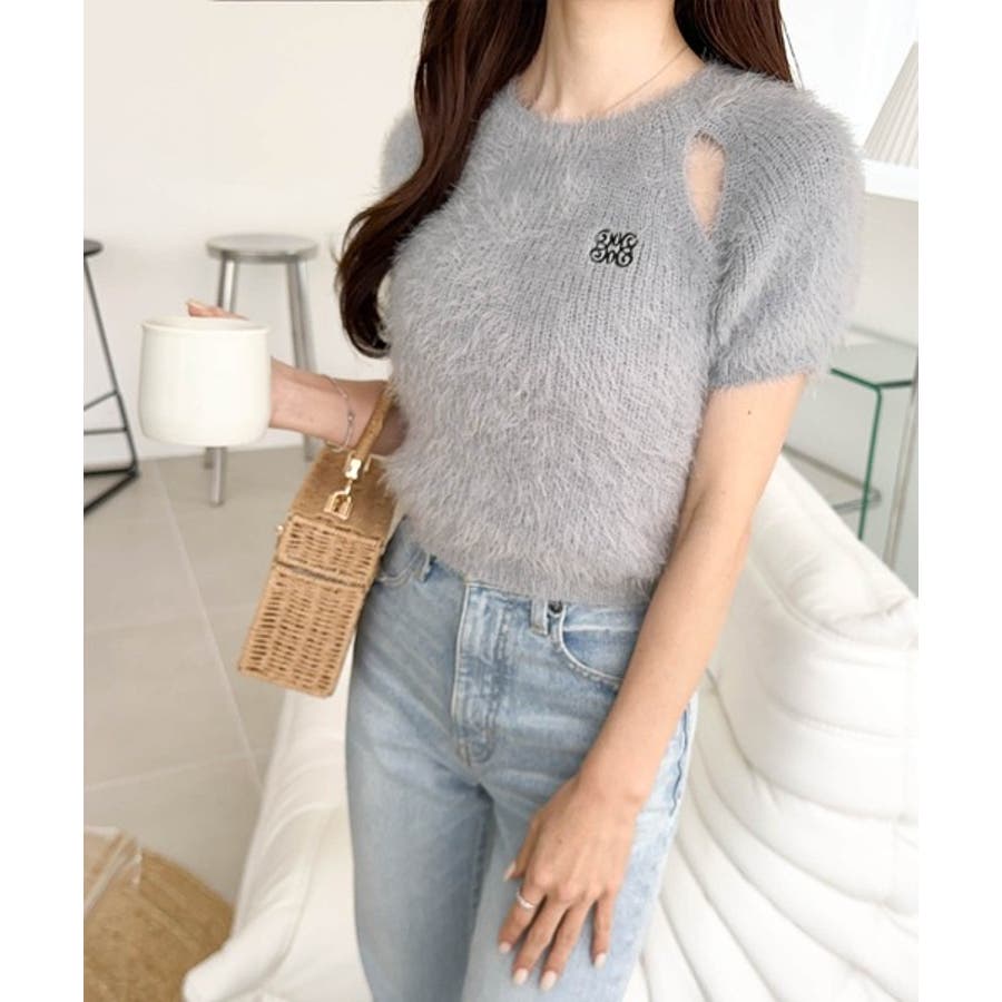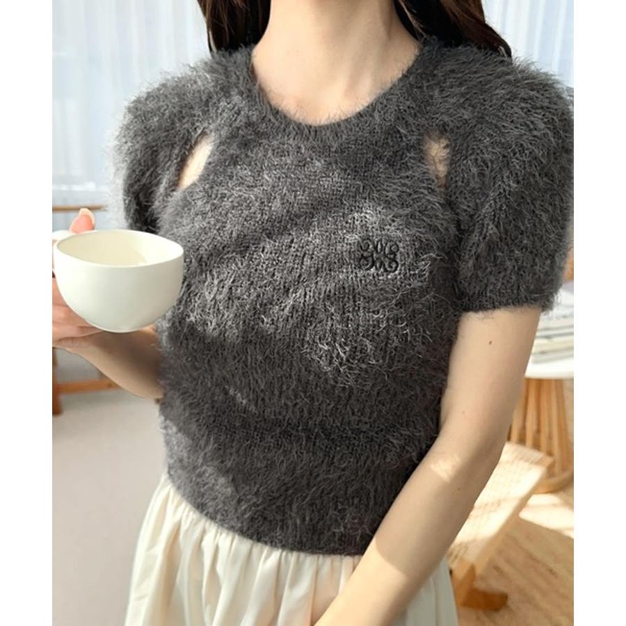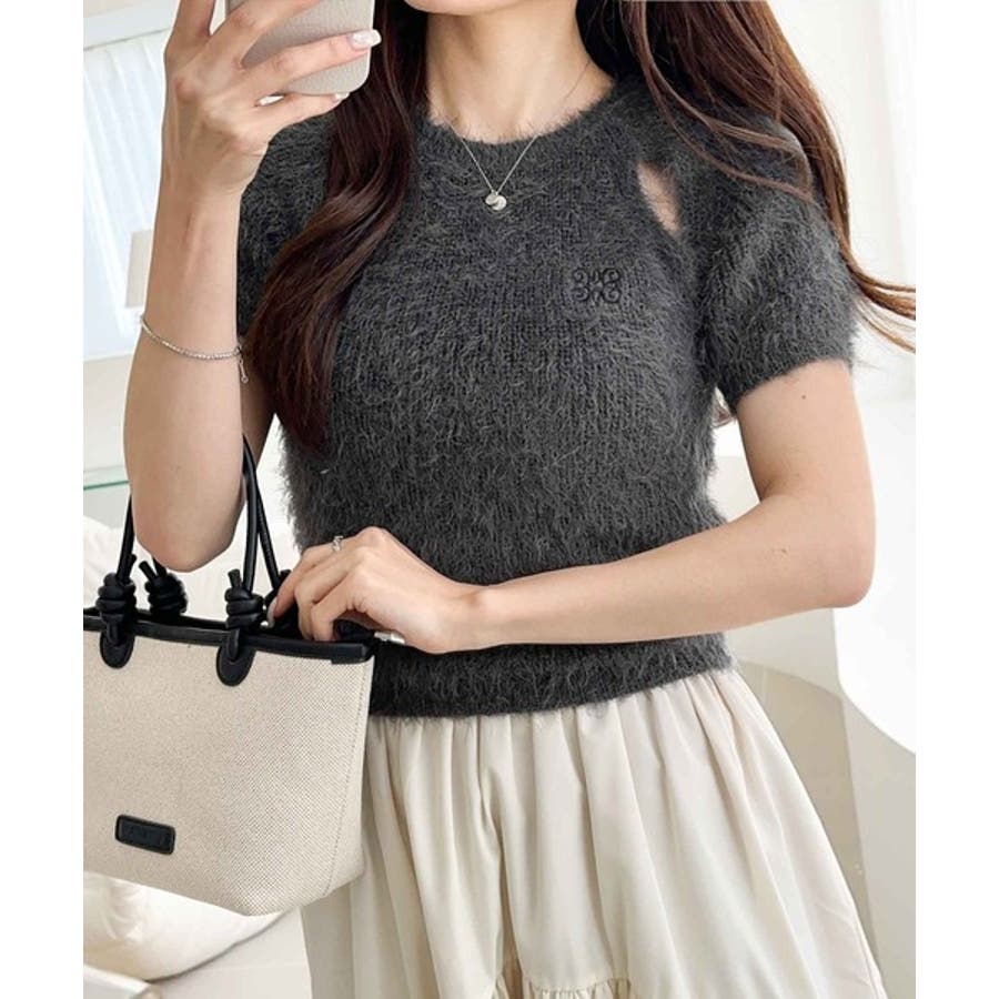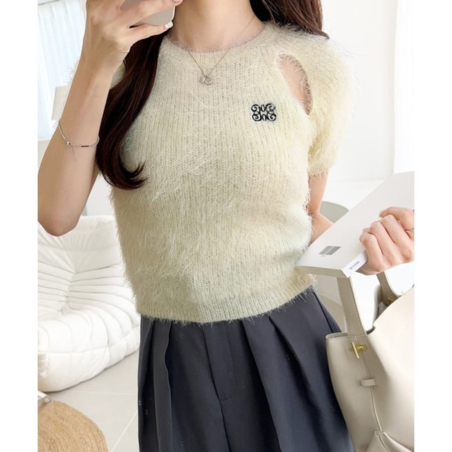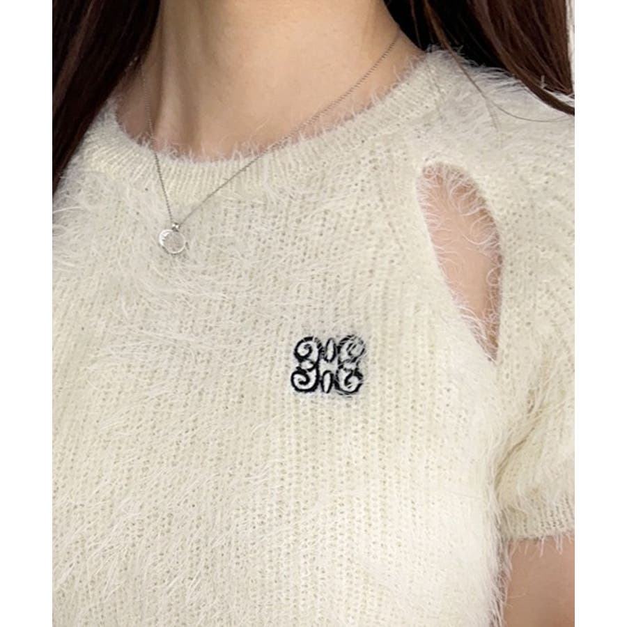 胸刺繍肩スリット半袖シャギーニットプルオーバーの登場!!