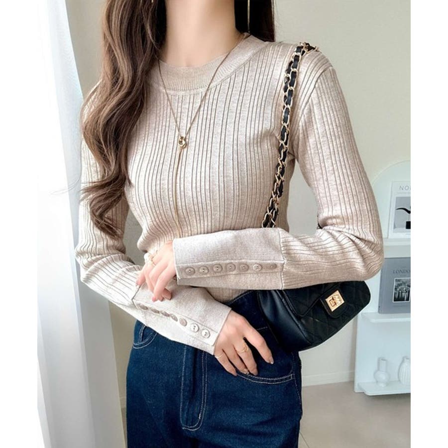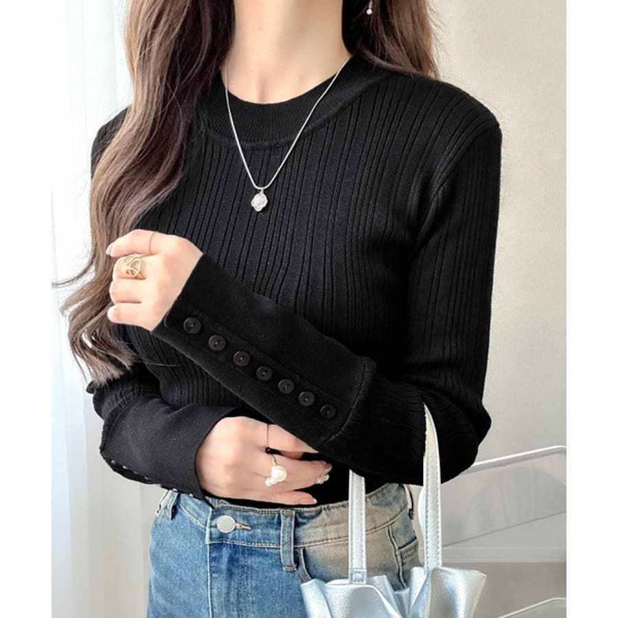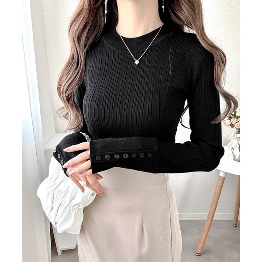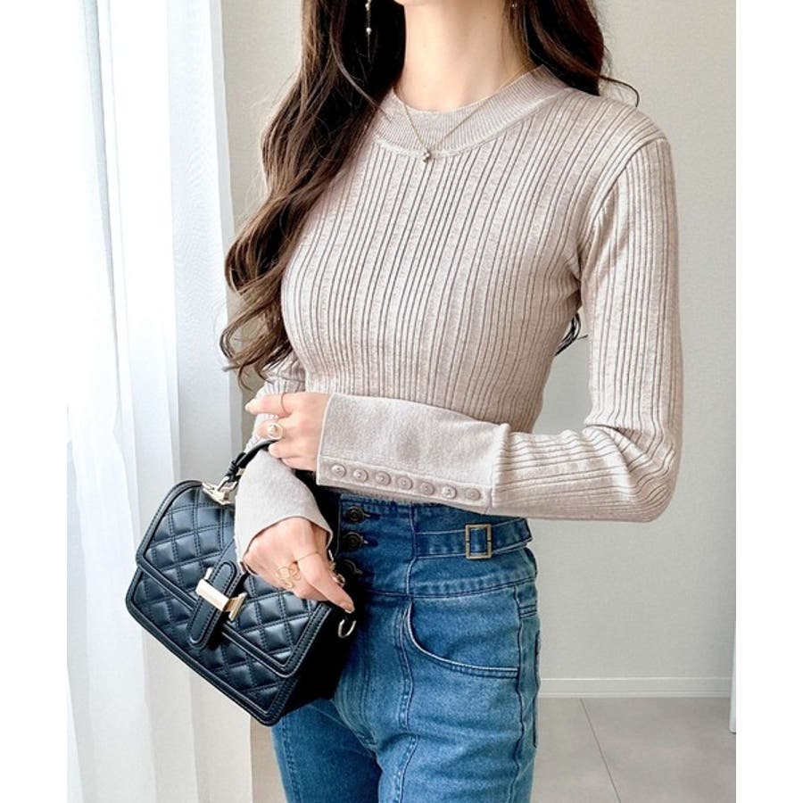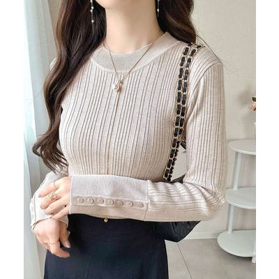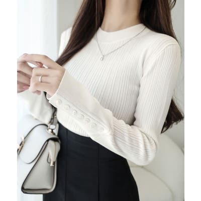 【mily bilet】大人可愛い素材とシルエット♪袖ボタン使いランダムリブニッ…