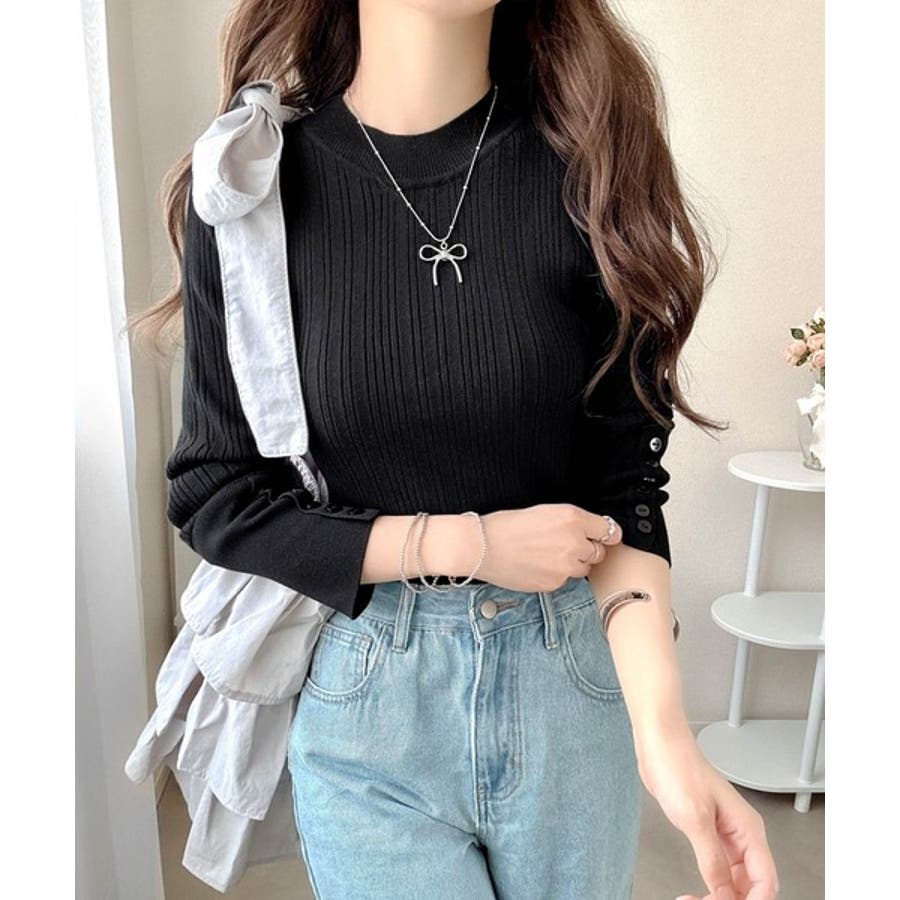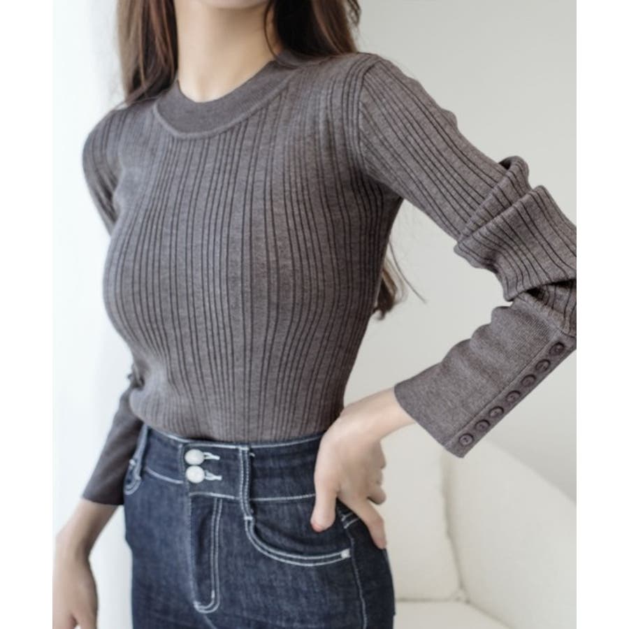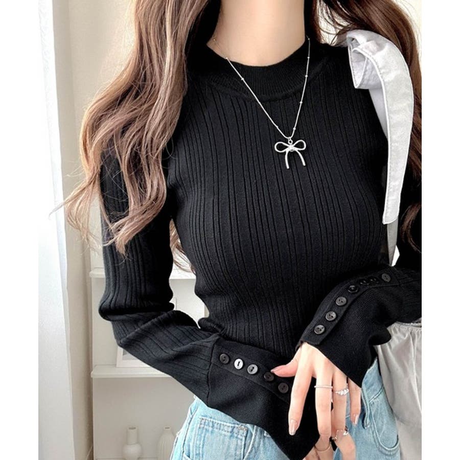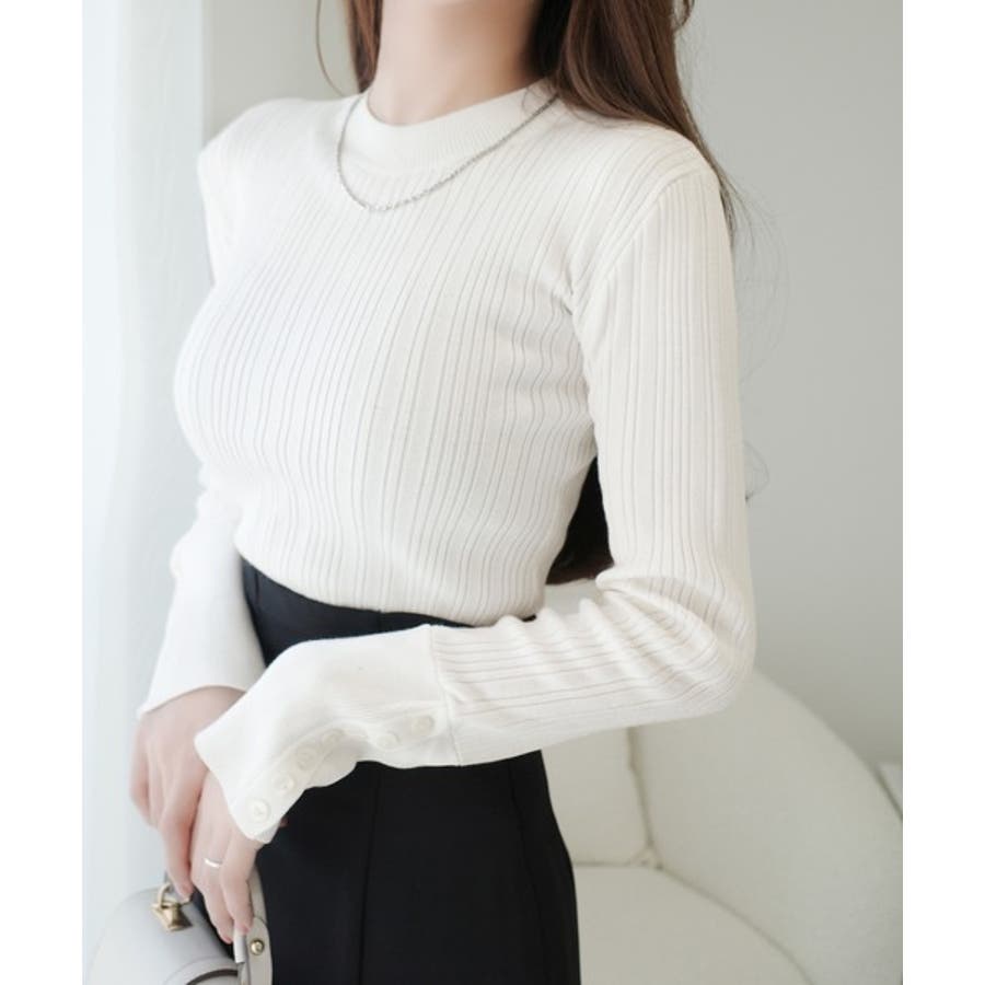 【mily bilet】大人可愛い素材とシルエット♪袖ボタン使いランダムリブニッ…
