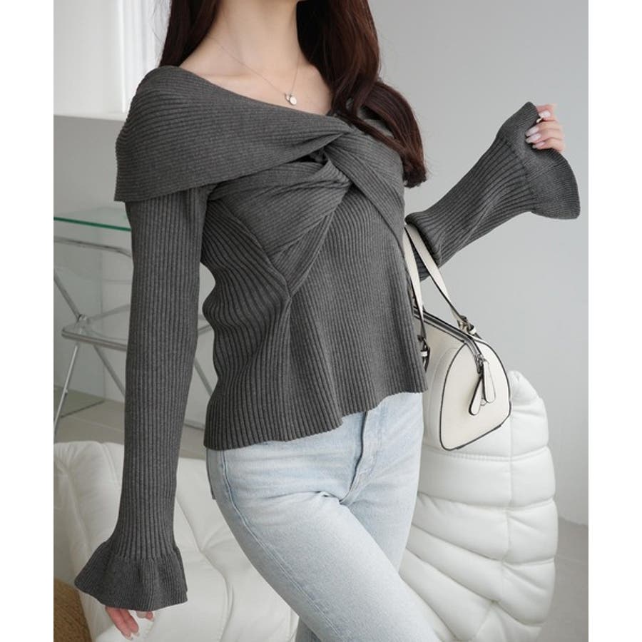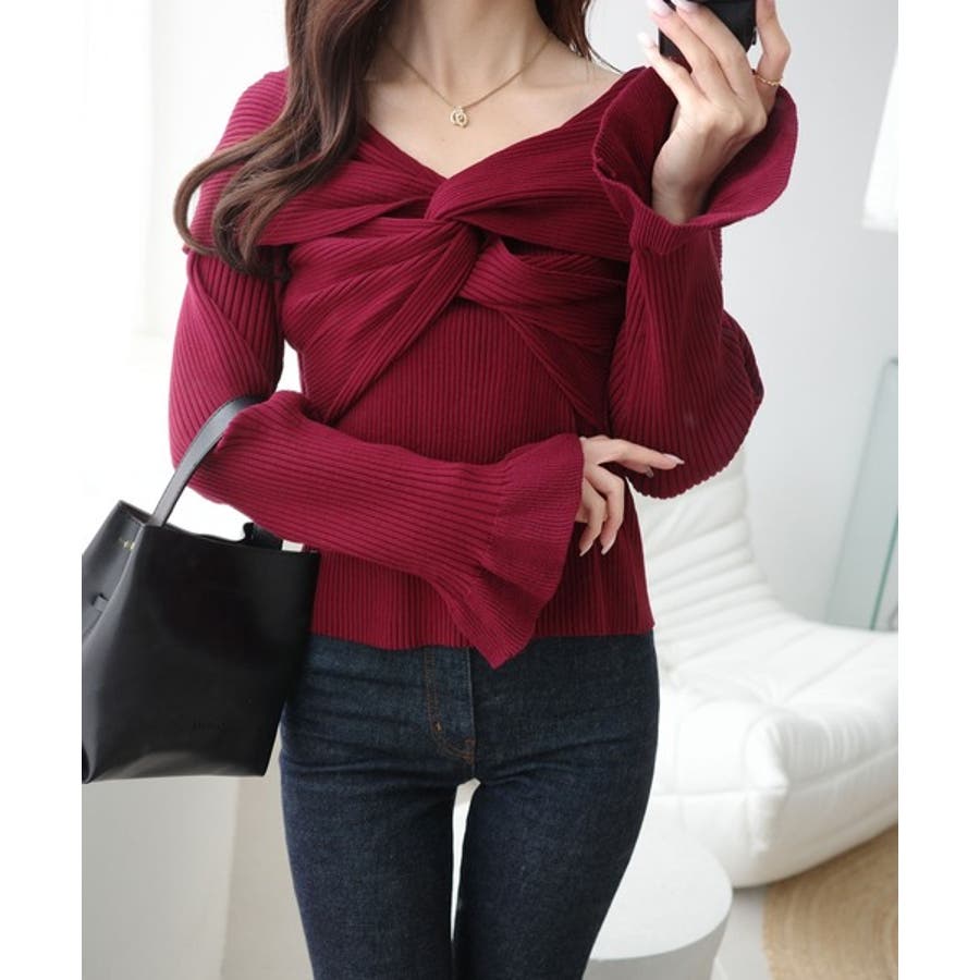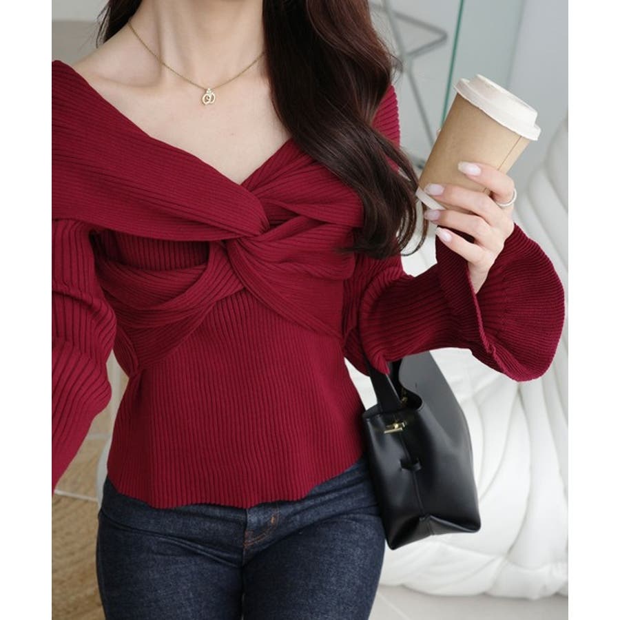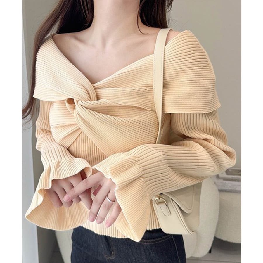 ツイストデザインがポイントの、華やかさと上品さを兼ね備えたリブニットプルオーバー。