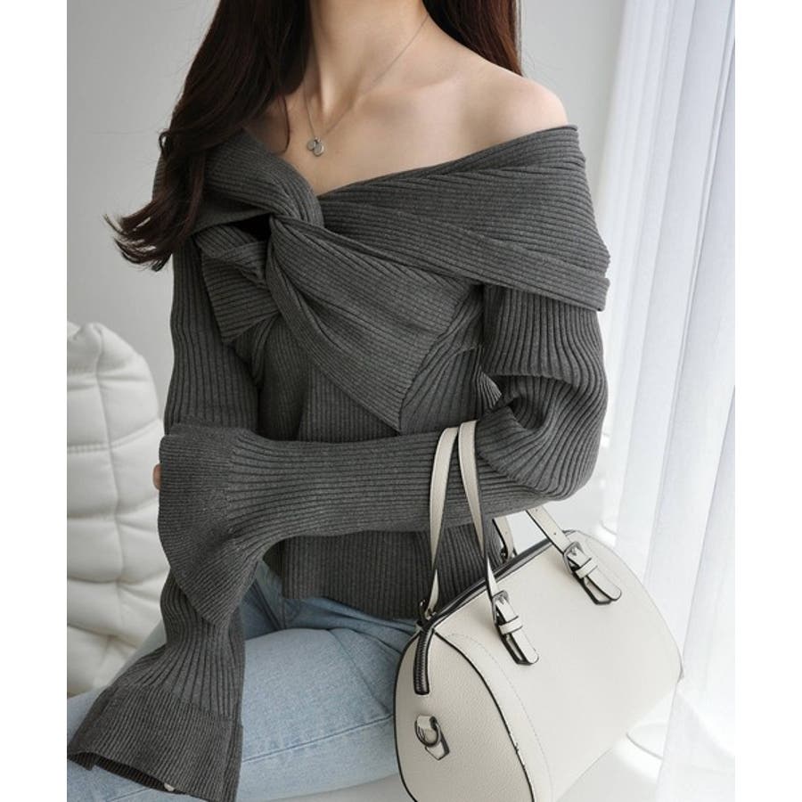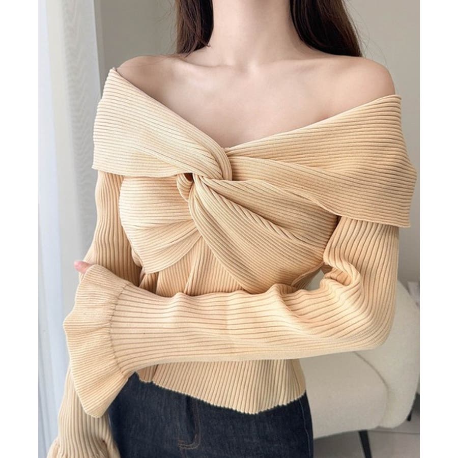 【mily bilet】デコルテ美人を叶える一着♪ツイストオフショル2WAYリブ…
