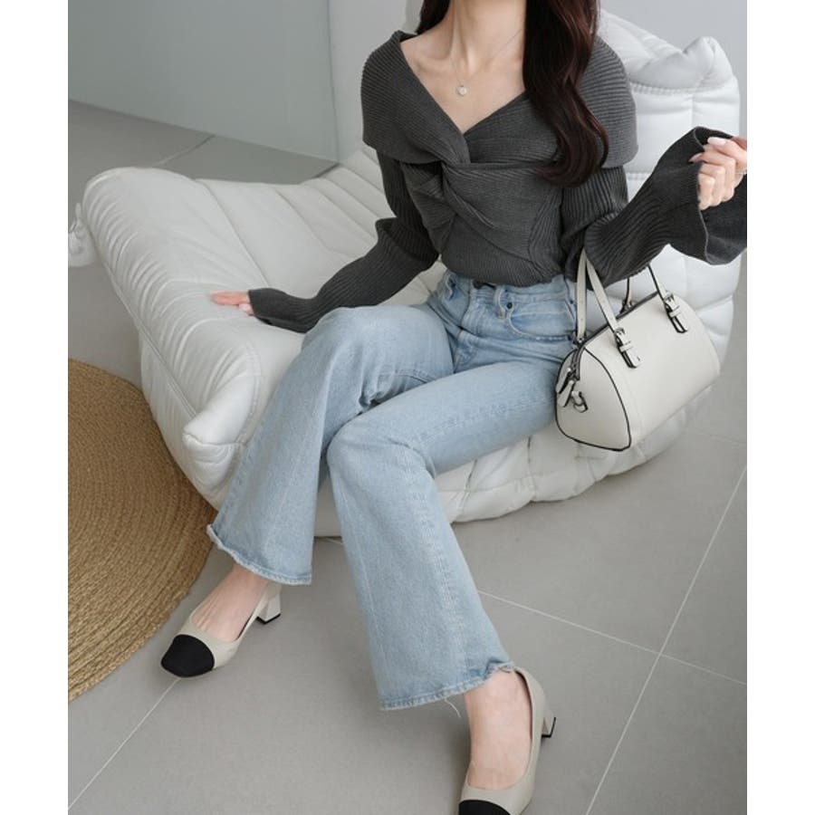 女性らしい華奢なシルエットと華やかさを兼ね備えたリブニット。