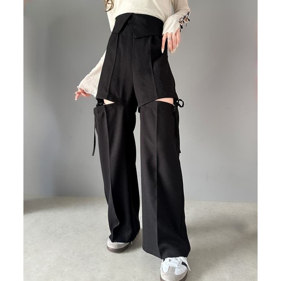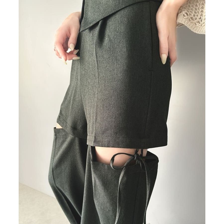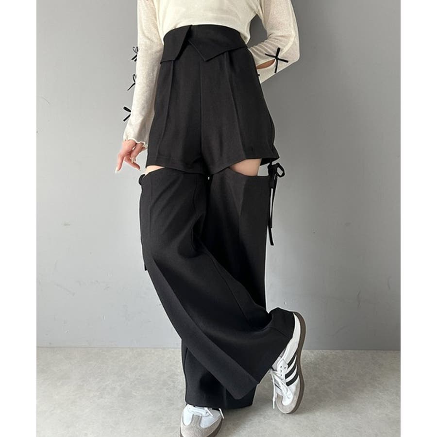 リボンを解いてスナップを外せばショートボトムスにも変身する2WAY仕様。