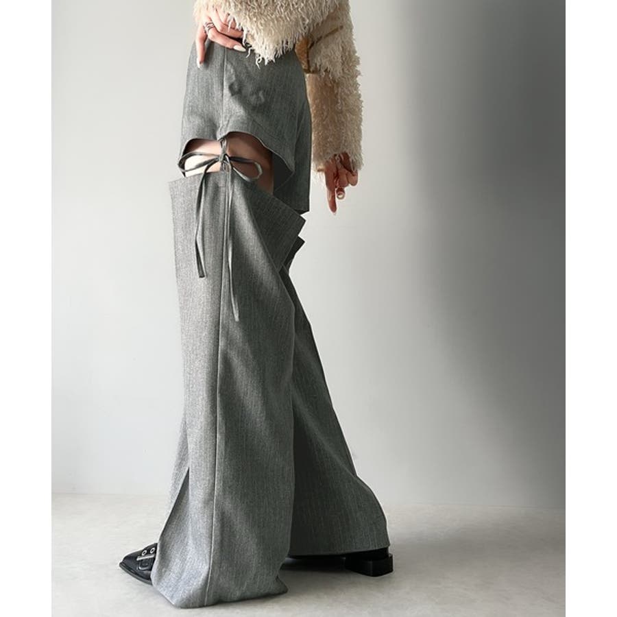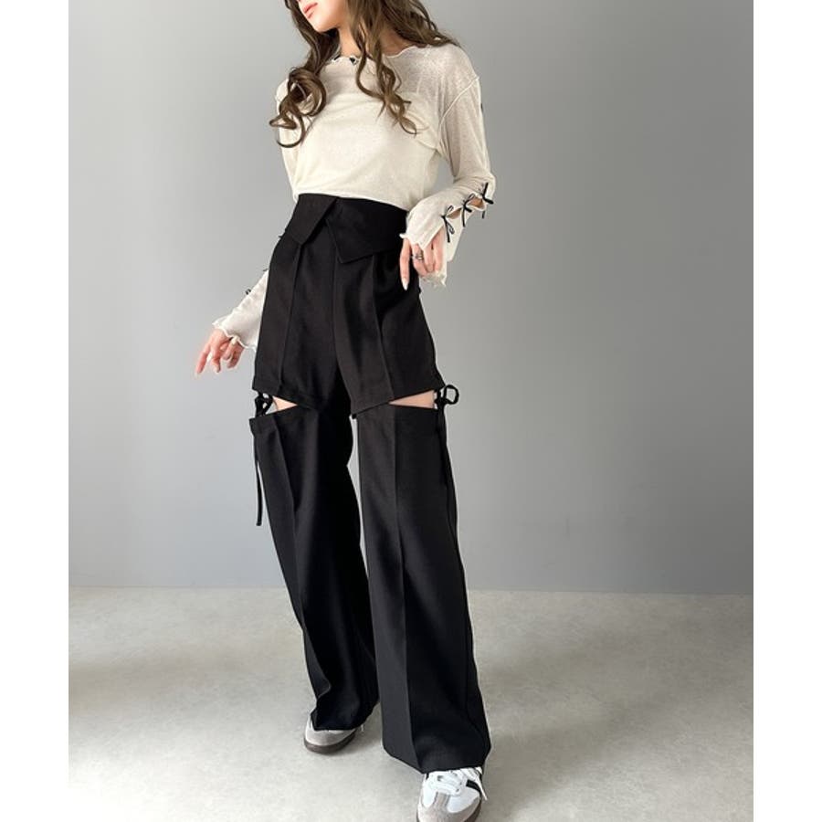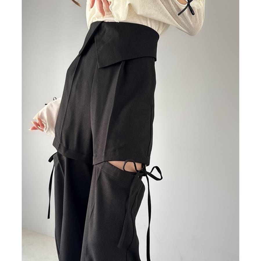 ハンサムライクなボトムスにサイドリボンで甘さをプラスしたデザイン。