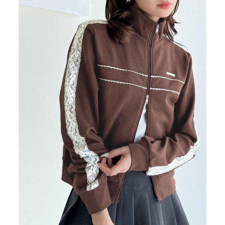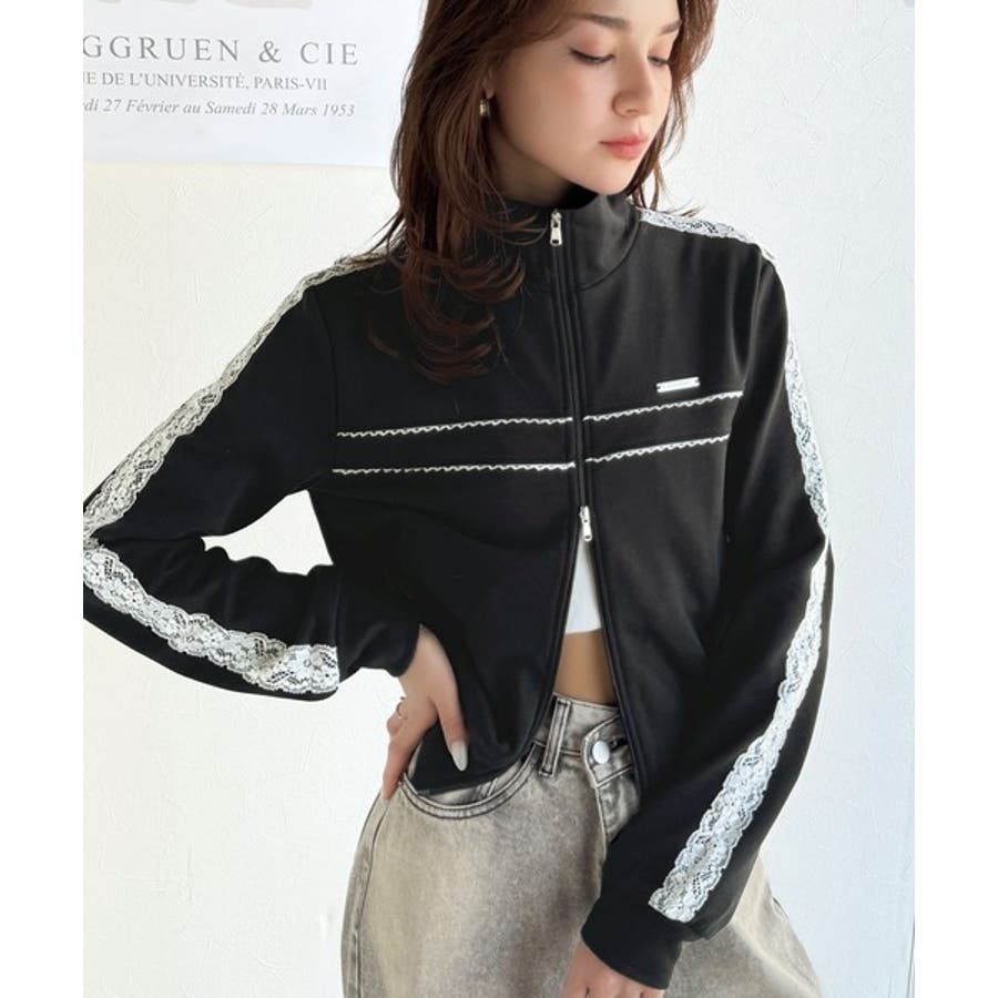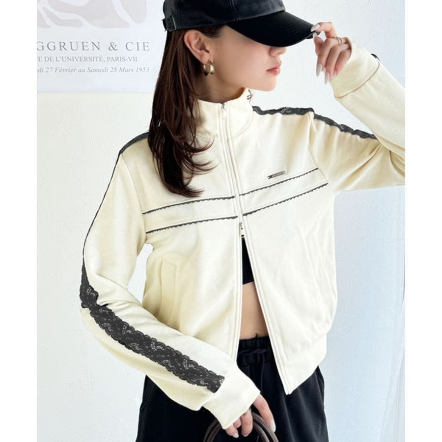 トレンドのトラックジャケットがレースラインによりスポーツフェミニンに!