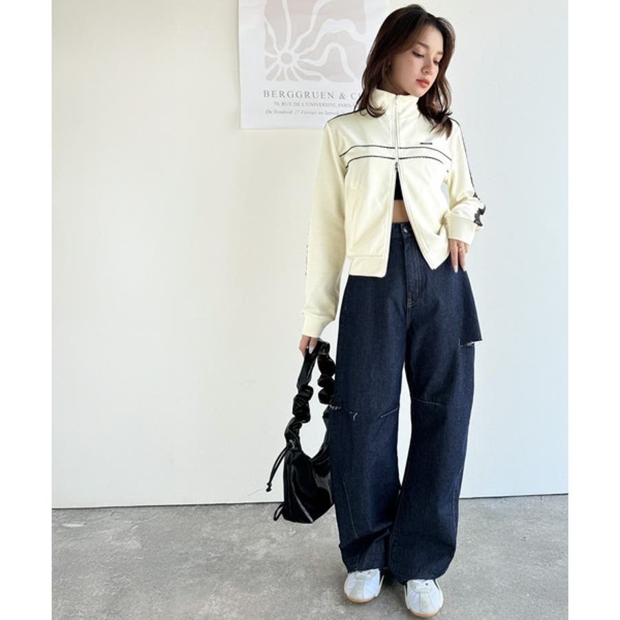 主役はトラックジャケットで、ダブルジップを活かして自分好みに肌見せを楽しめます。