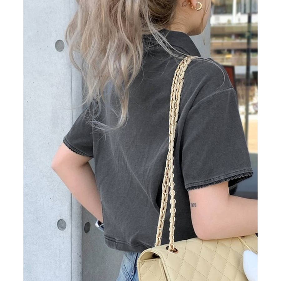 衿と袖口のレースが甘すぎないアクセントになり、さまざまなスタイリングで活躍するアイテムです。