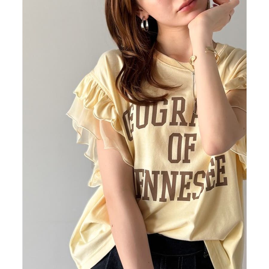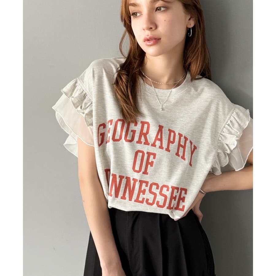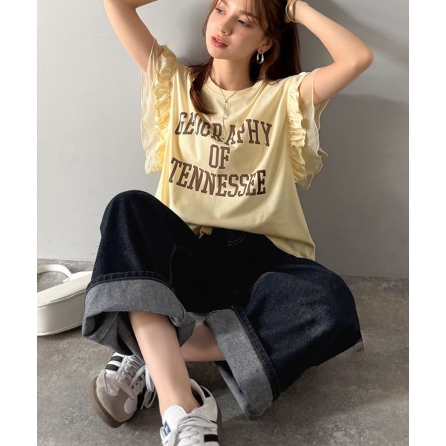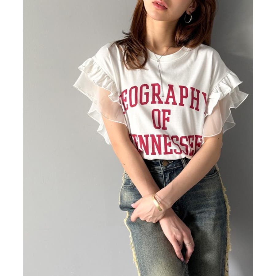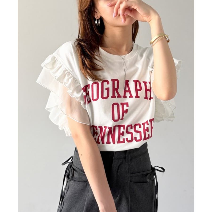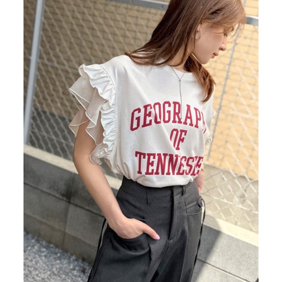 フリル袖で二の腕カバー も叶う、こなれカレッジライクロゴTシャツ
