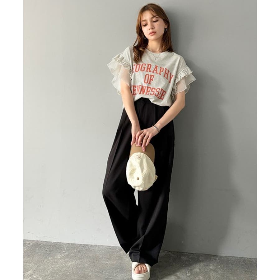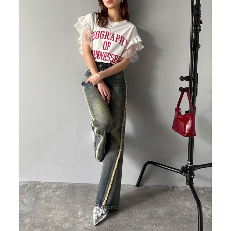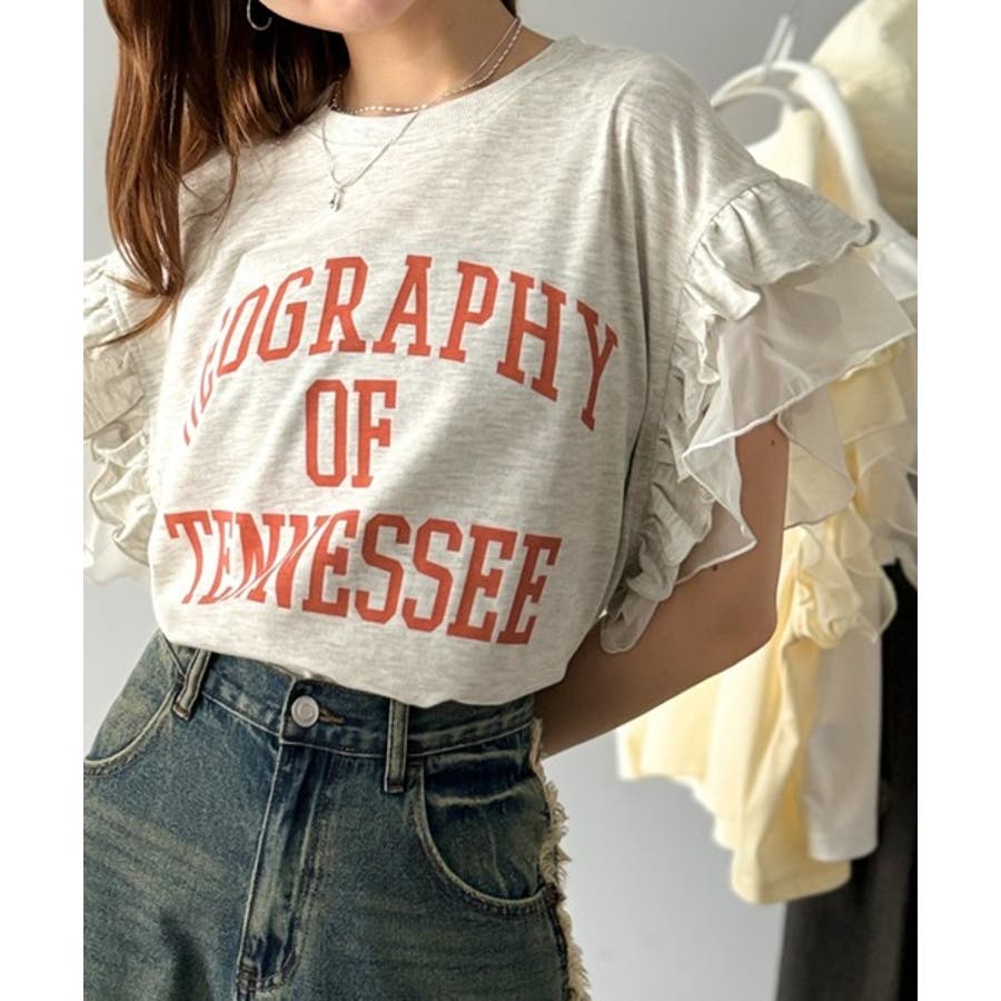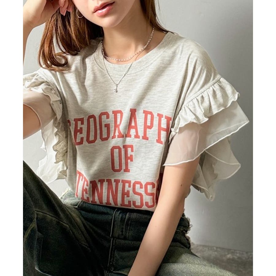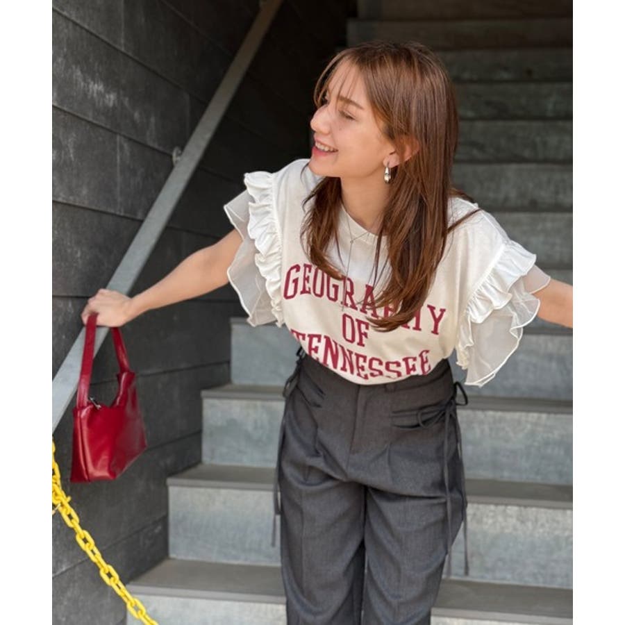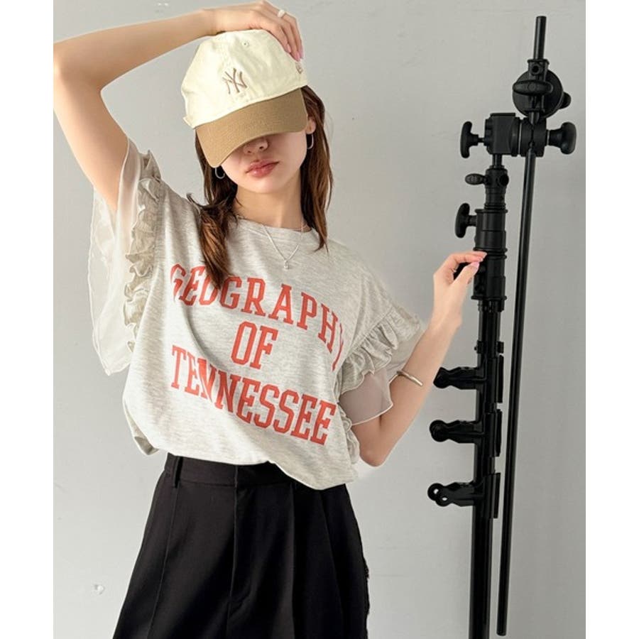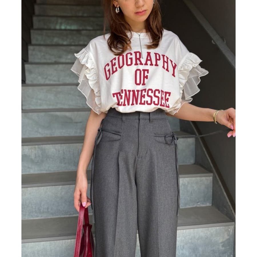フリル袖で二の腕カバー も叶う、こなれカレッジライクロゴTシャツ