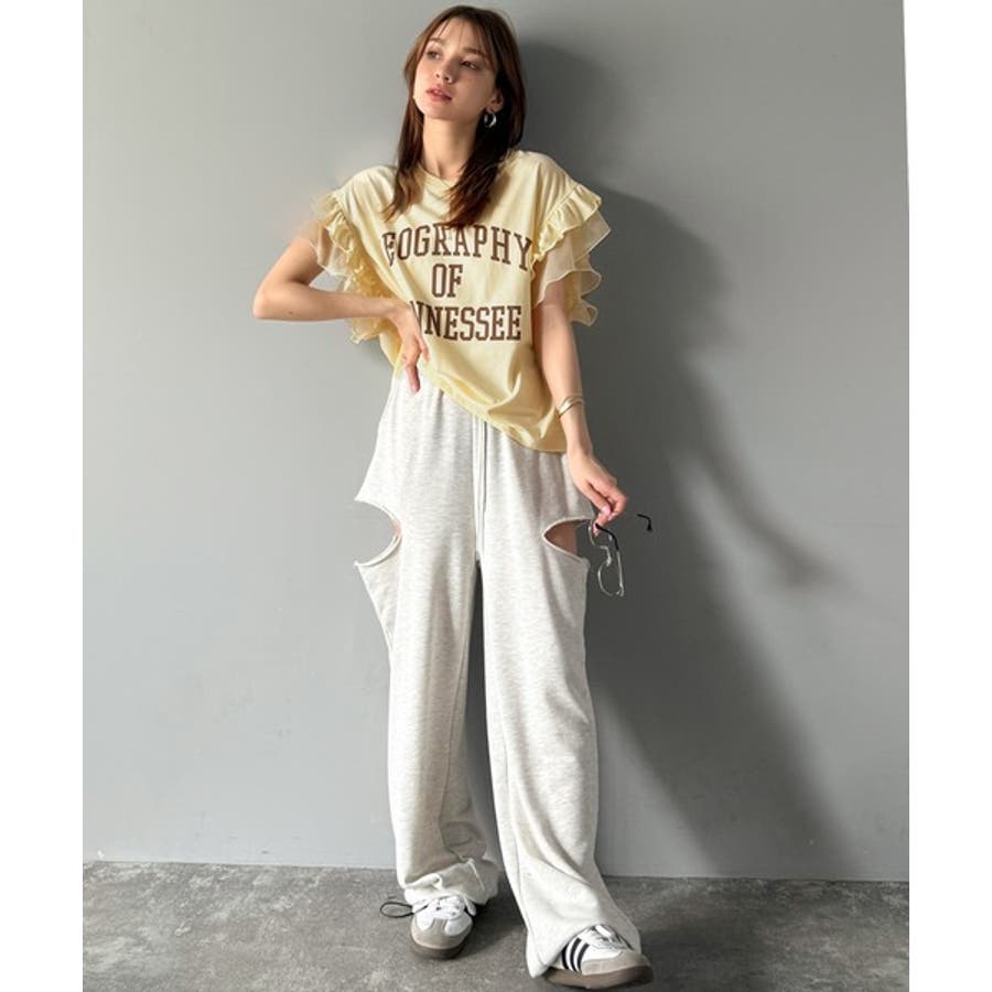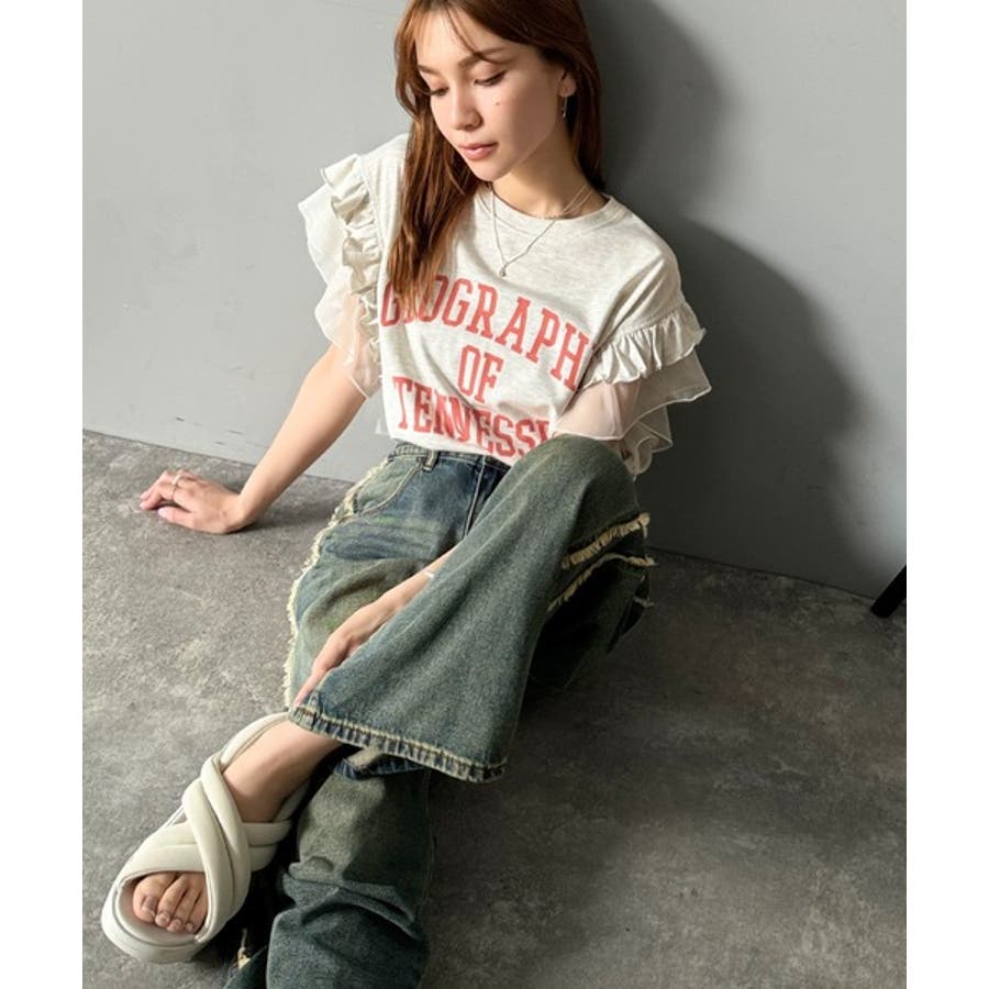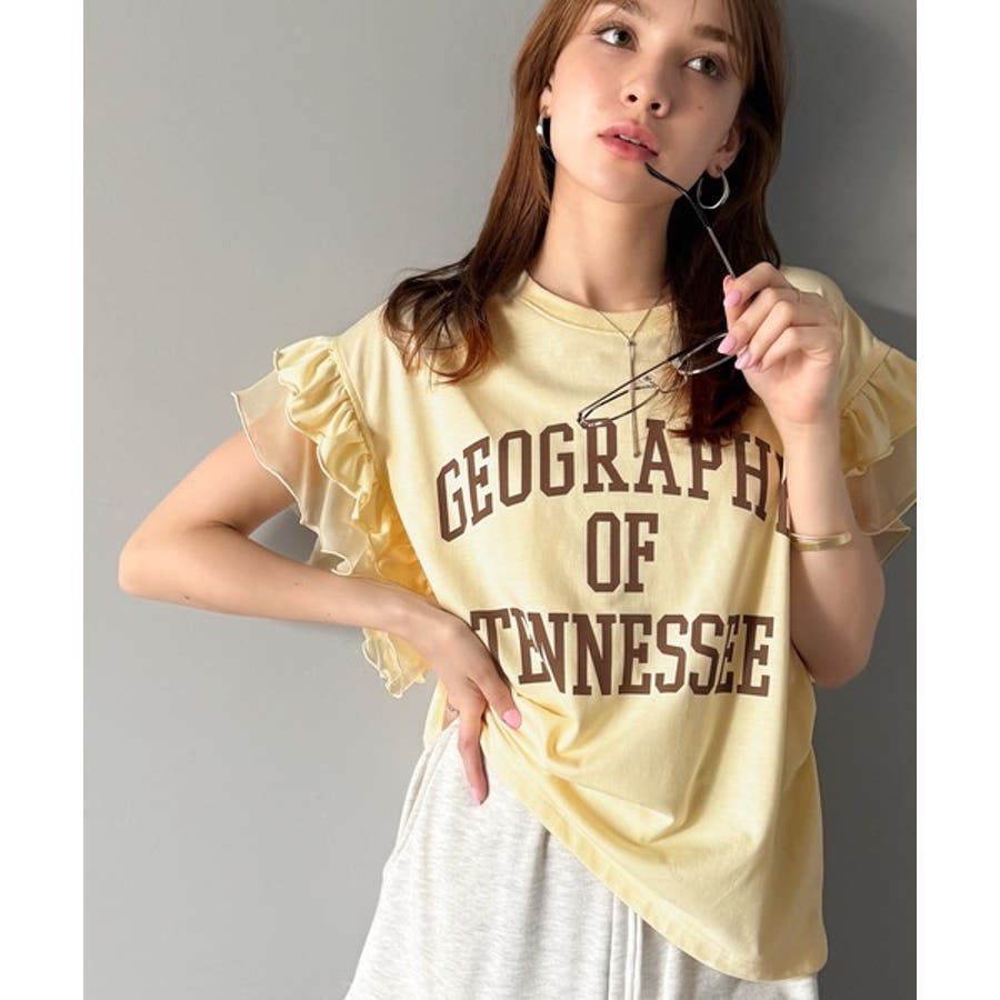 【mily bilet】可愛さふわり2倍増し! ダブルフリル袖カレッジライクロゴ…