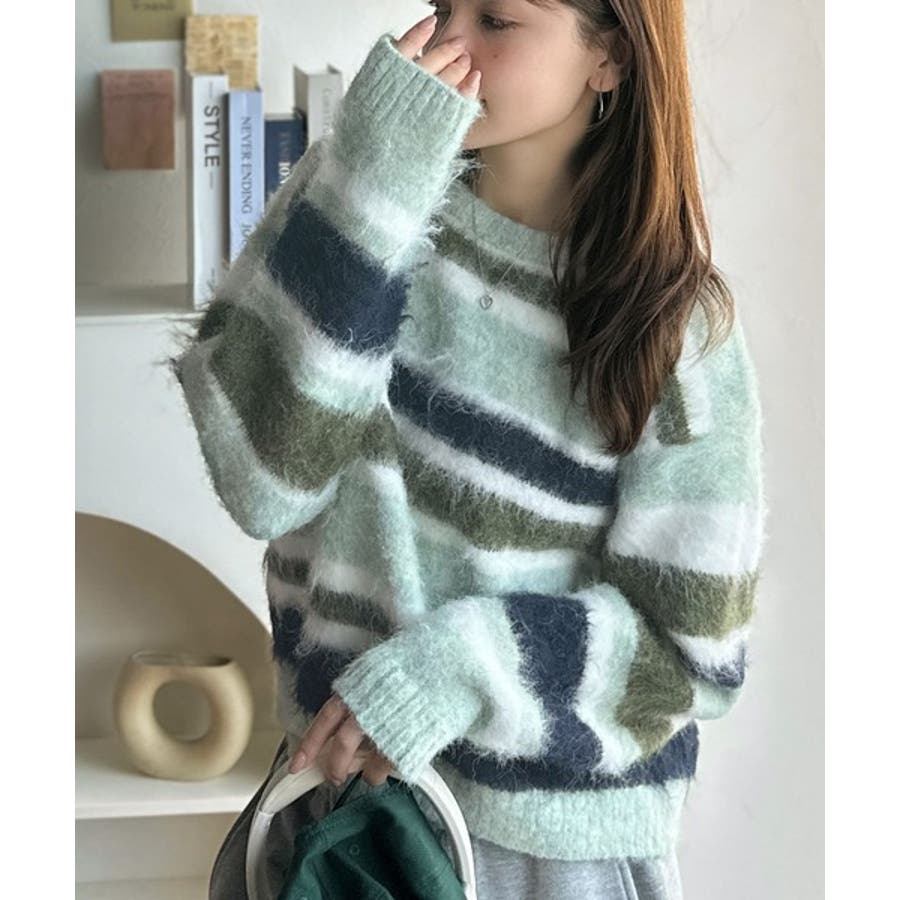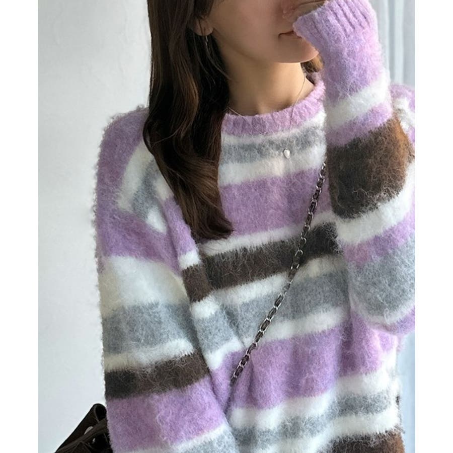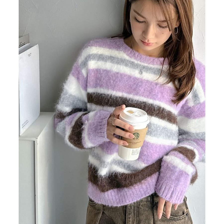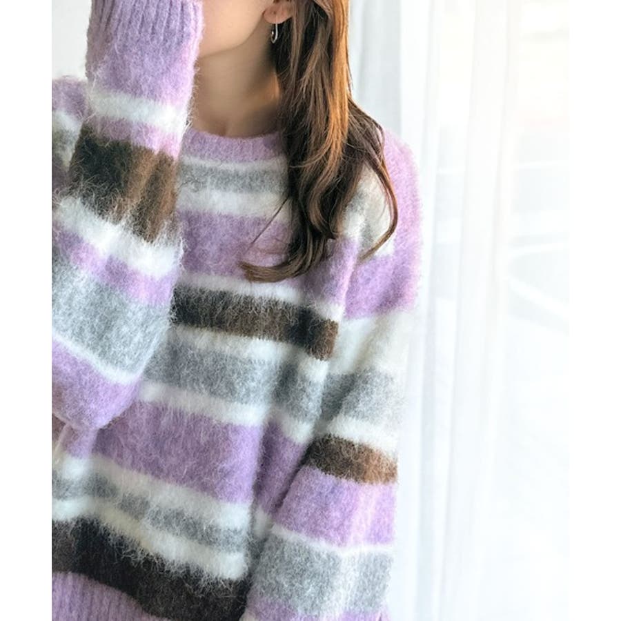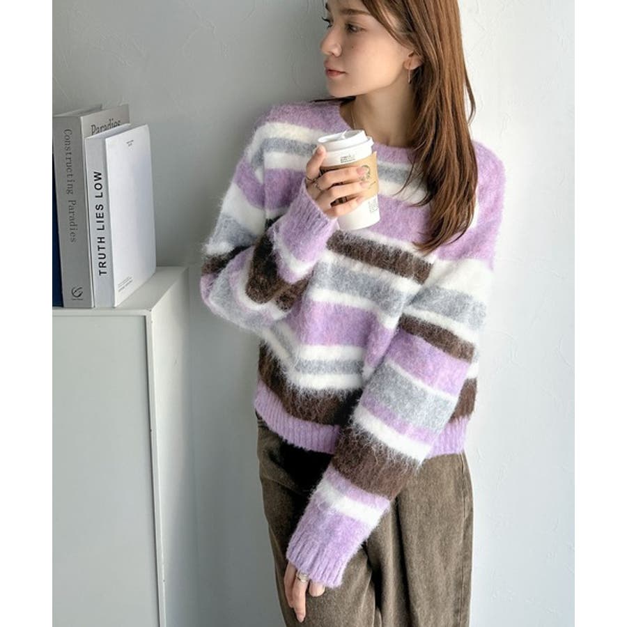 カラフルミックスで視線釘付け。マルチボーダーシャギーニットプルオーバー