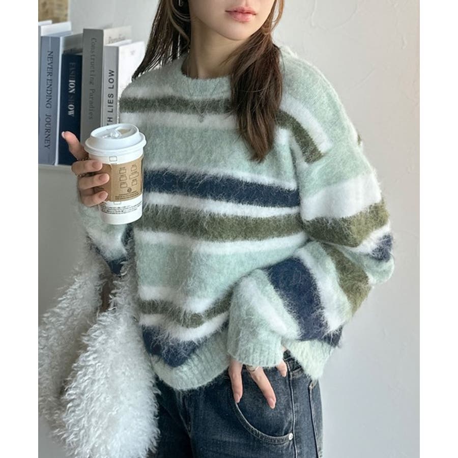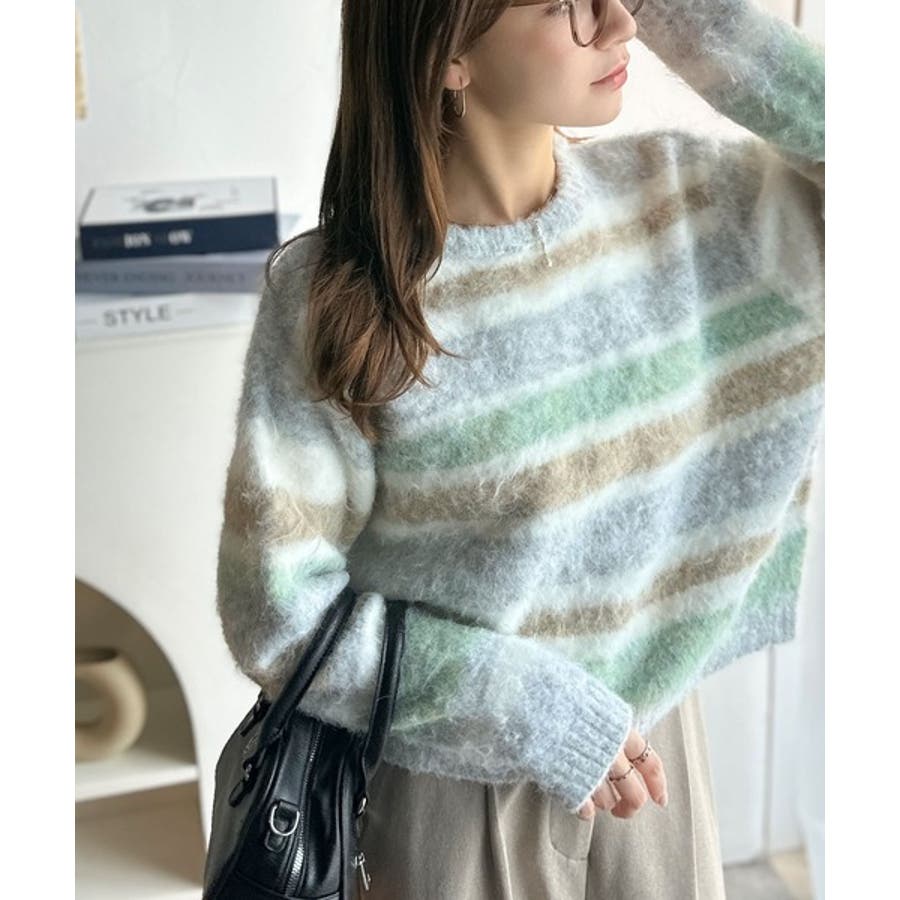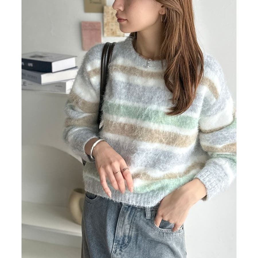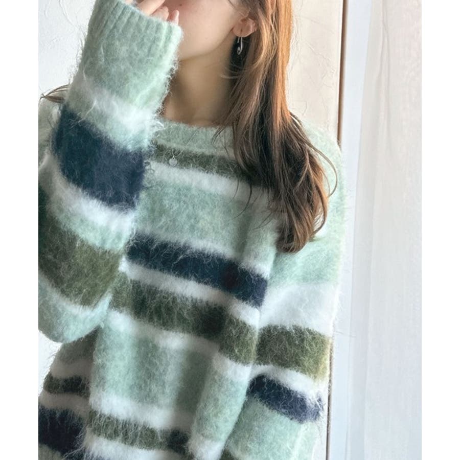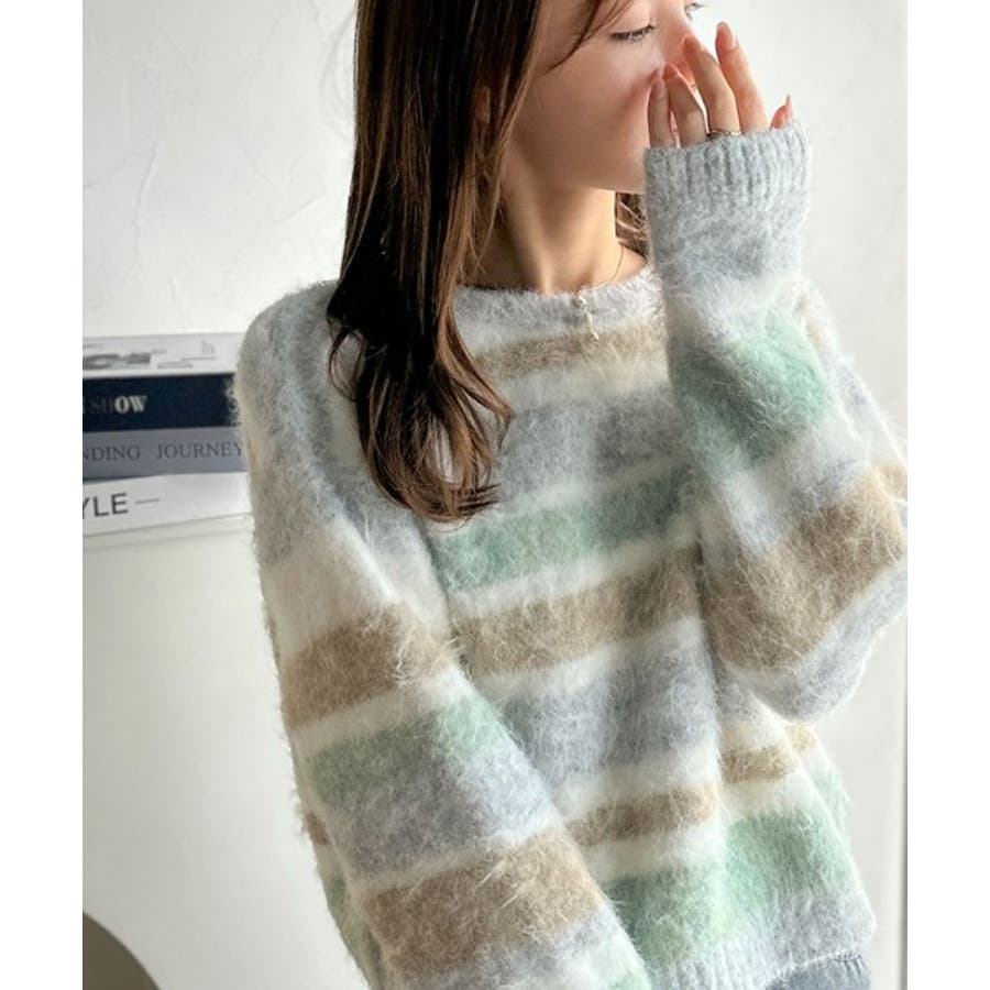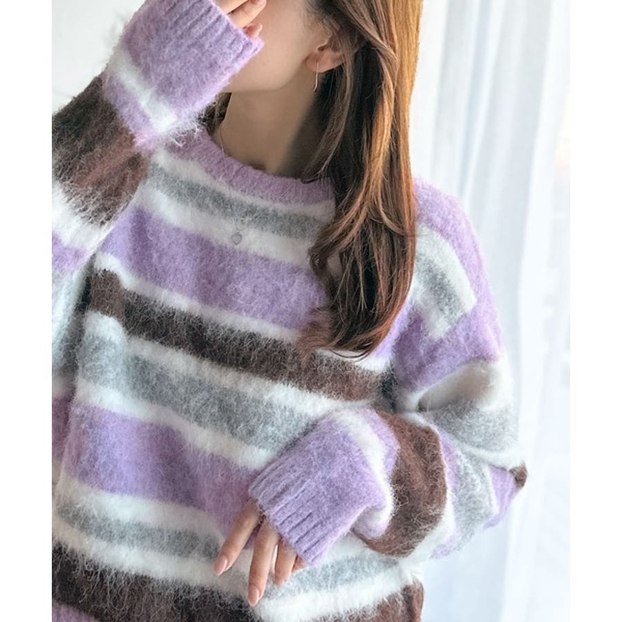 カラフルミックスで視線釘付け。マルチボーダーシャギーニットプルオーバー