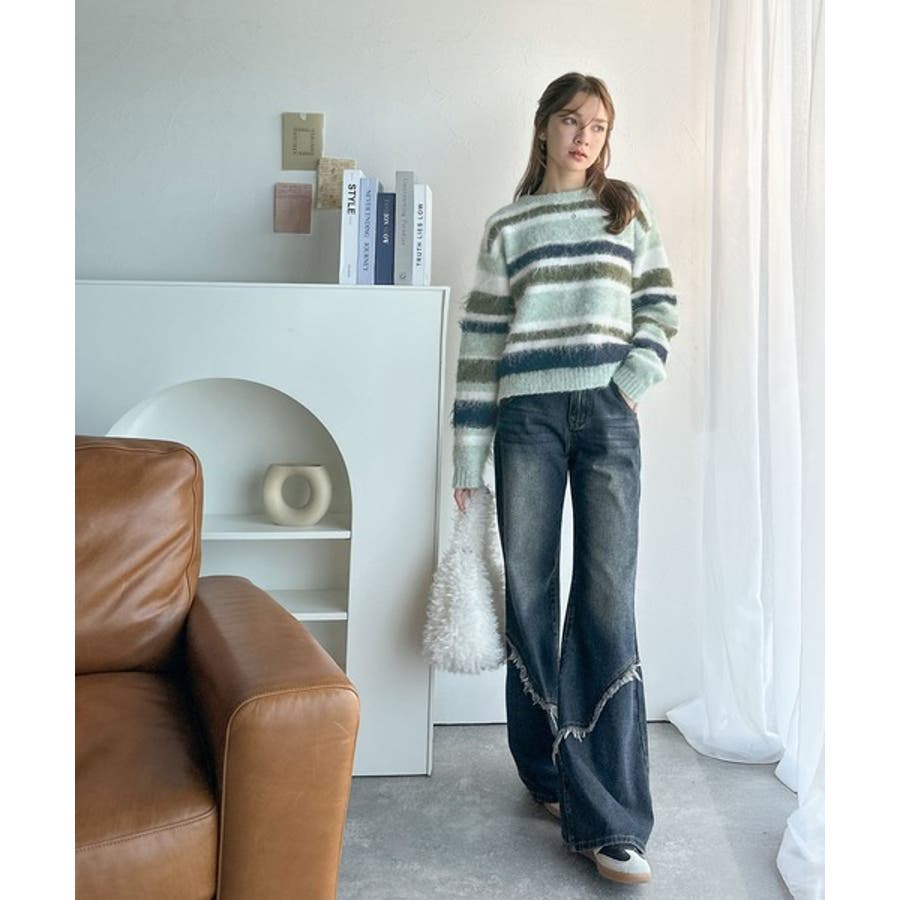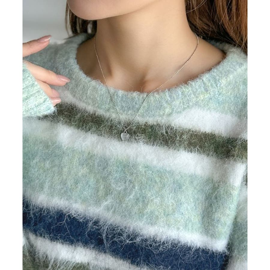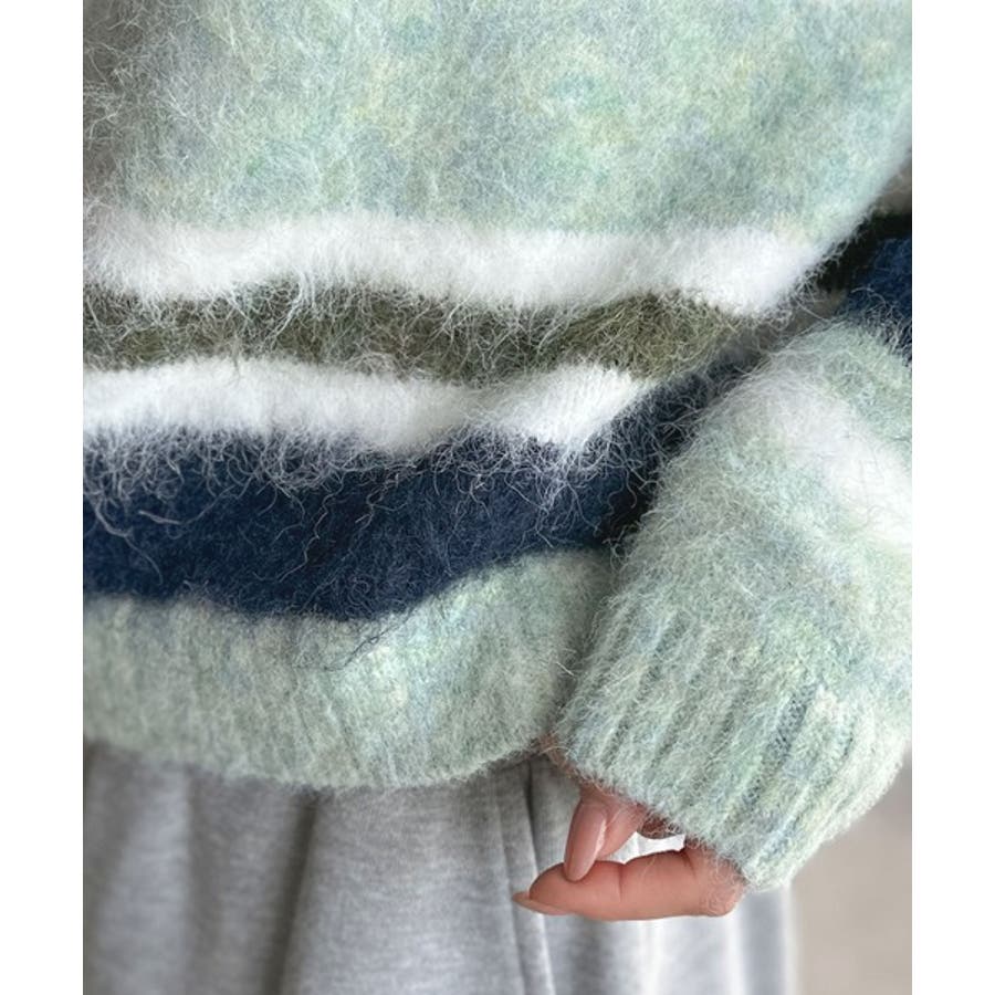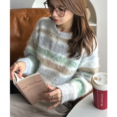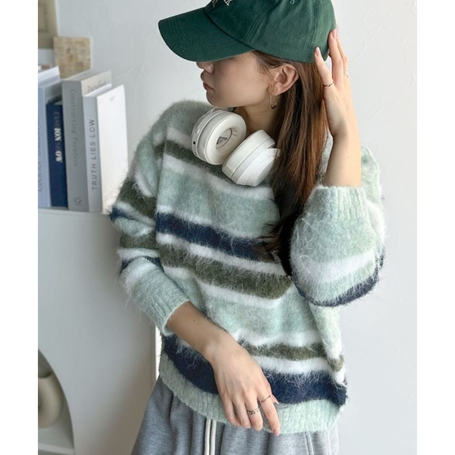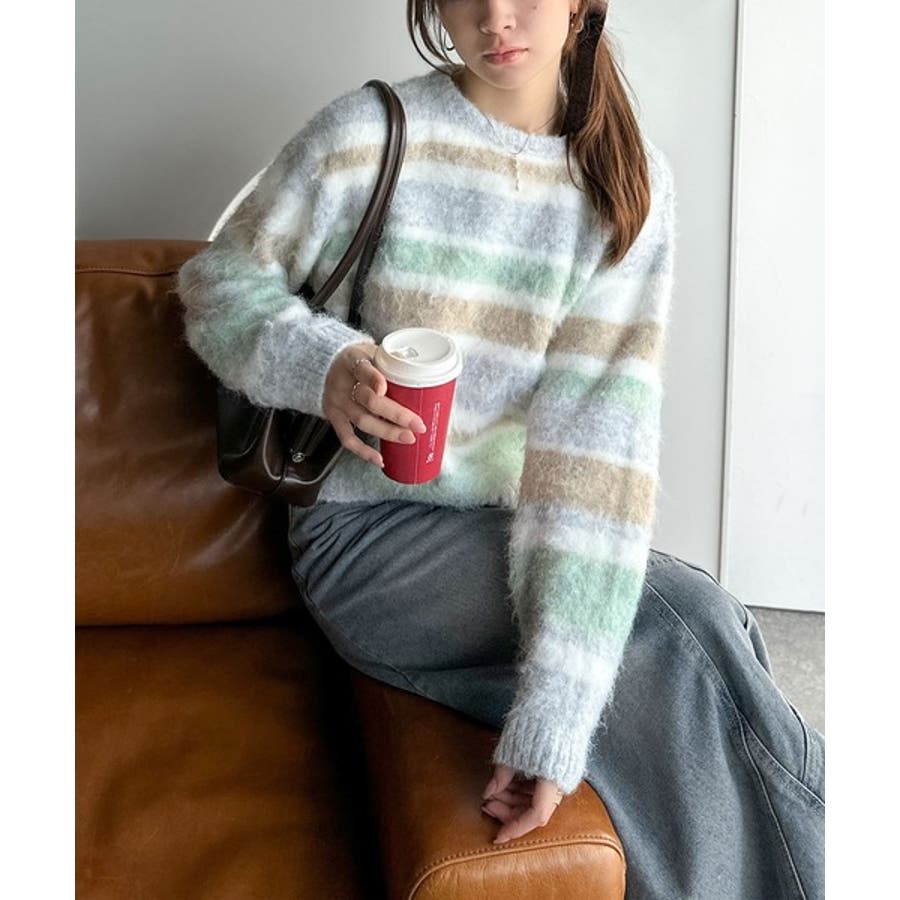 カラフルミックスで視線釘付け。マルチボーダーシャギーニットプルオーバー