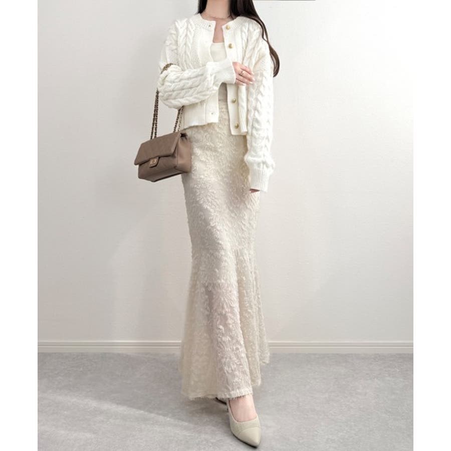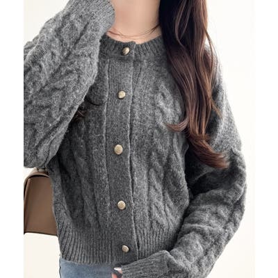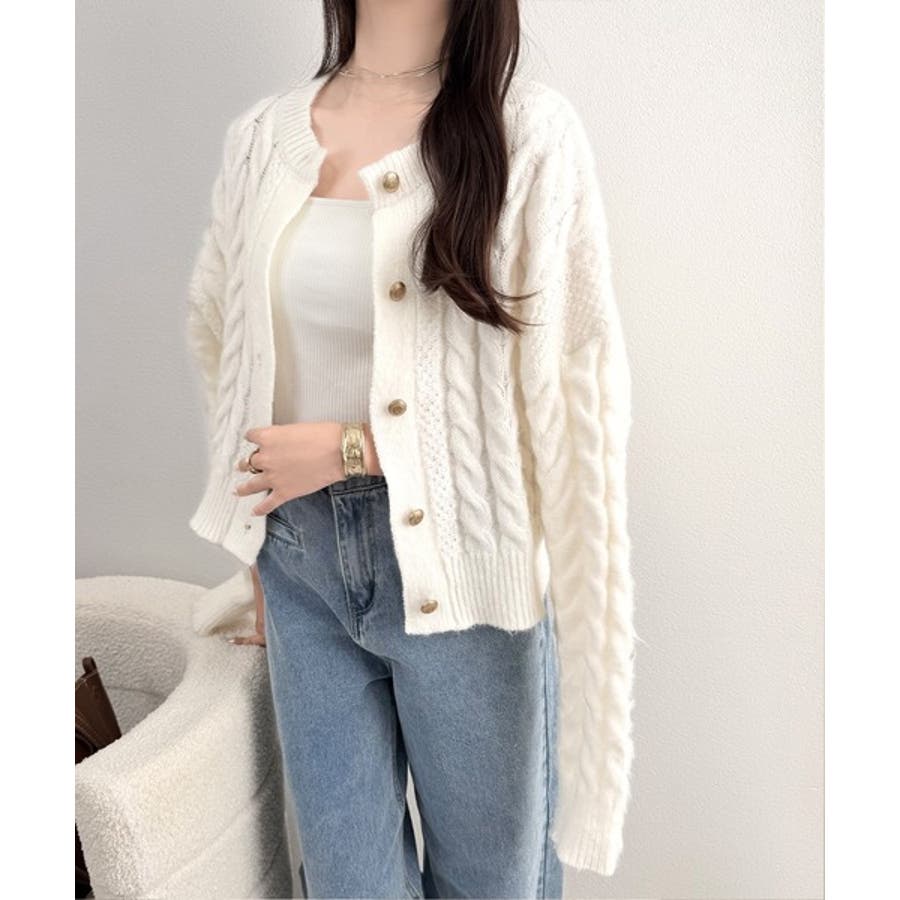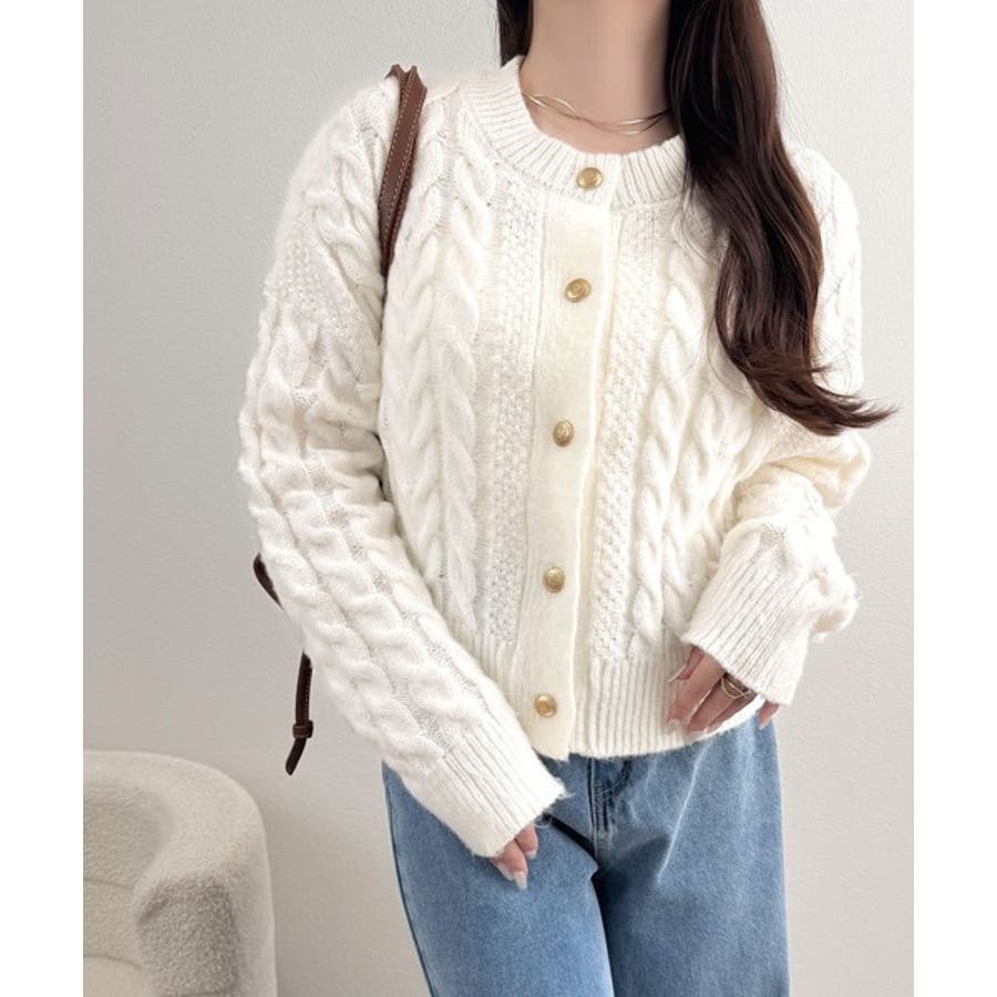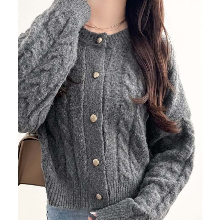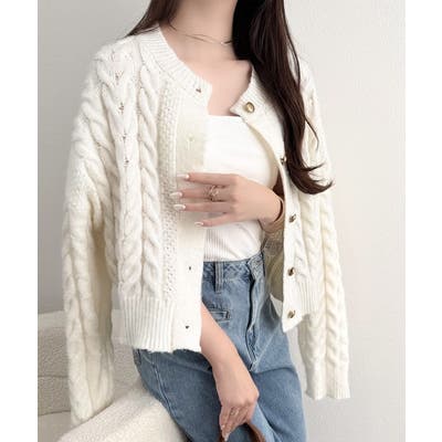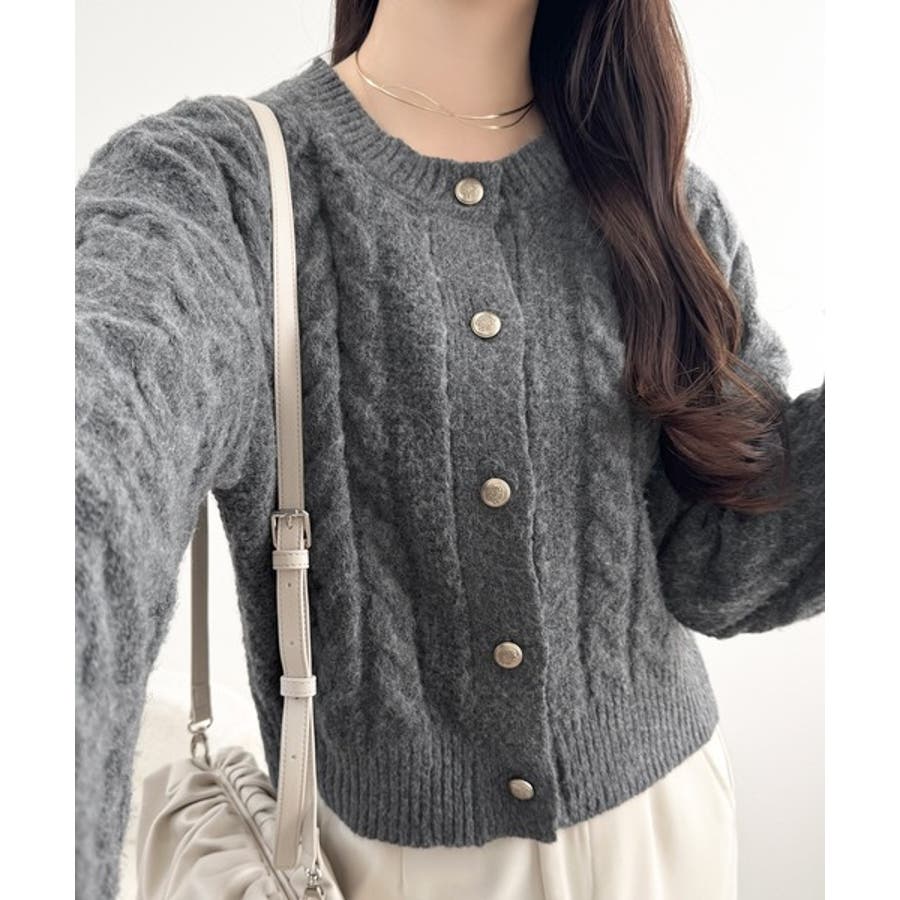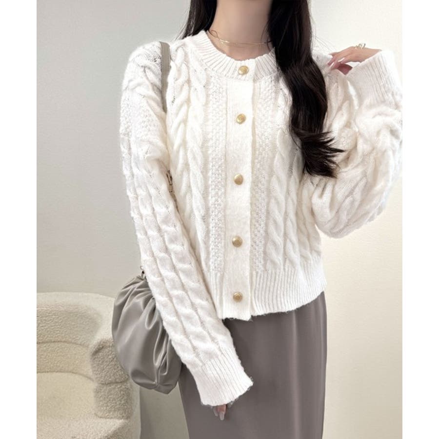 シンプルながらも女性らしいデザインのケーブルニットカーディガン♪