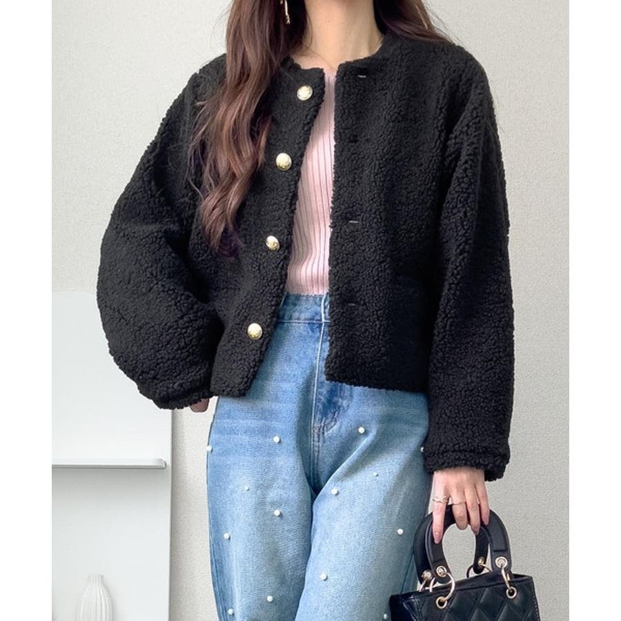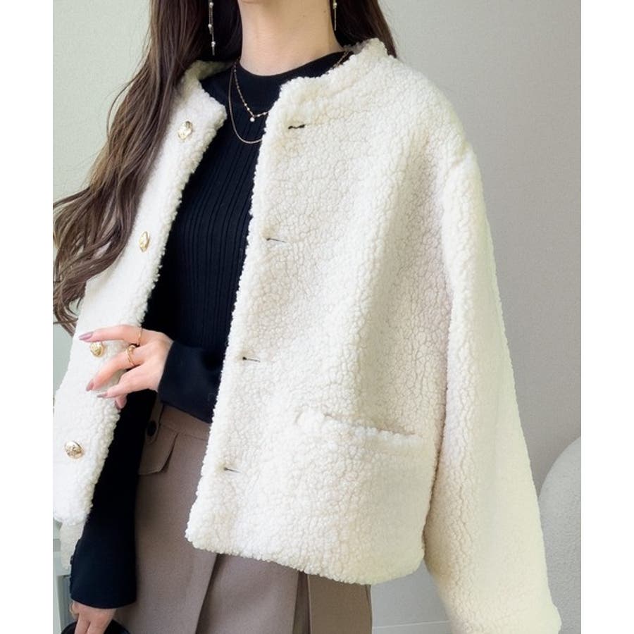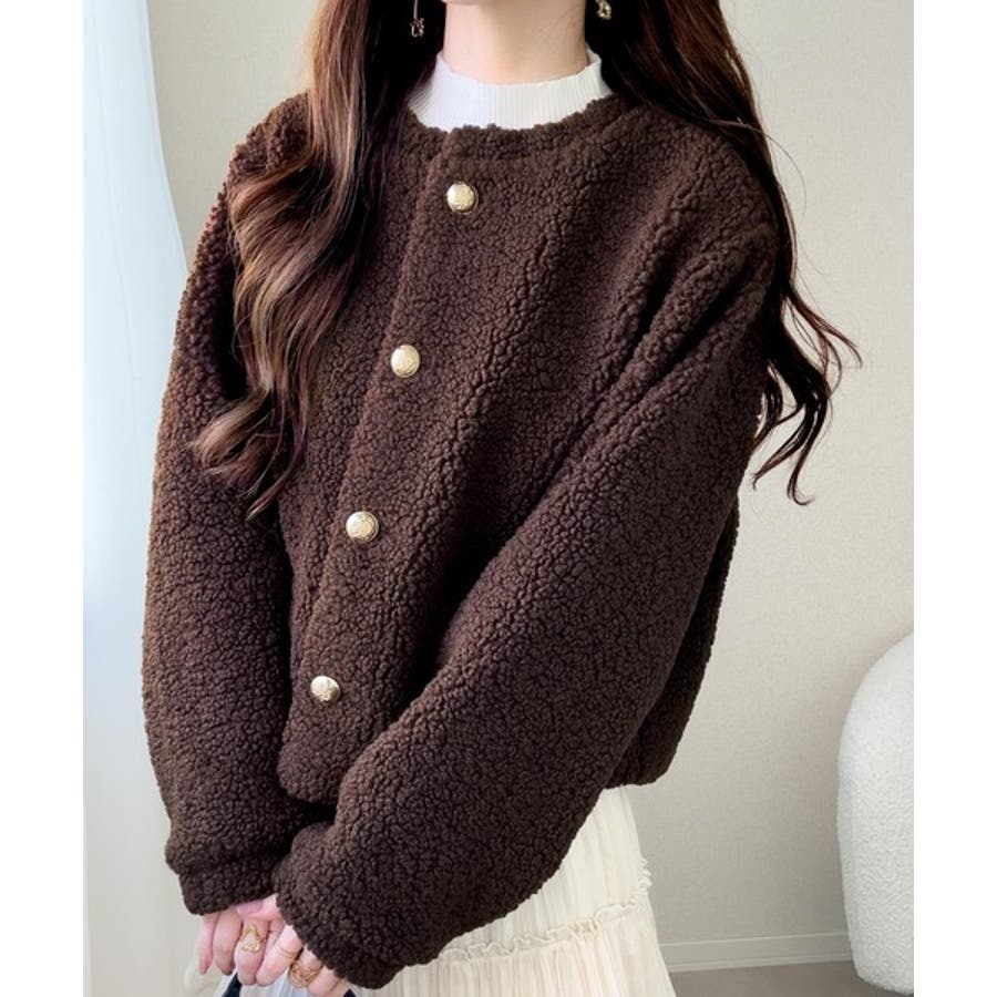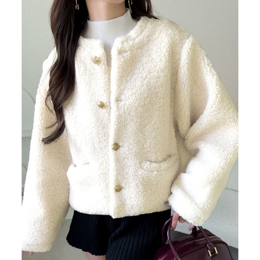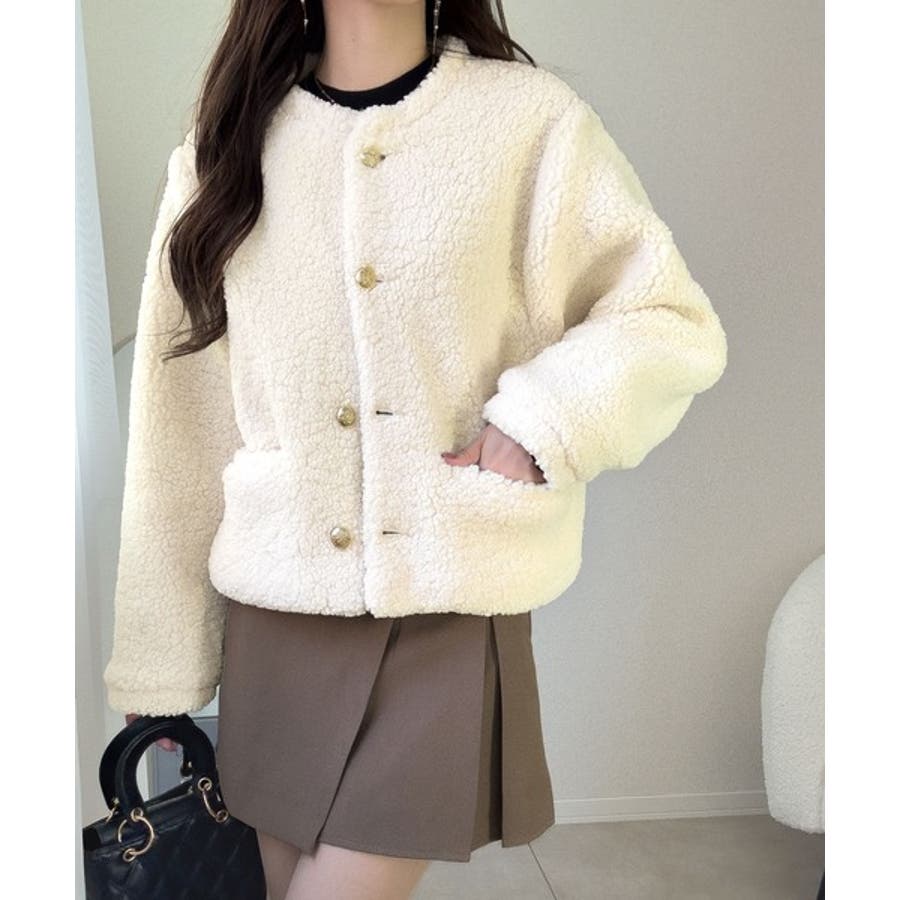 コーディネートに取り入れやすいのも魅力です。ふんわりとしたボア生地が季節感を高め、羽織るだけで華やかなスタイルに仕上がります。