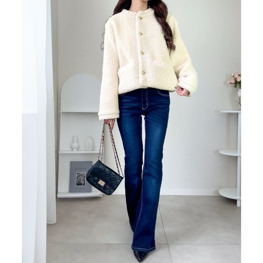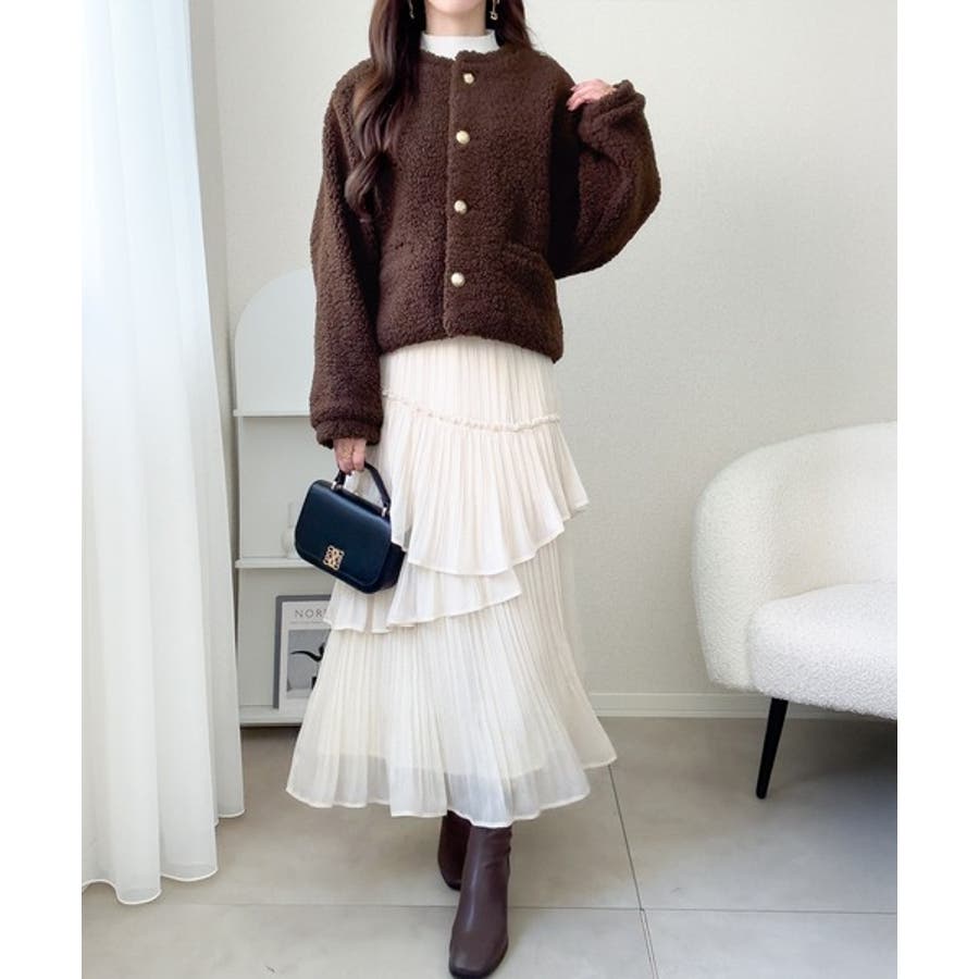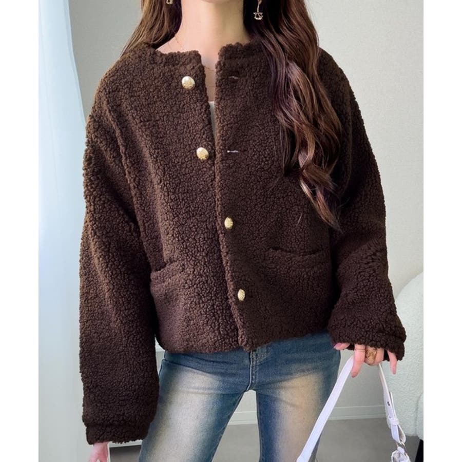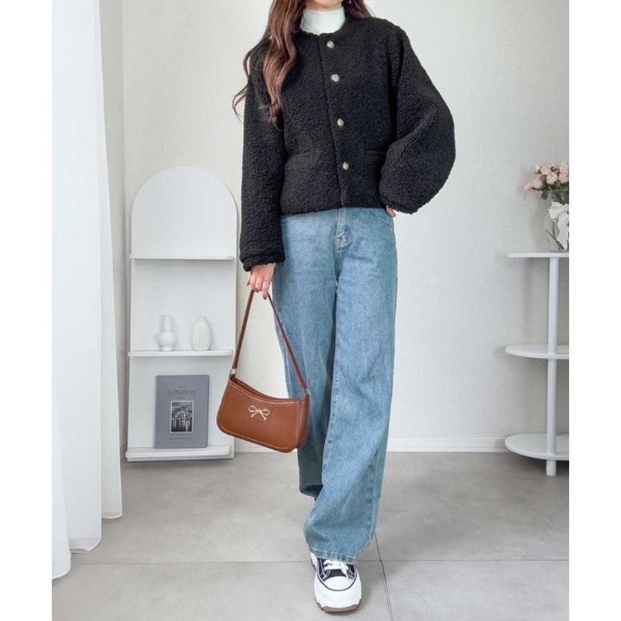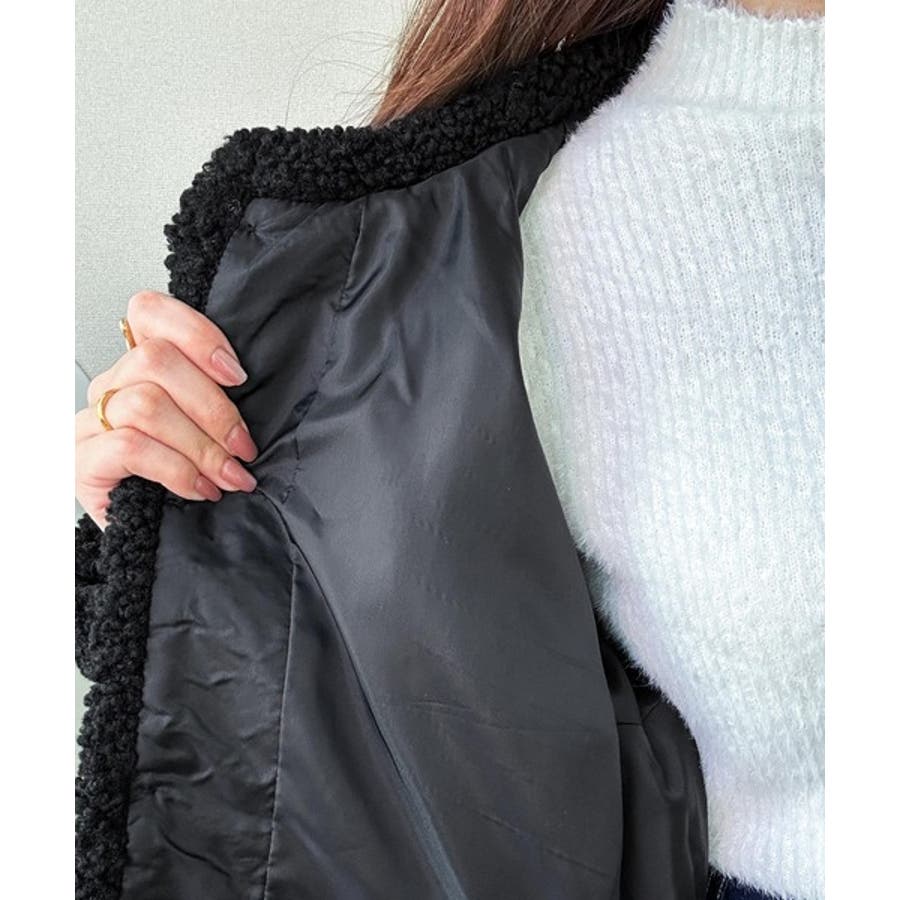 コーディネートに取り入れやすいのも魅力です。ふんわりとしたボア生地が季節感を高め、羽織るだけで華やかなスタイルに仕上がります。