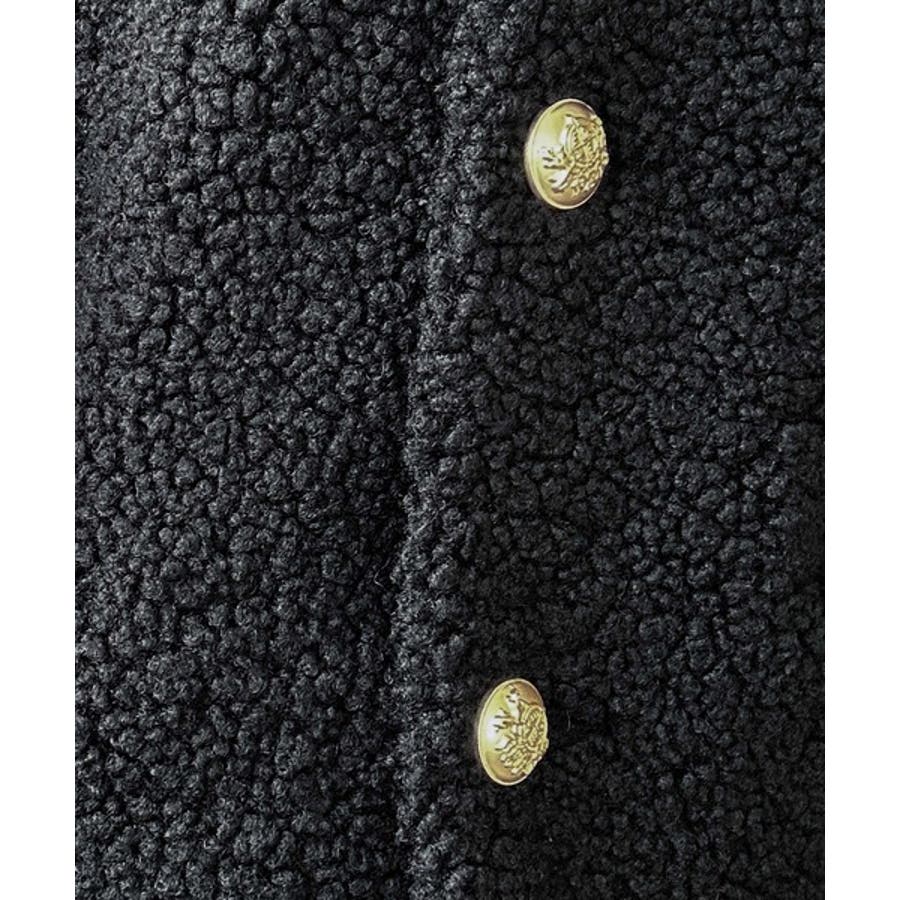 エンブレムボタン使いのボアジャケット。