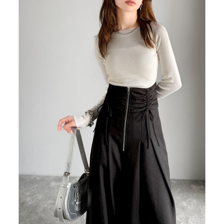 また、リブニットやシャギーニットを合わせても女性らしい上品スタイルに♪