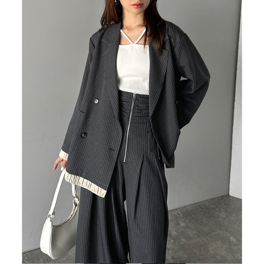 ジャケットを合わせて、クールなキレイめスタイルにするのもおすすめ◎
