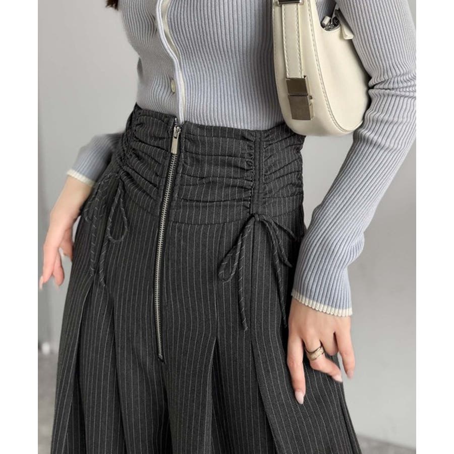 ウエスト部分はシャーリングとフロントジップ仕様でしっかりフィット。