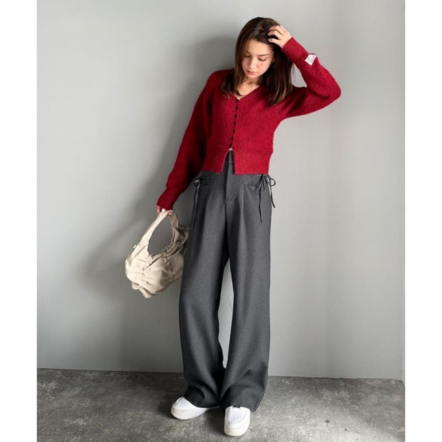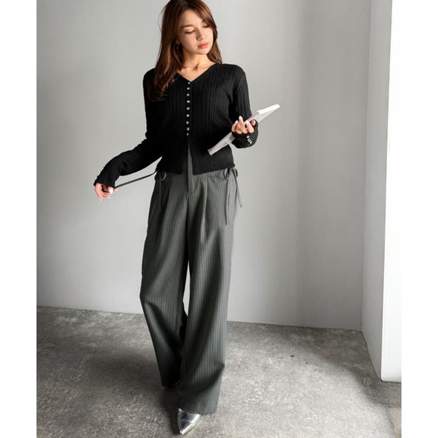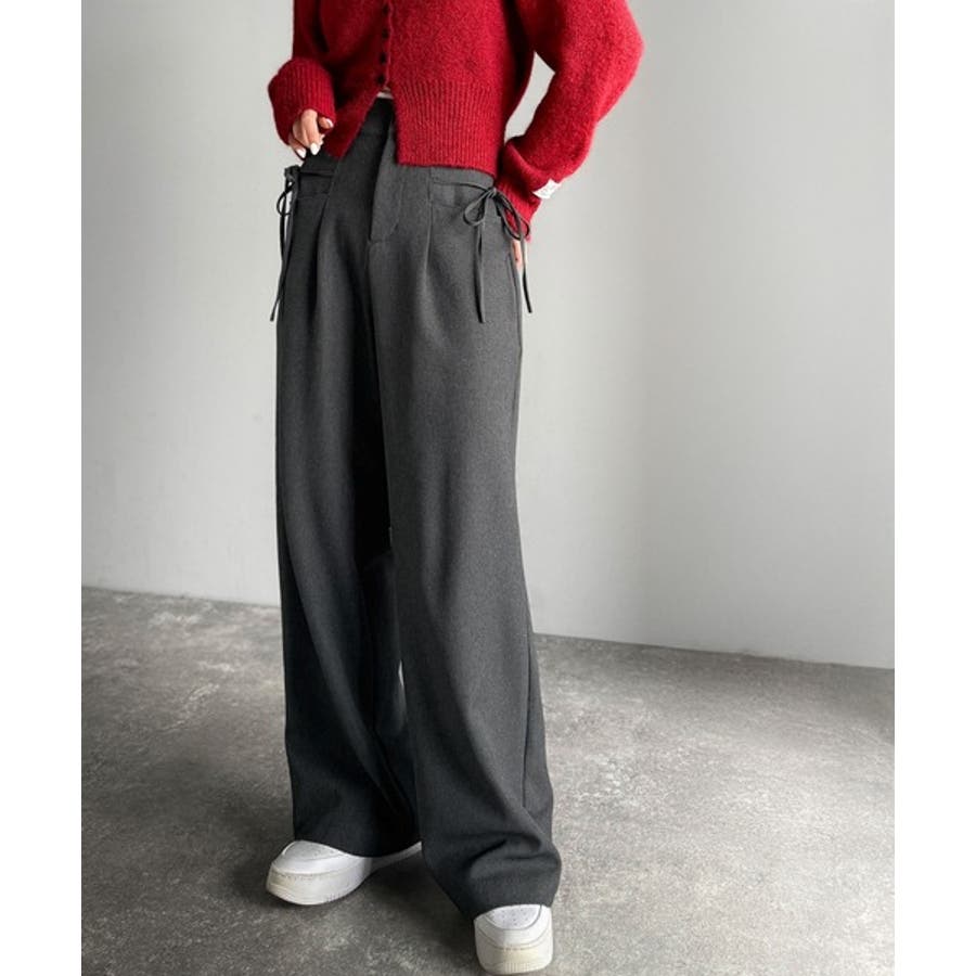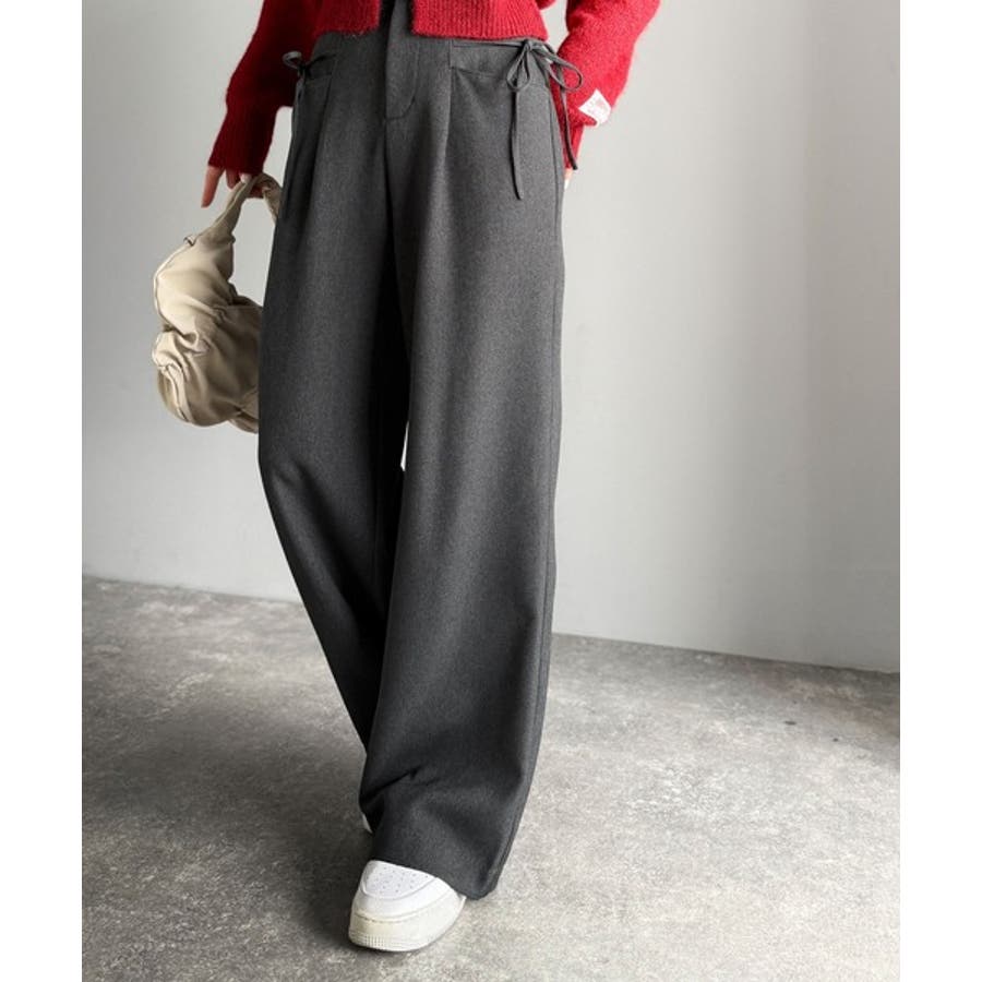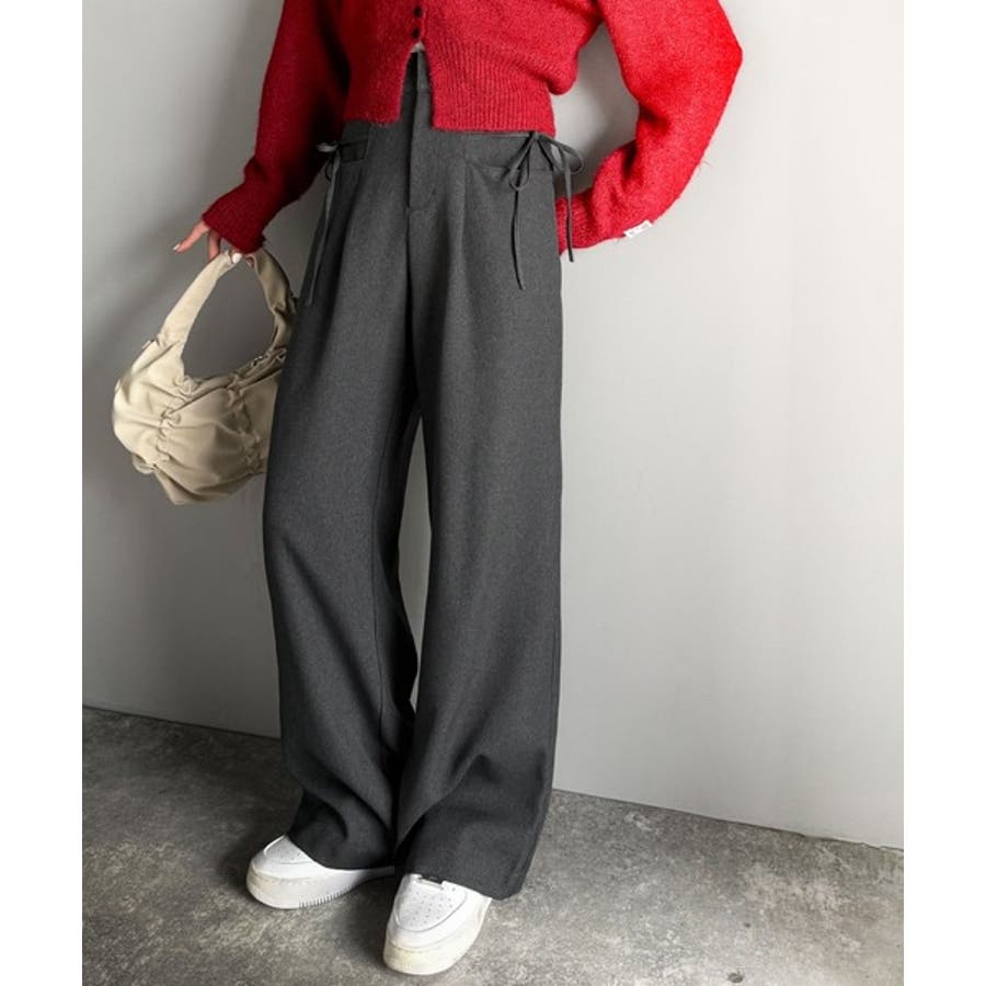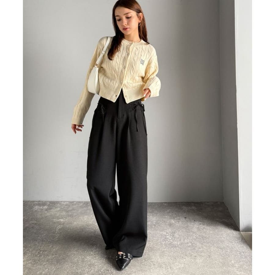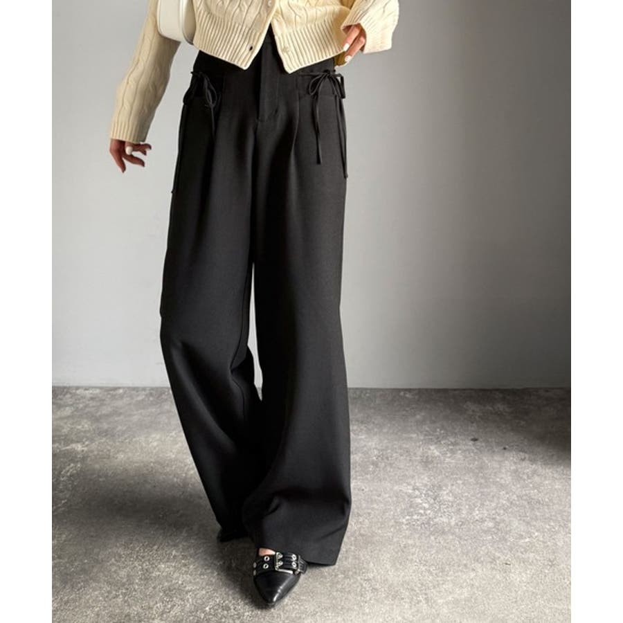 きれいめガーリースタイルに取り入れたい、リボン付きのワイドパンツです。
