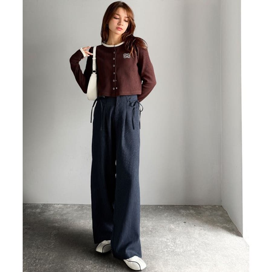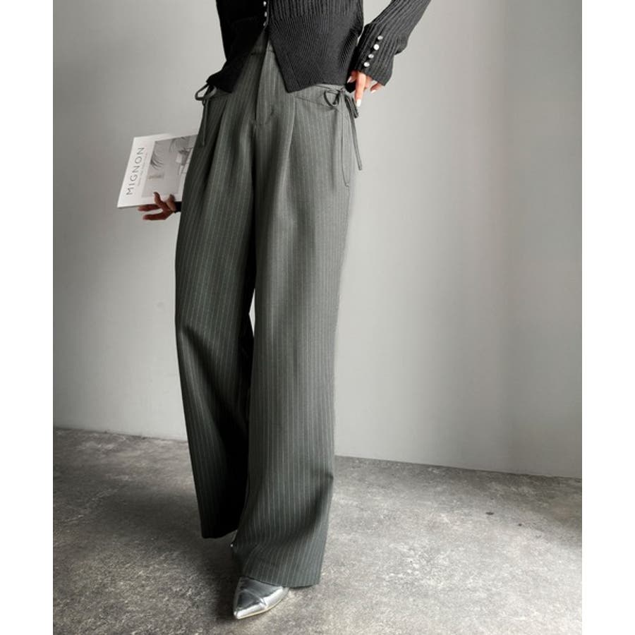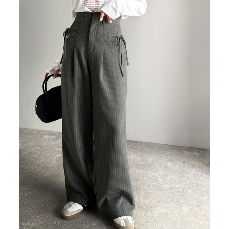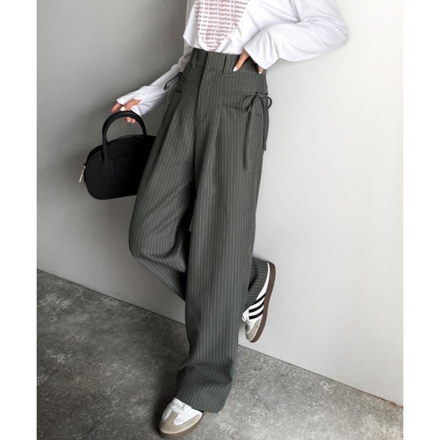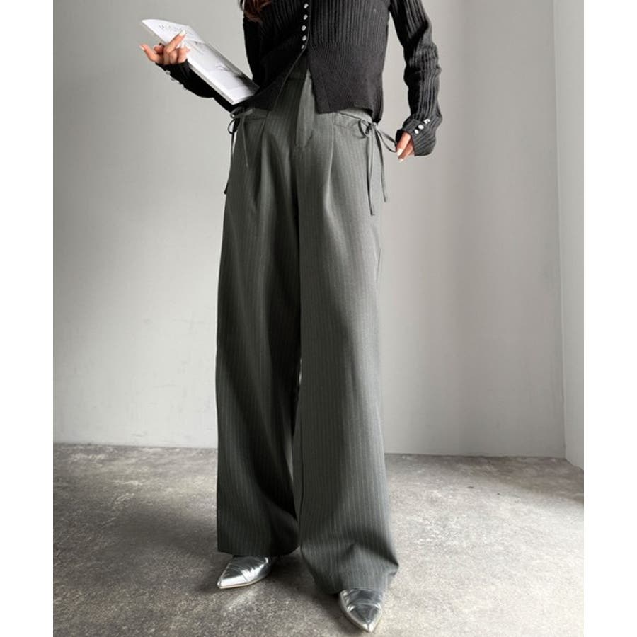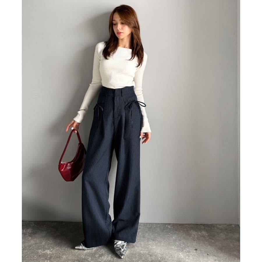 【mily bilet】タック入りストライプリボンワイドパンツ