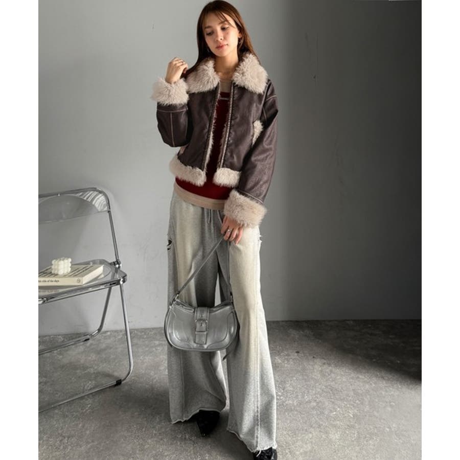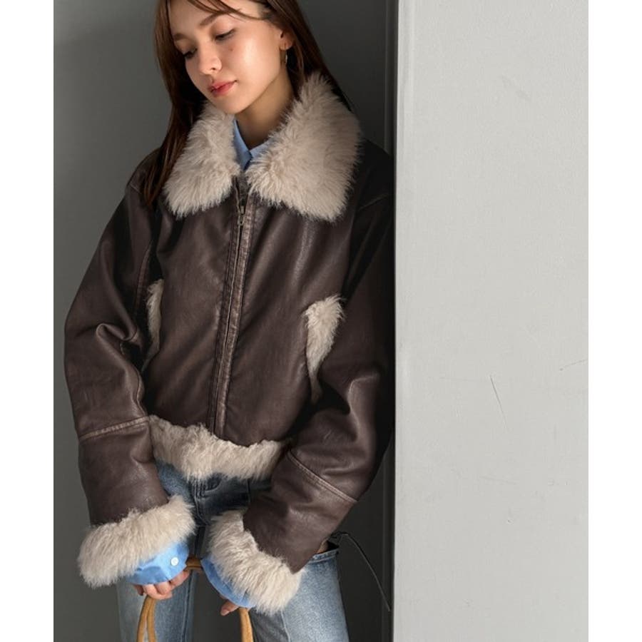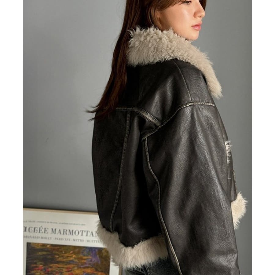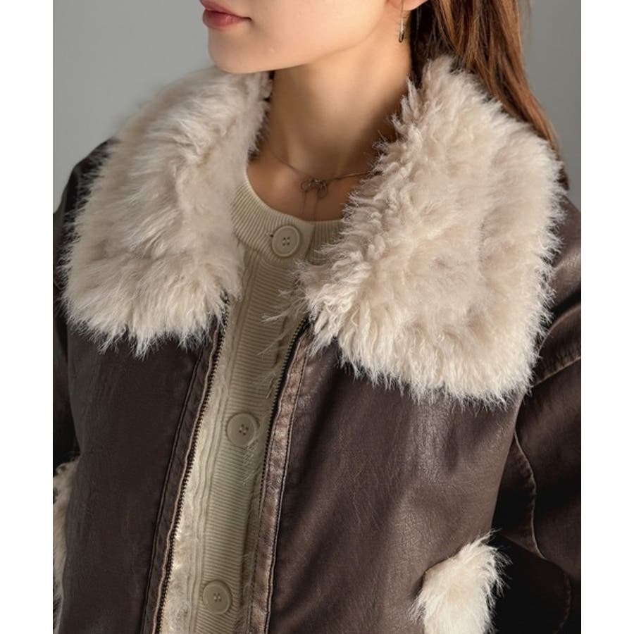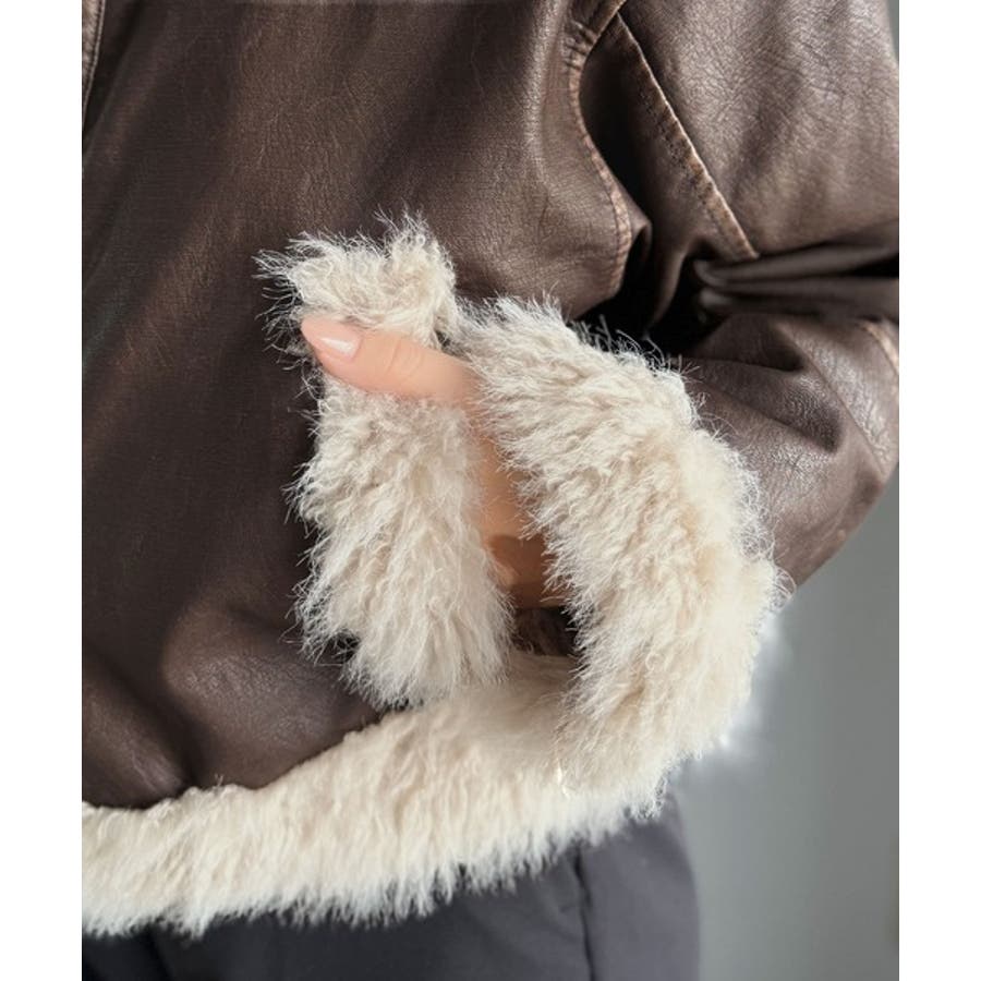 【mily bilet】ファー使いヴィンテージライク ダメージフェイクレザーライ…