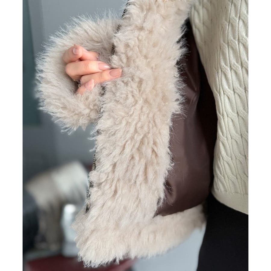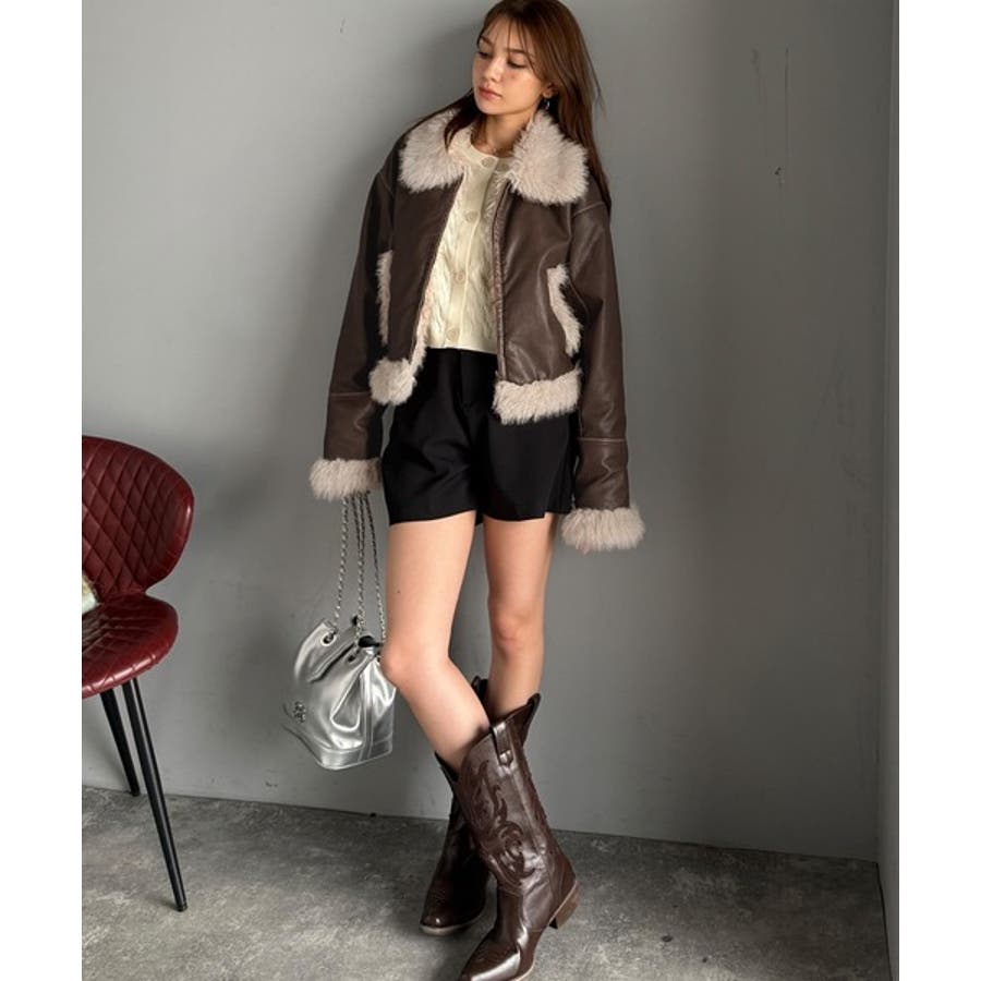 ふんわりボリュームのあるファーを組み合わせたライダースジャケット。
