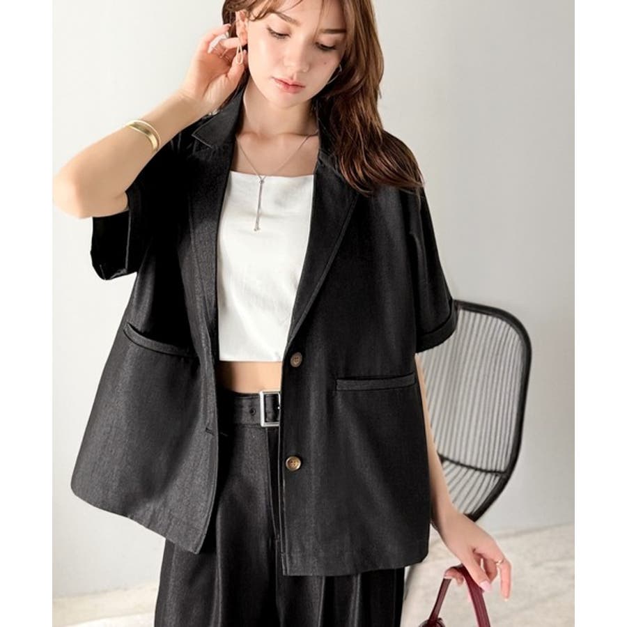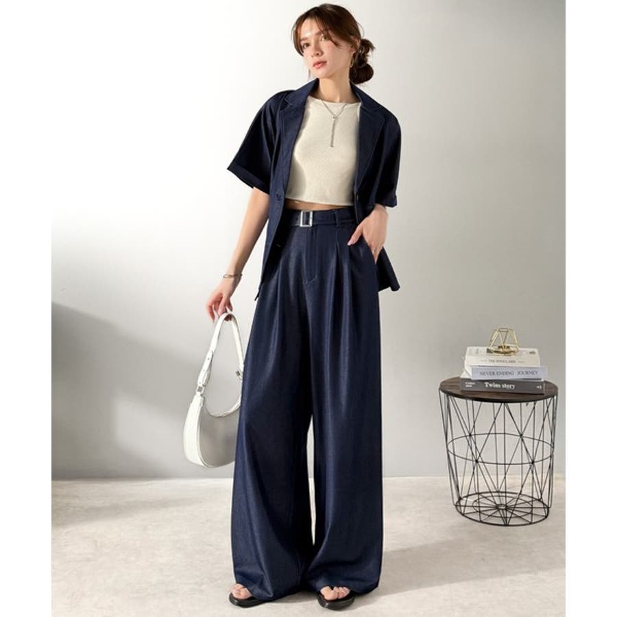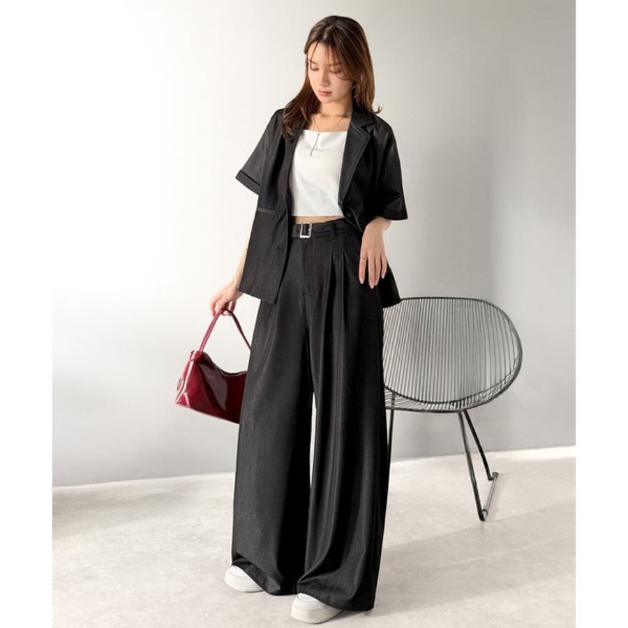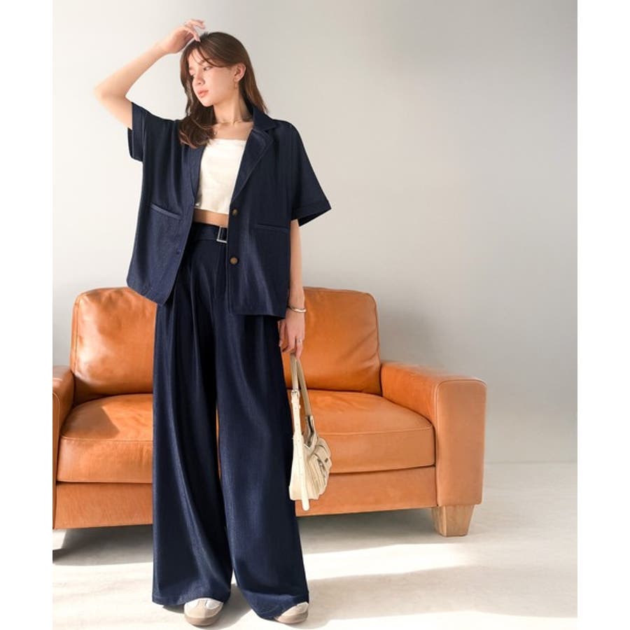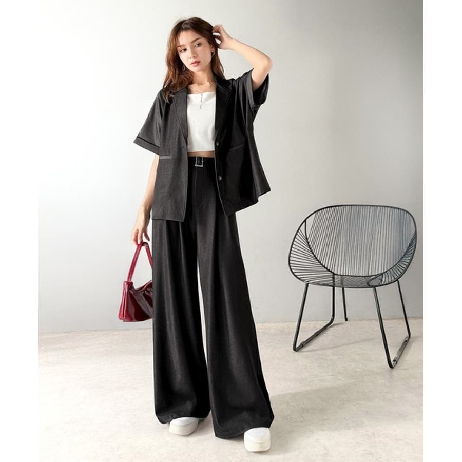 また、セットアップアイテムのジャケットと合わせればトレンド感あふれるコーディネートが完成!
