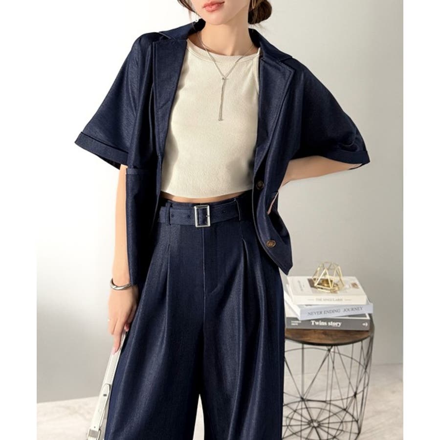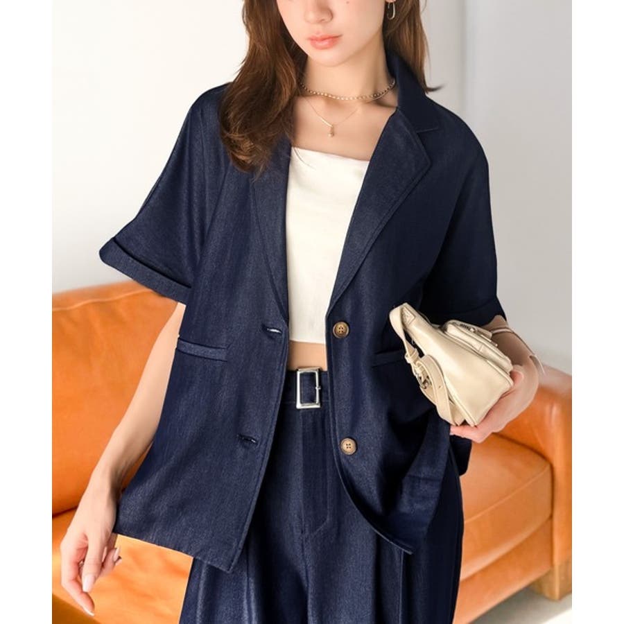 ・同素材のデニムジャケットとのセットアップ風コーデも可能(品番:mi1329068)