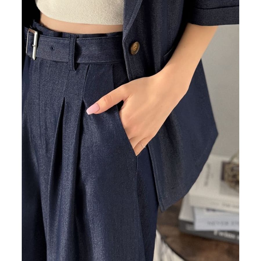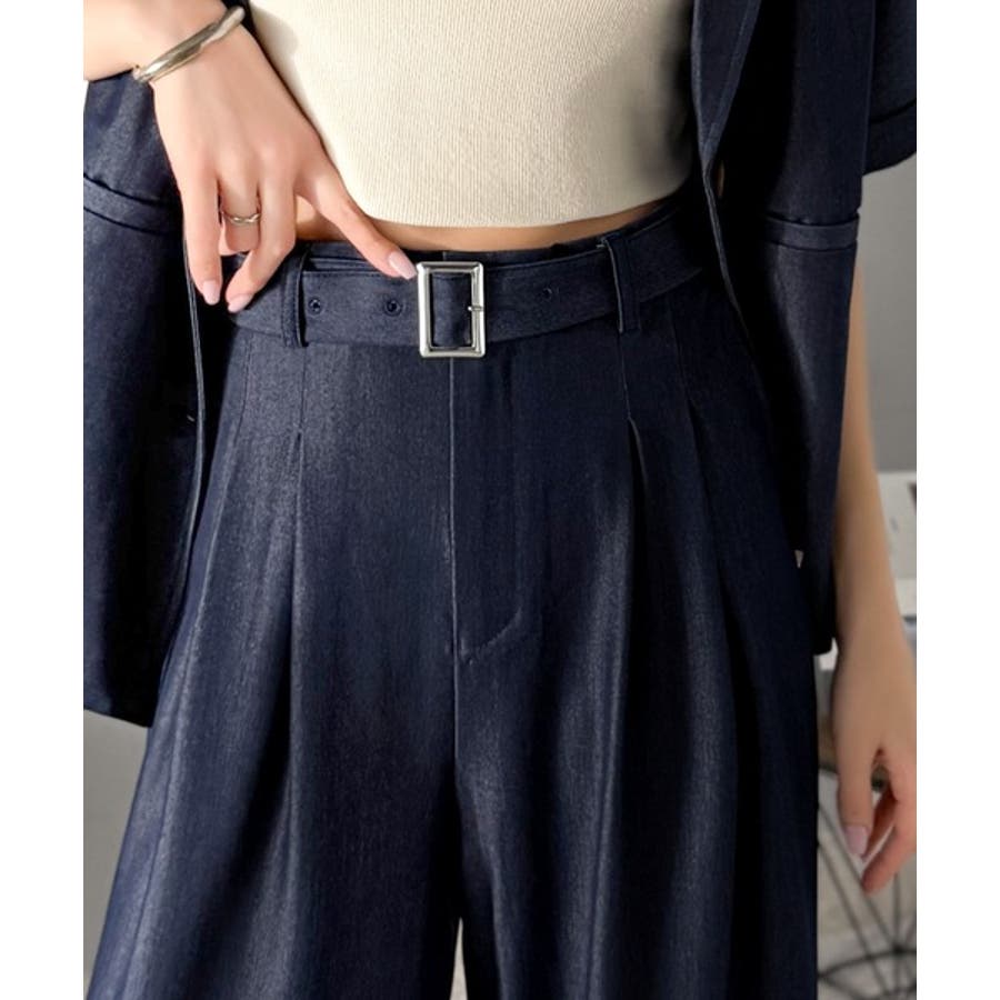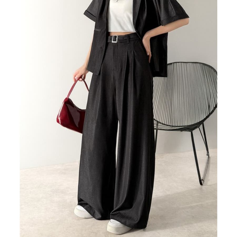 付属のベルトでウエストマークすれば、セットアップ風コーデも♪