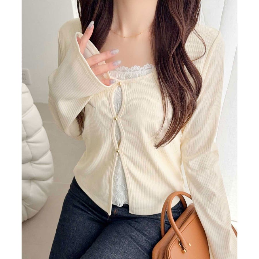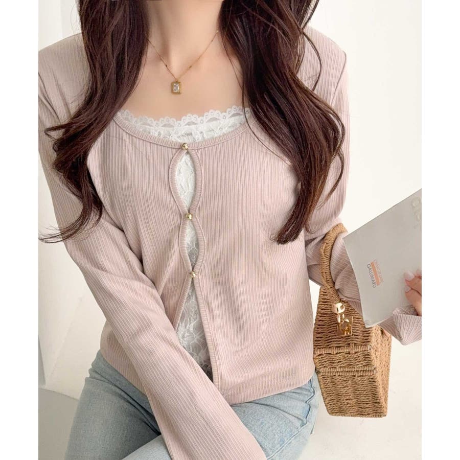 キャミソール×カーディガンを重ねたように見えるデザインで、