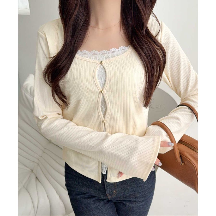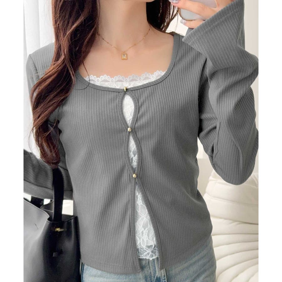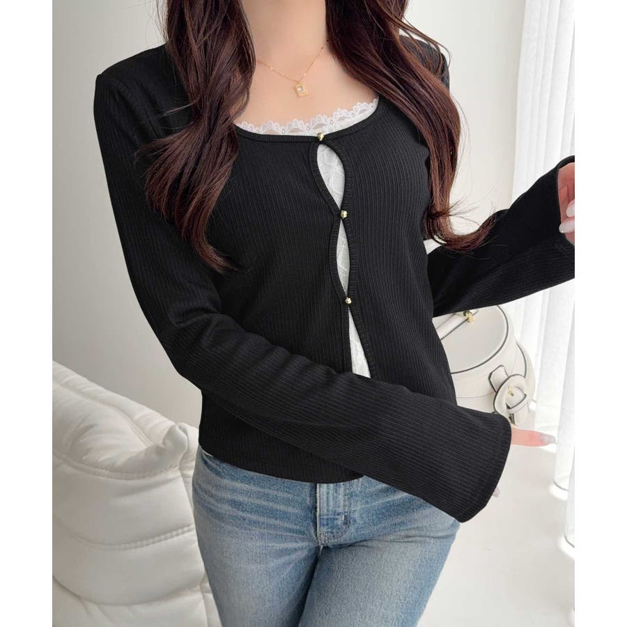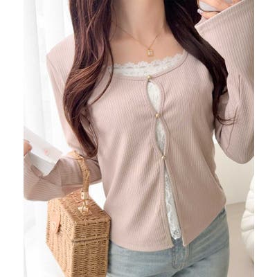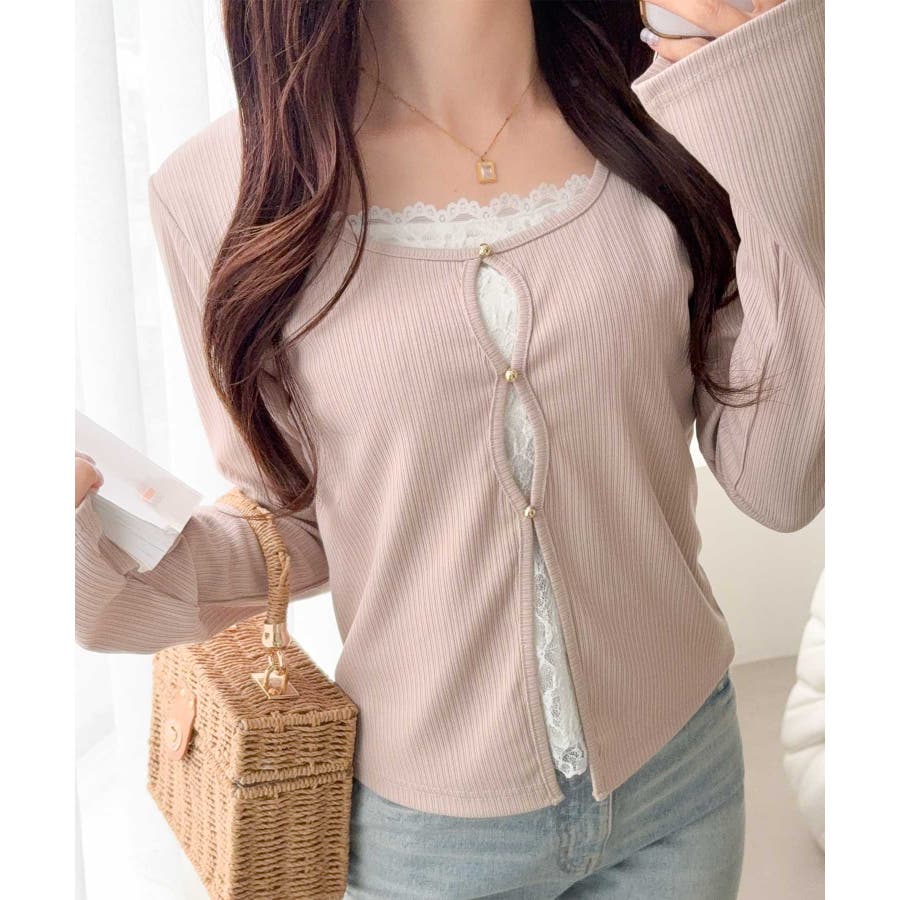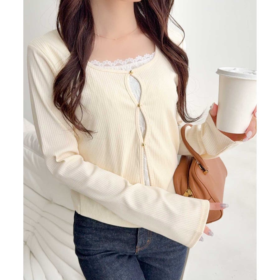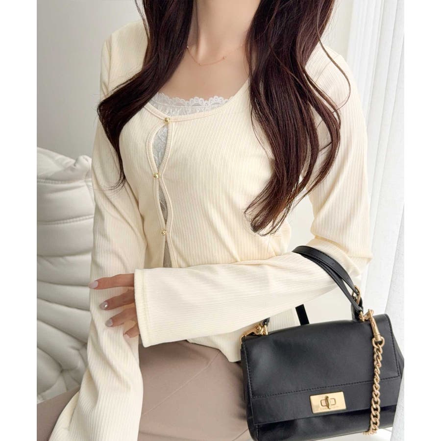 キャミソールにリブカーディガンを重ねたようなフェイクレイヤードデザイン。