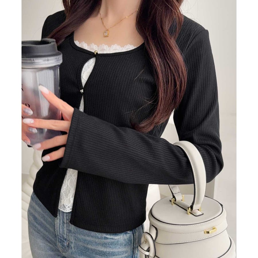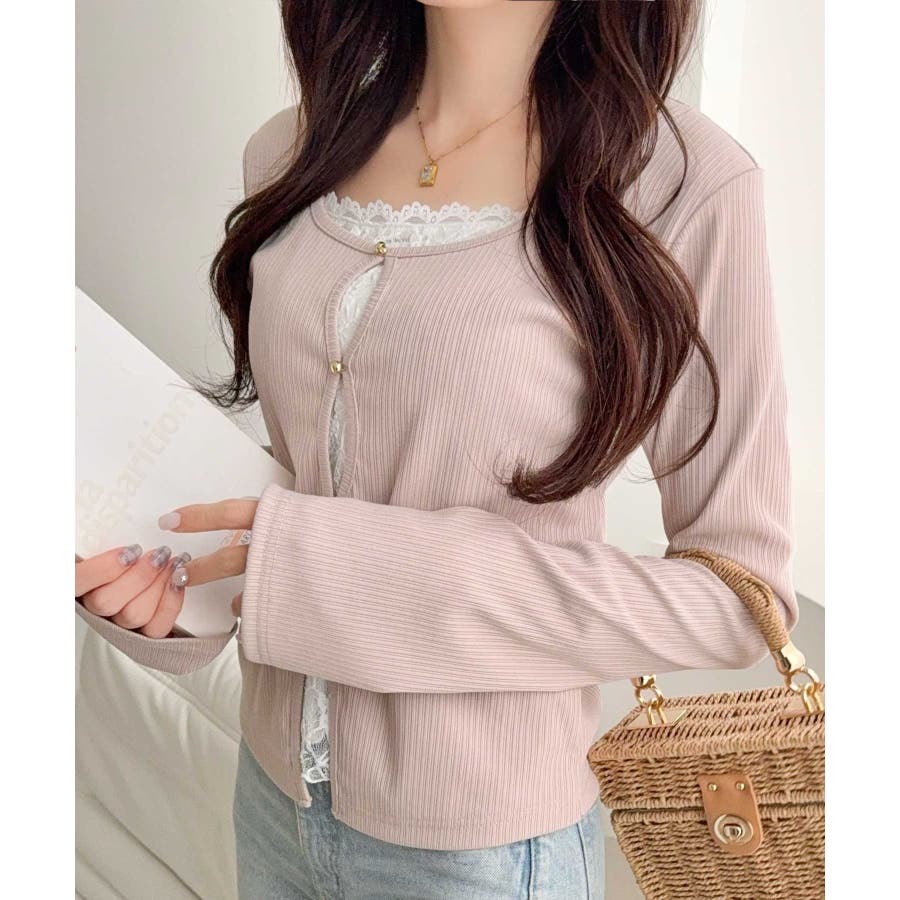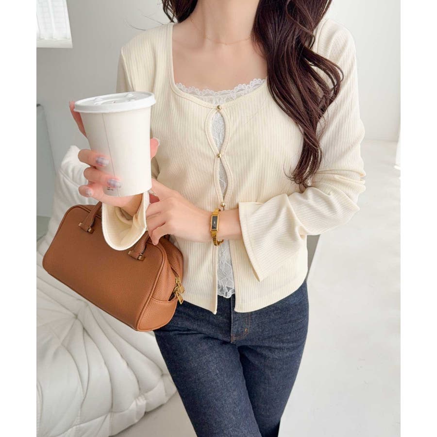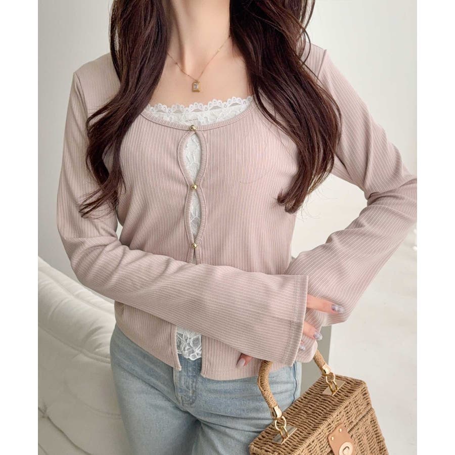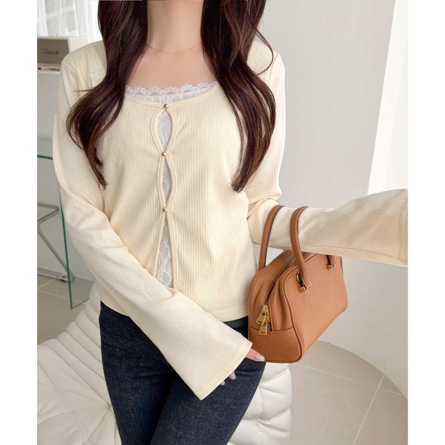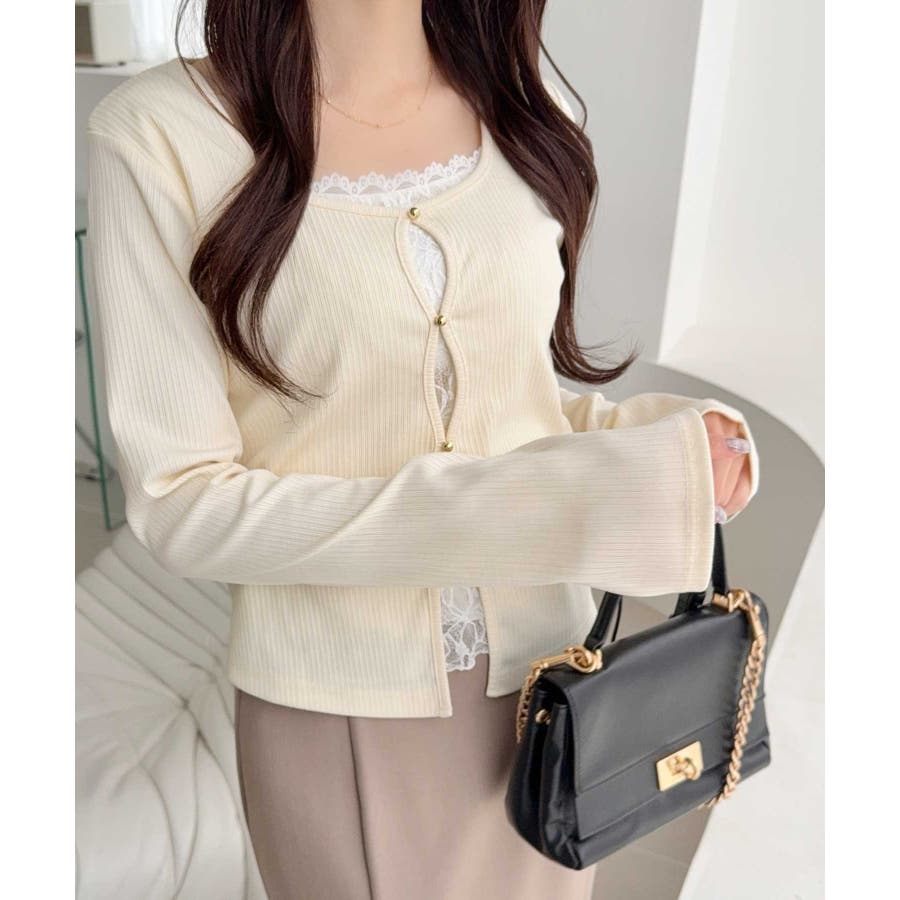 キャミソールにリブカーディガンを重ねたようなフェイクレイヤードデザイン。