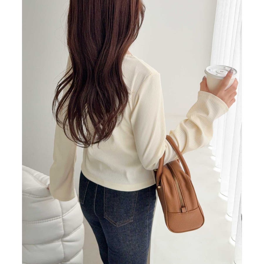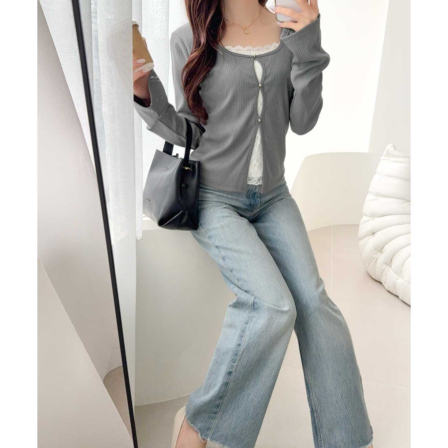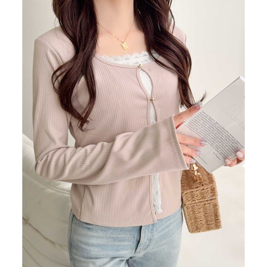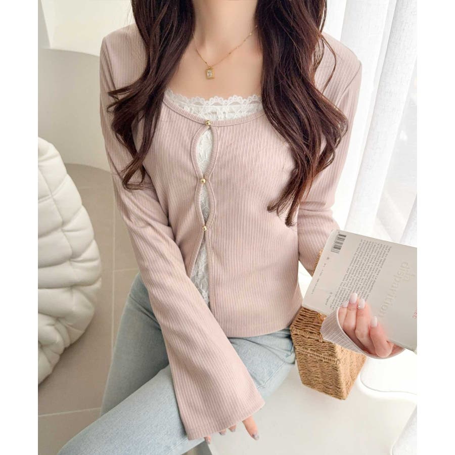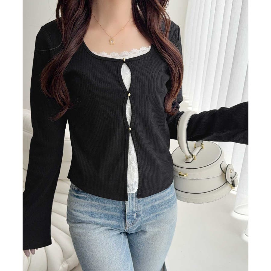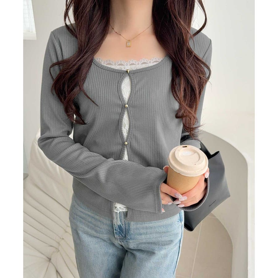 キャミソールにリブカーディガンを重ねたようなフェイクレイヤードデザイン。