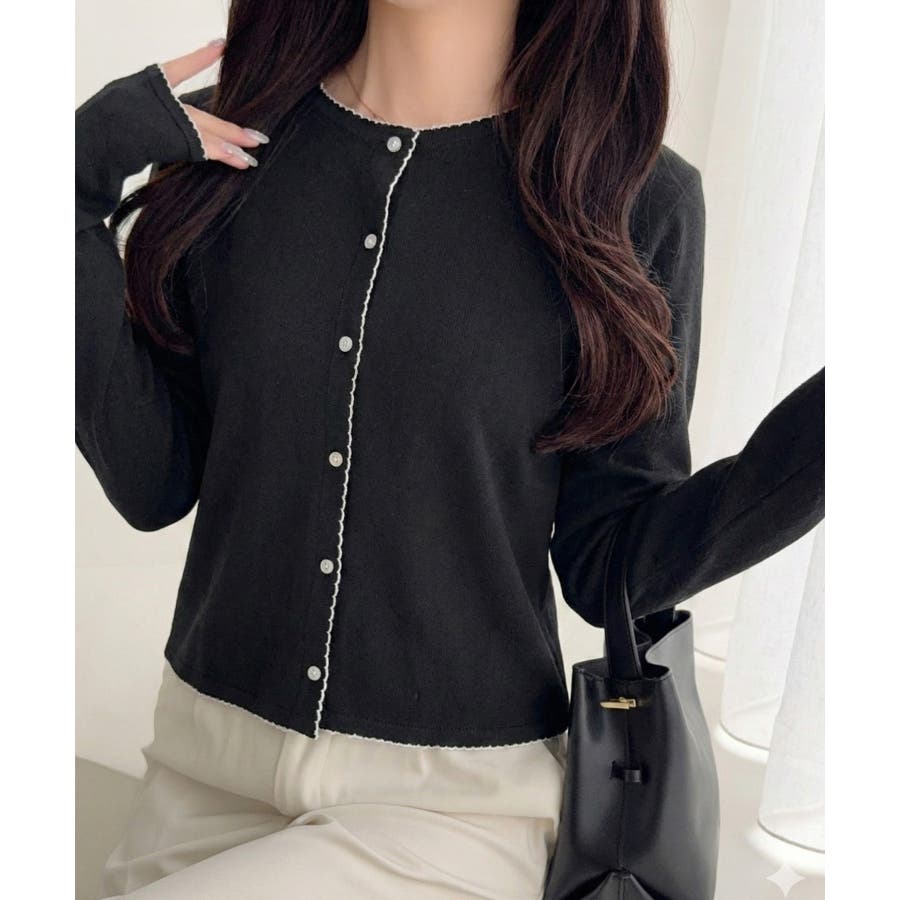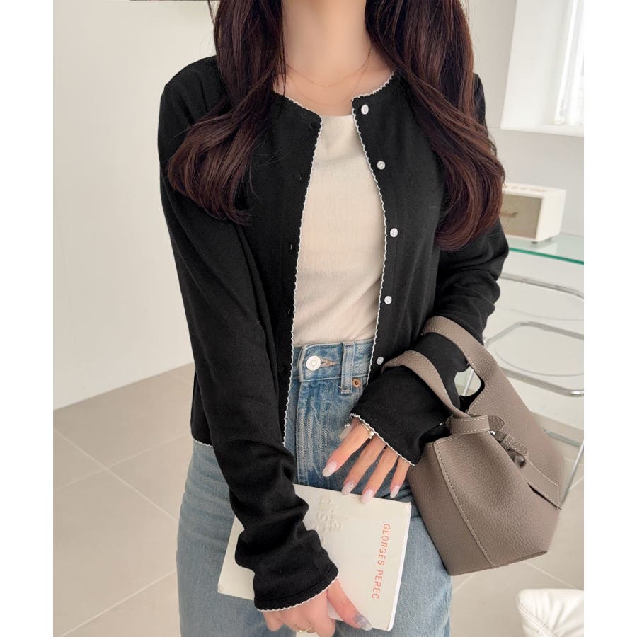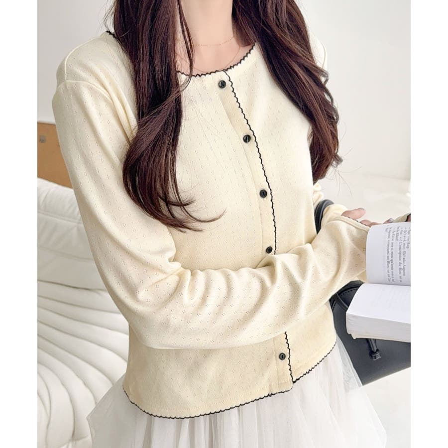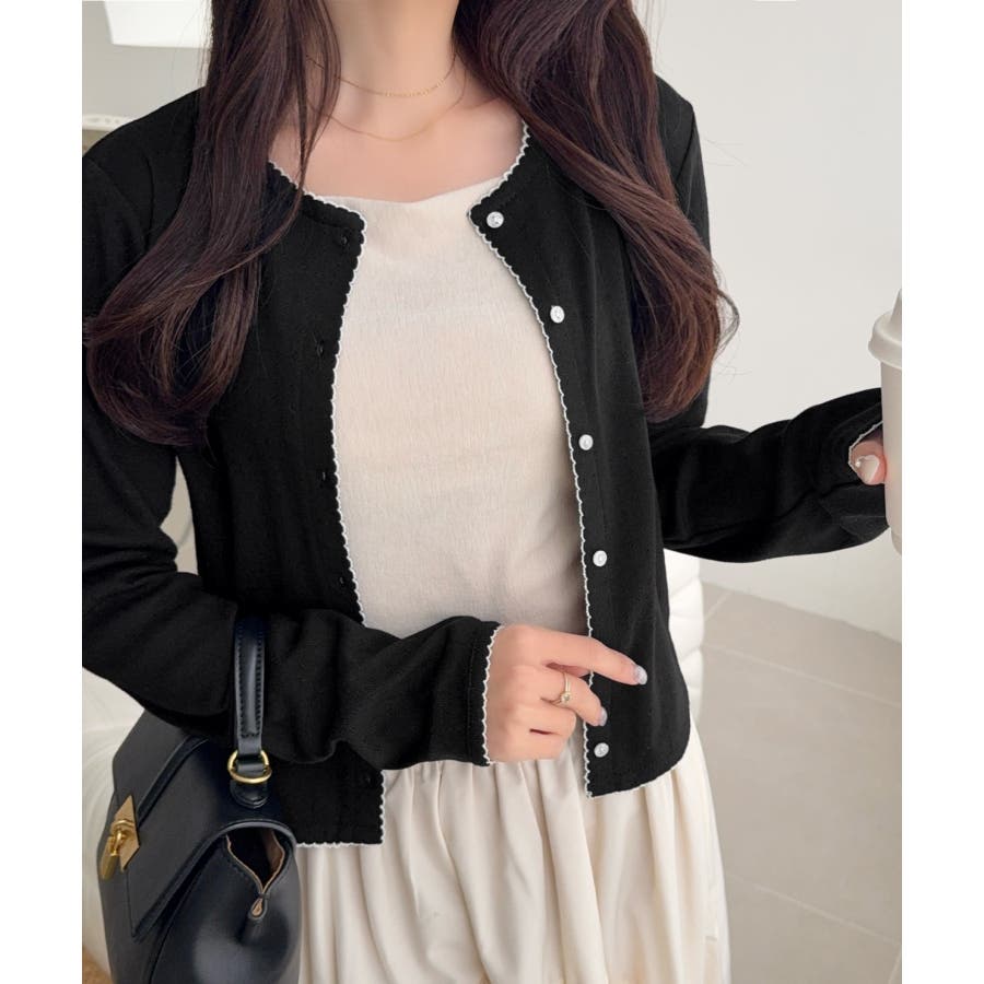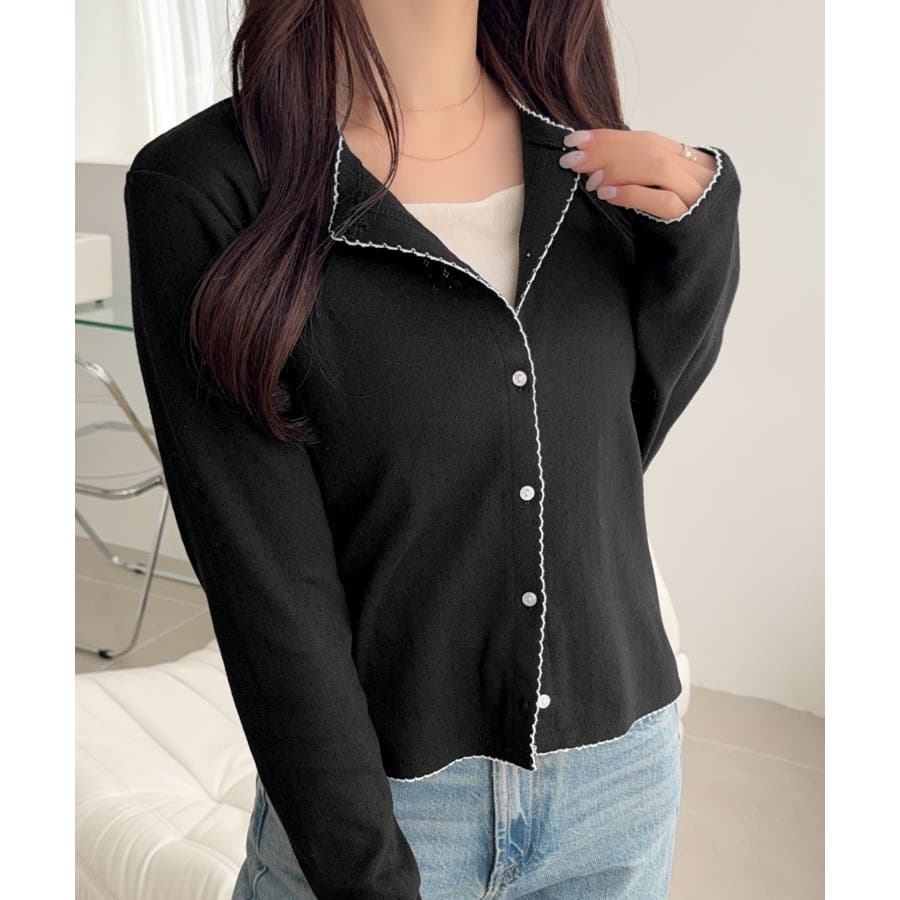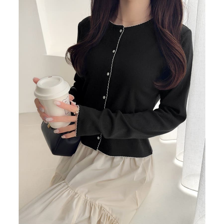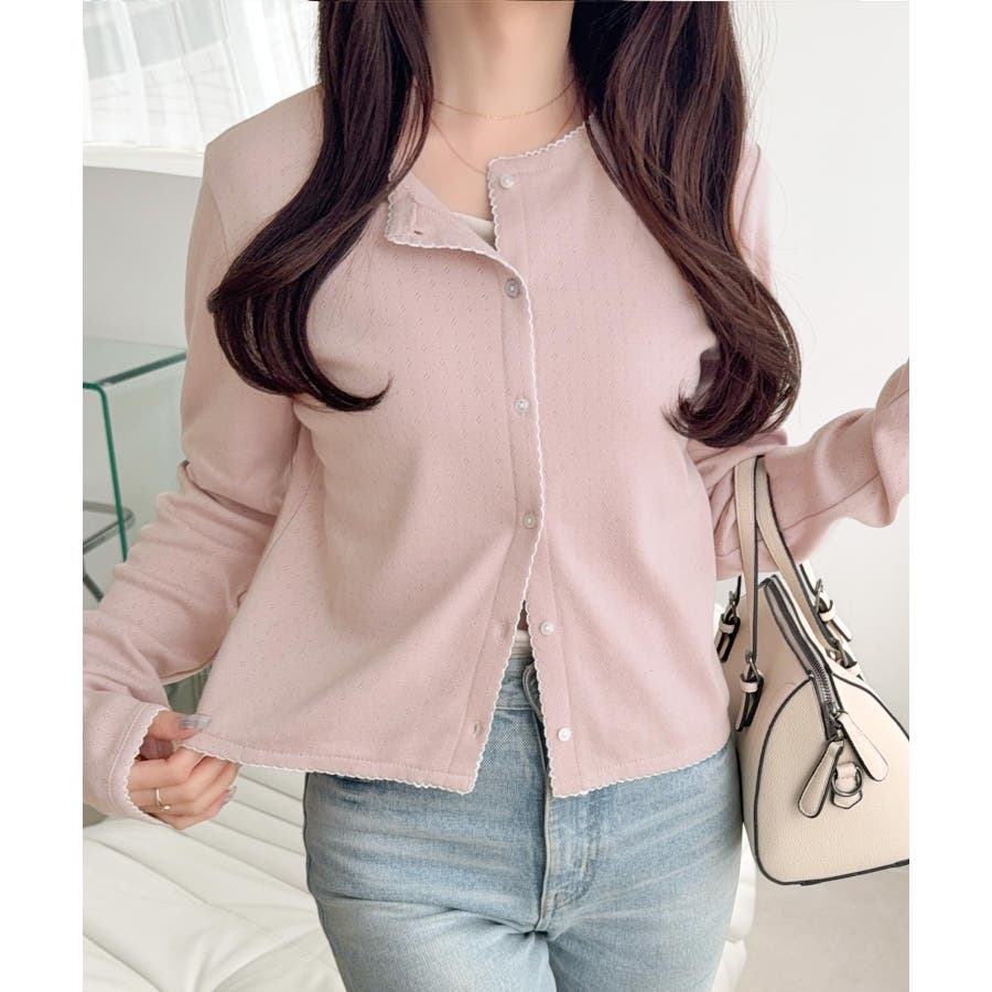 配色スカラップ刺繍とシェル調釦がアクセントとなり、ガーリーからカジュアルまで幅広い着こなしに対応します♪