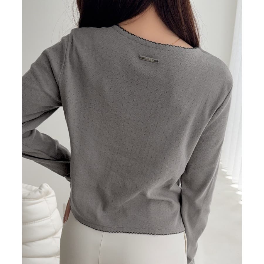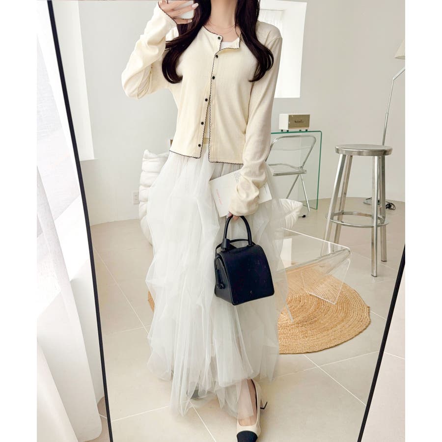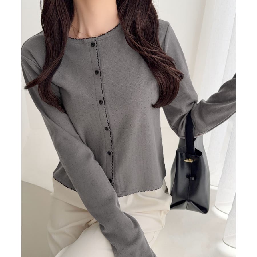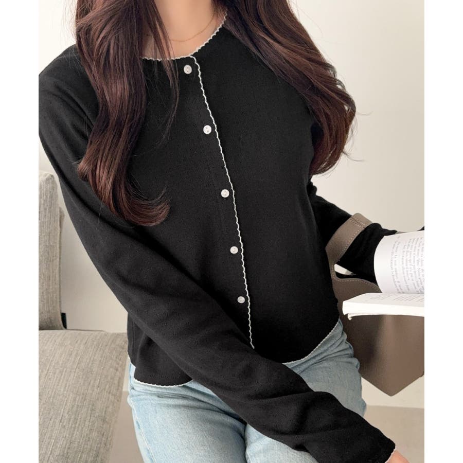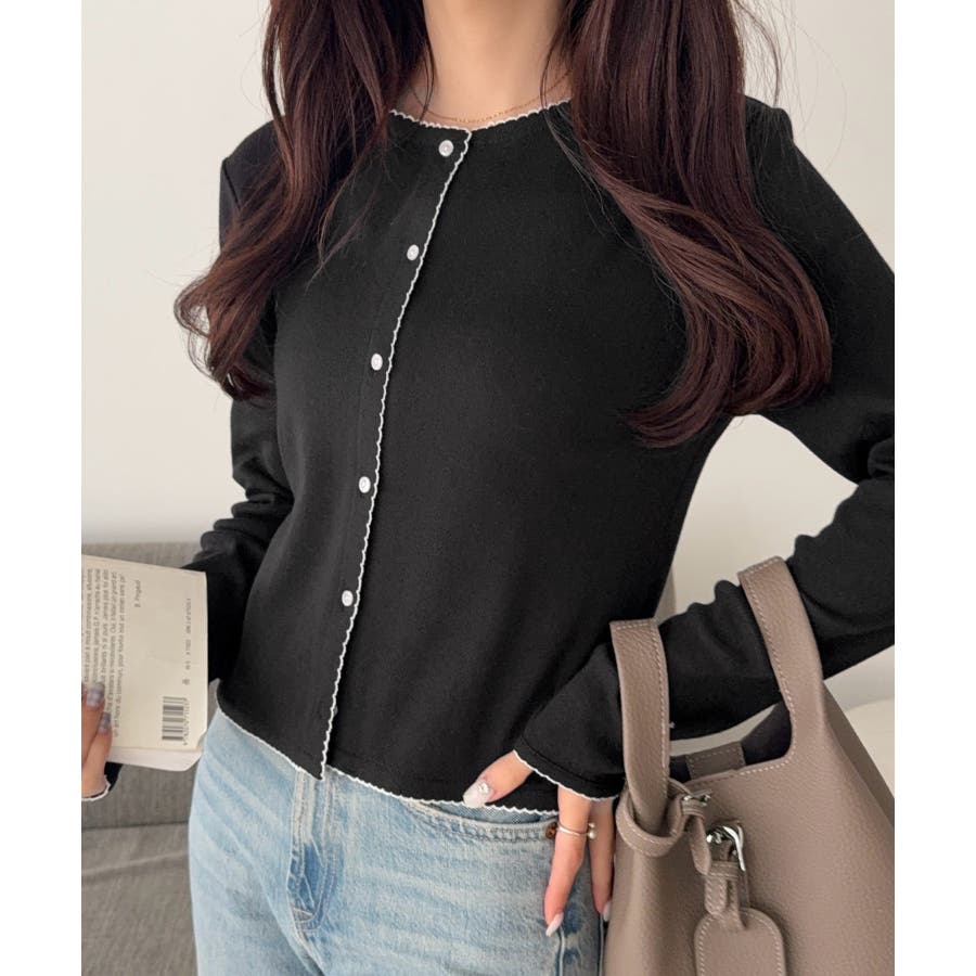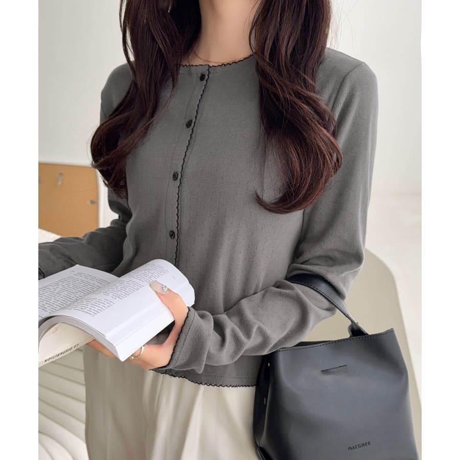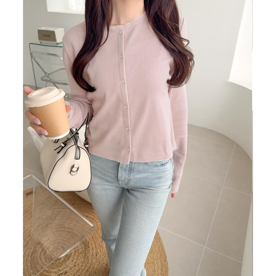 配色スカラップ刺繍とシェル調釦がアクセントとなり、ガーリーからカジュアルまで幅広い着こなしに対応します♪