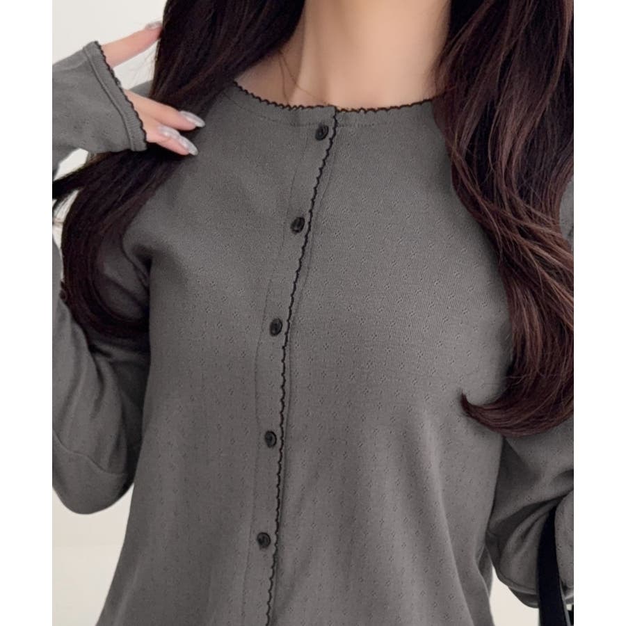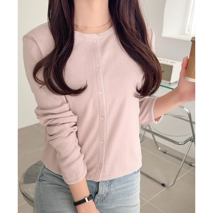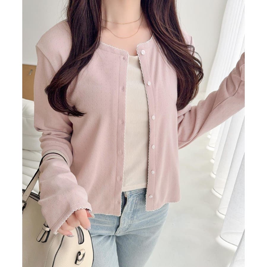 柔らかく、細かな花柄を施したパターンメッシュ生地を使用したロングスリーブカーディガン。