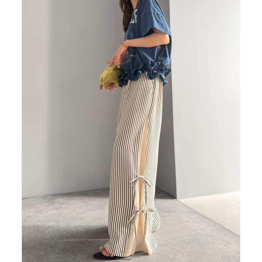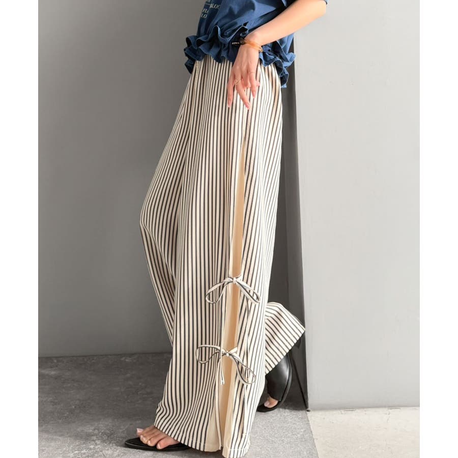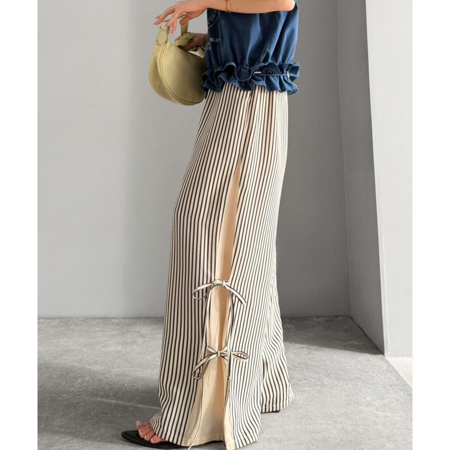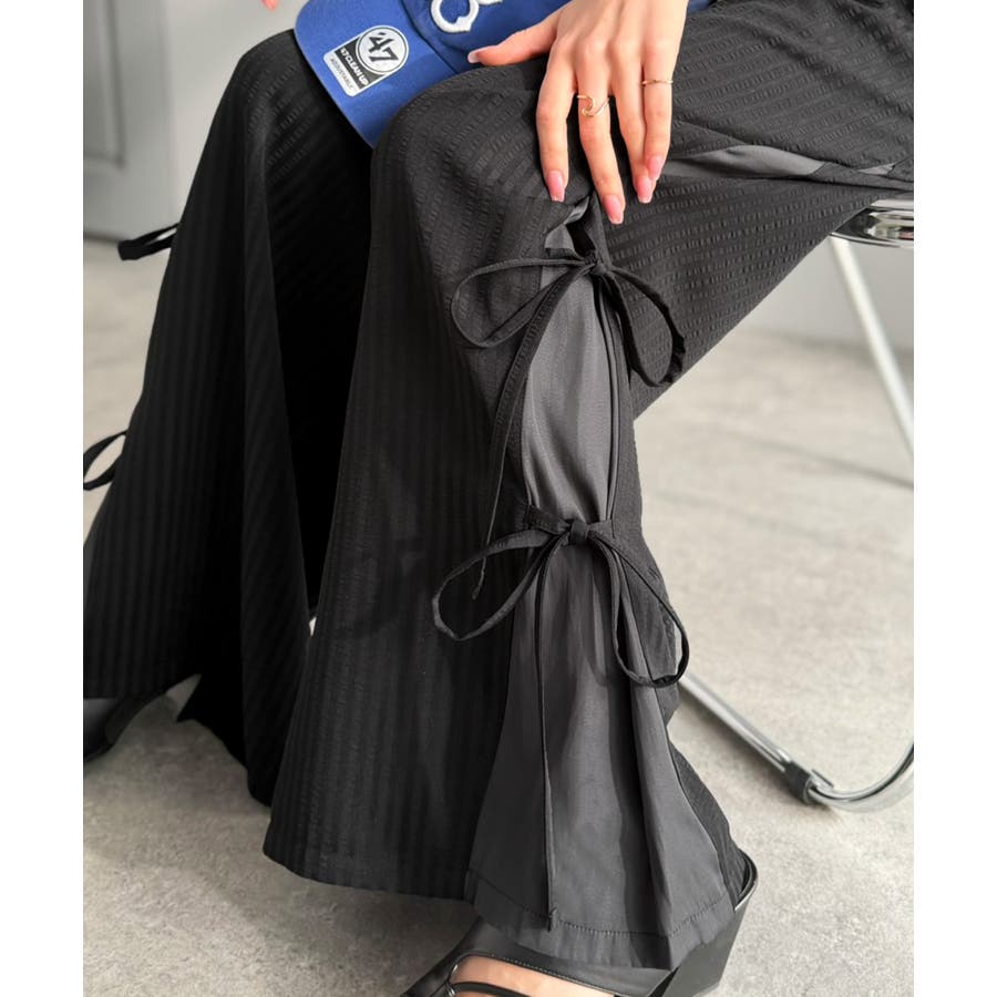 サイドの配色切り替えとリボンが、コーディネートのさりげないアクセントに♪