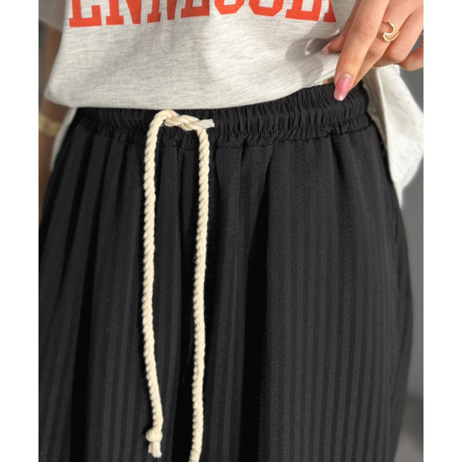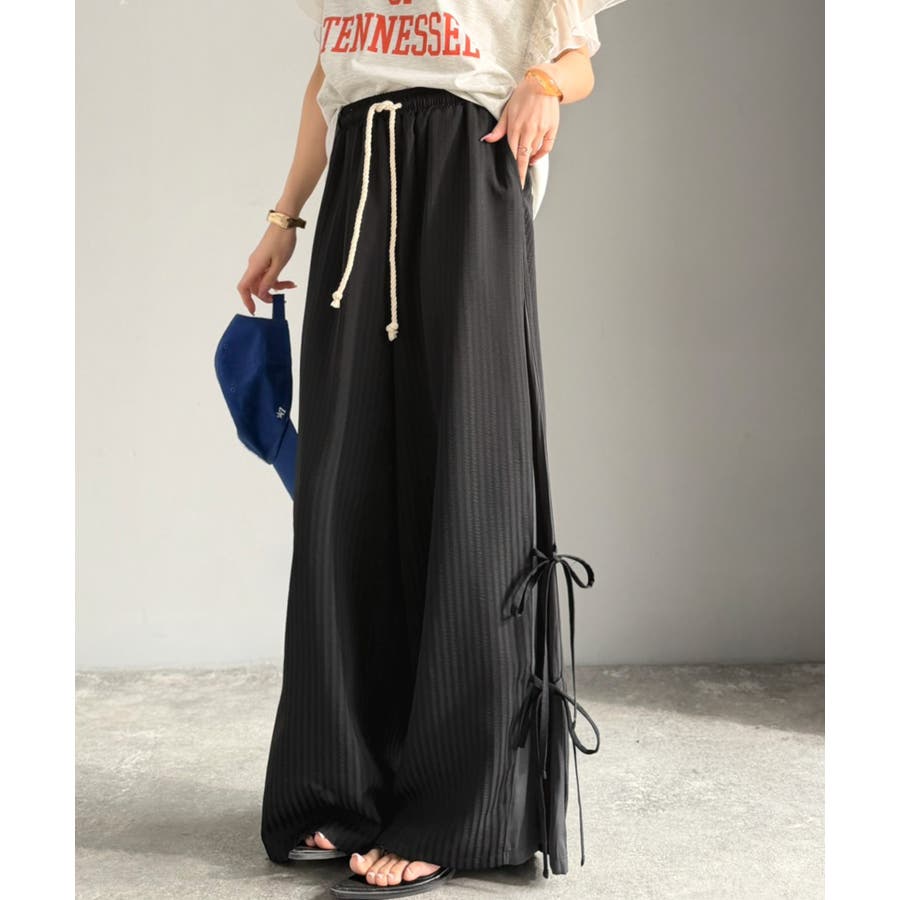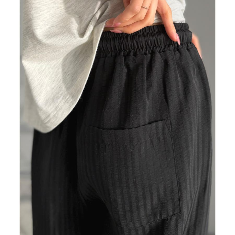 ウエストゴムのイージー仕様で、リラックスウェアとしても取り入れやすい一本です◎