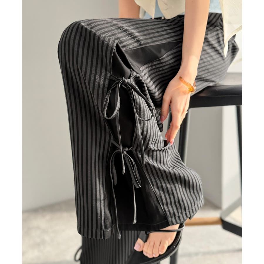サラッとしたストライプ布帛生地と、光沢感のあるサテン素材の組み合わせ。