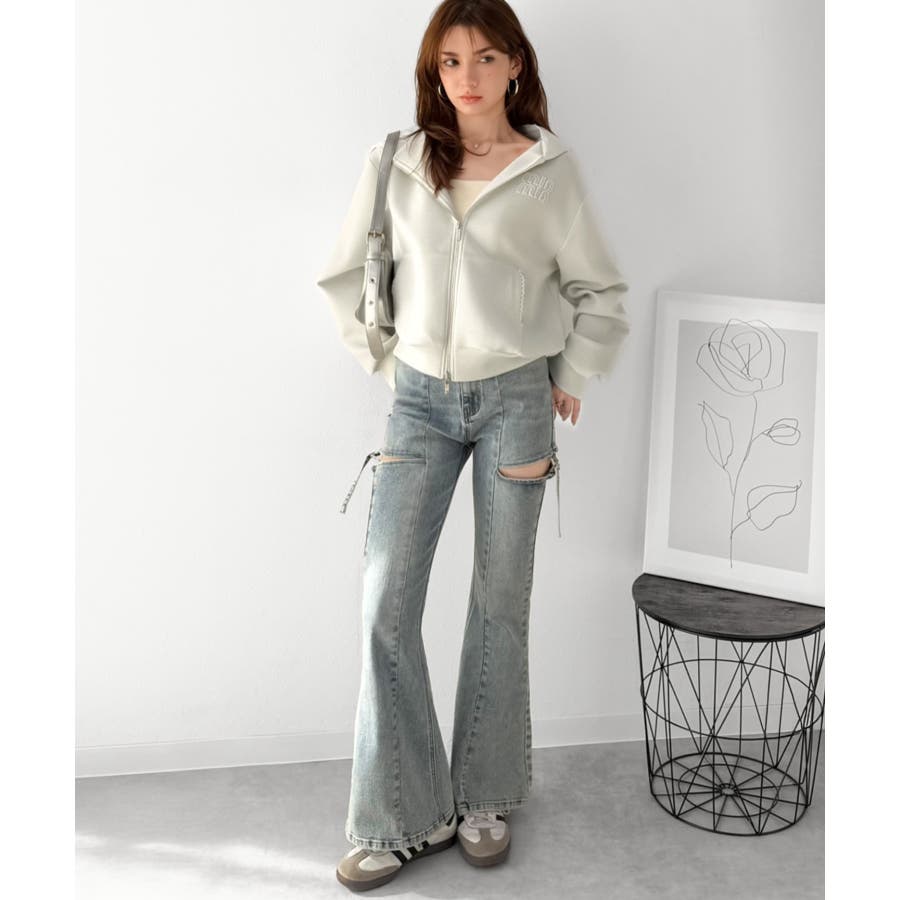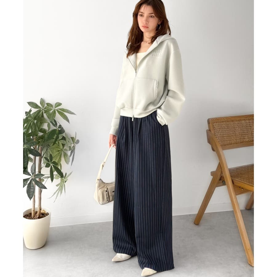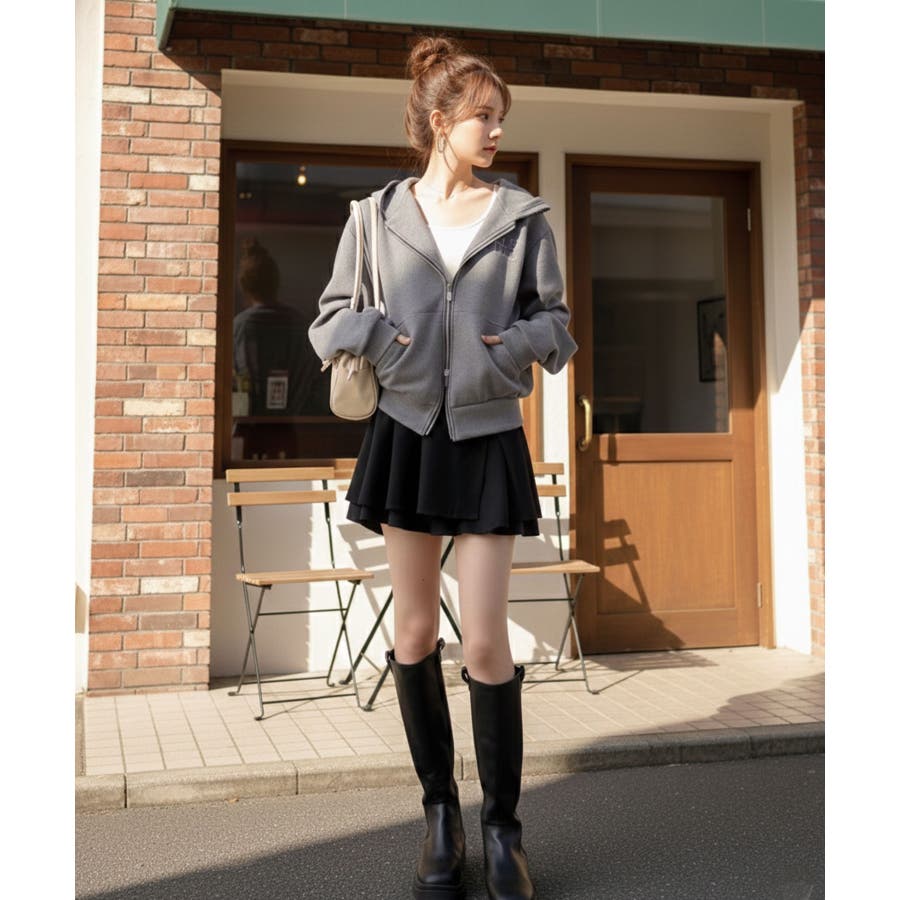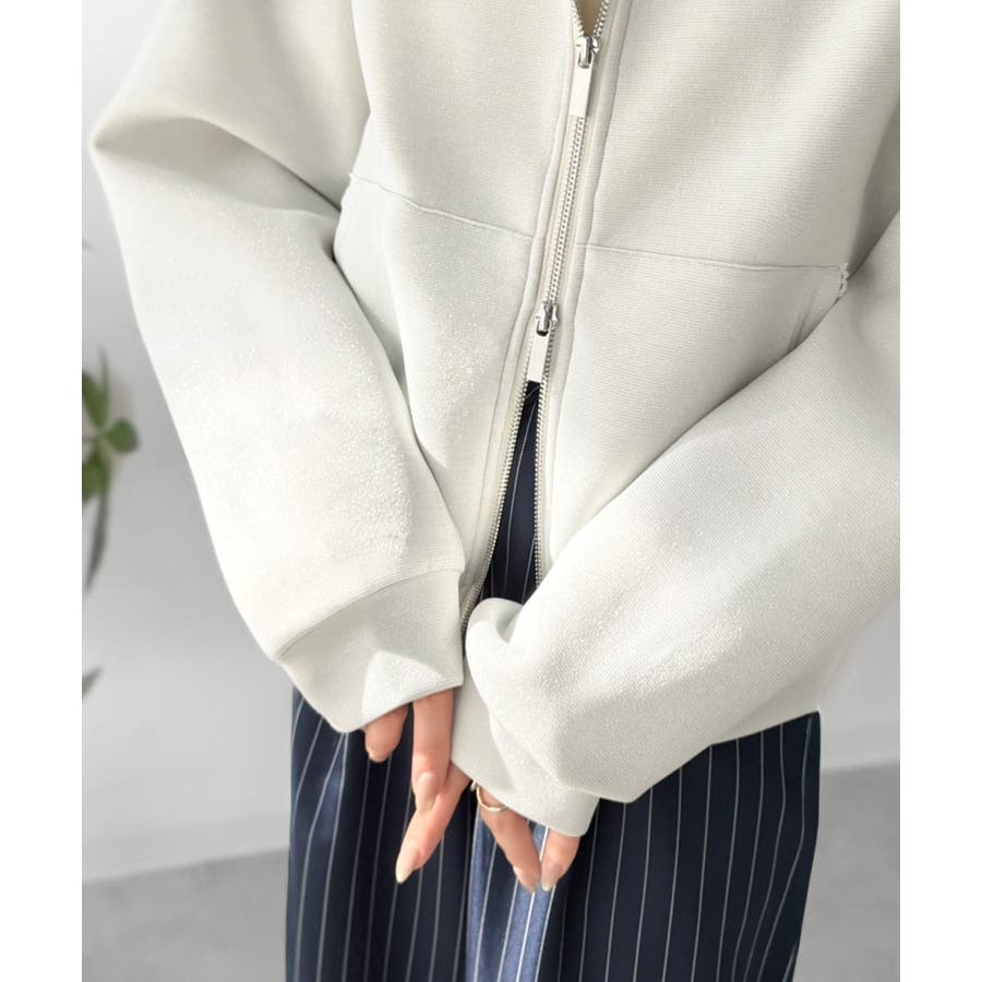 トレンドのダブルジップは、上下の開け方次第でパッと抜け感を演出♪