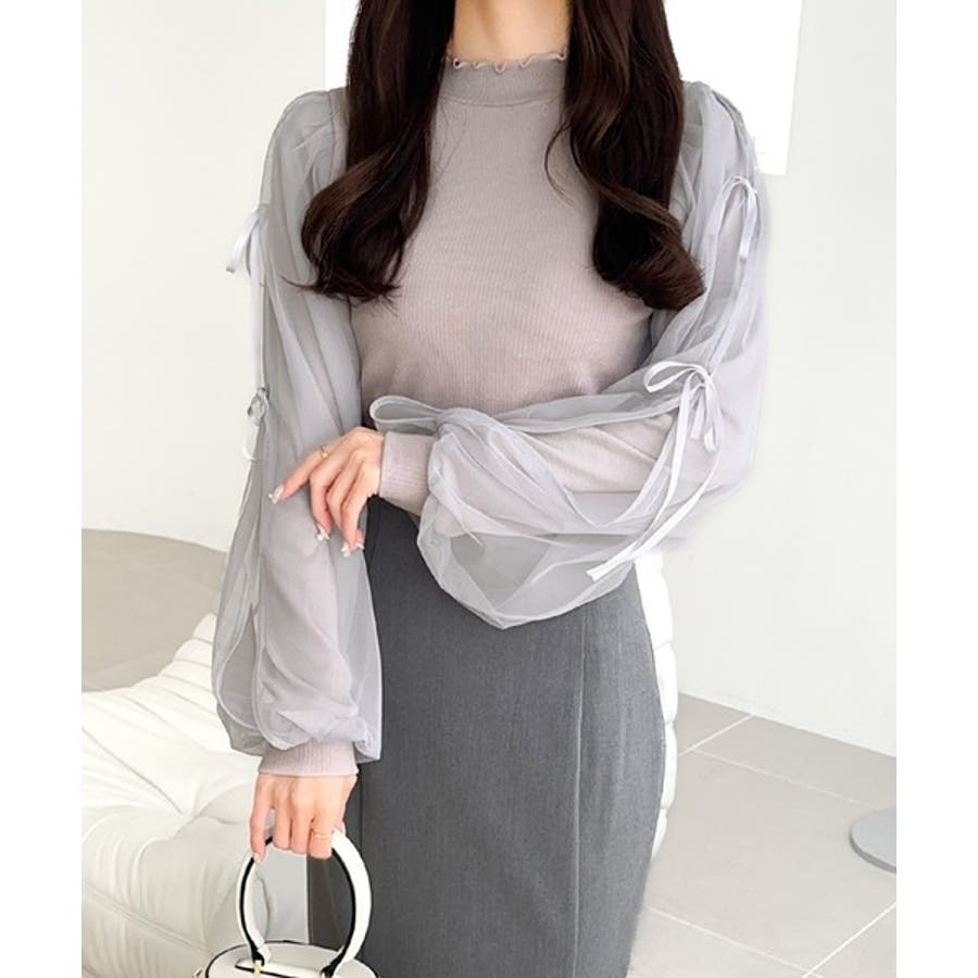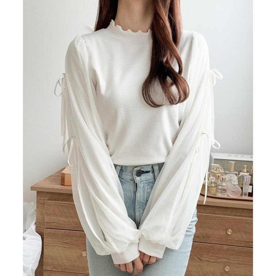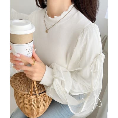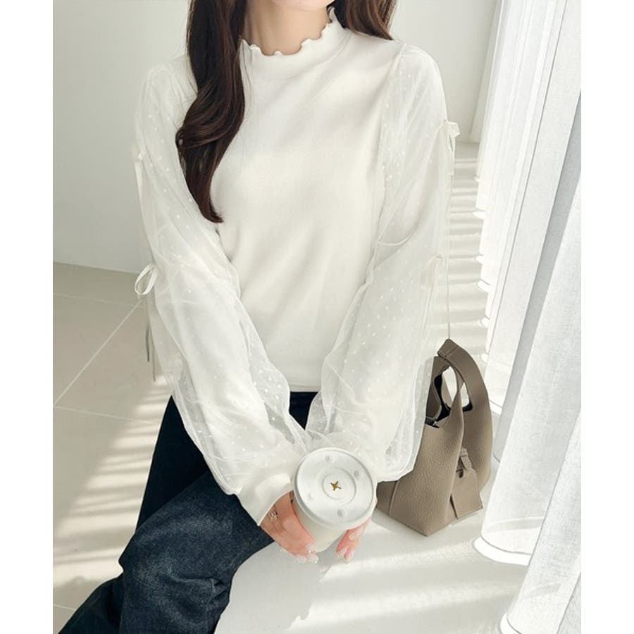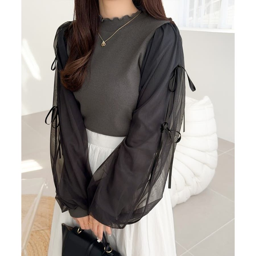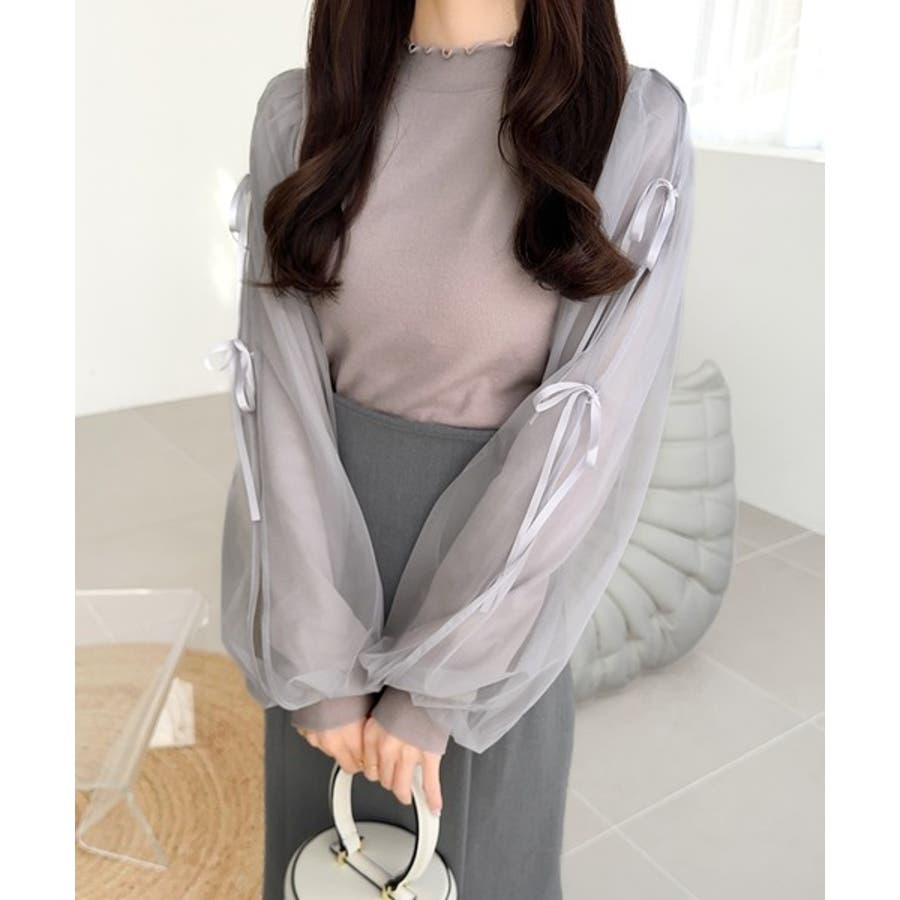 エレガントなチュールスリーブが魅力のこのニットソーは、