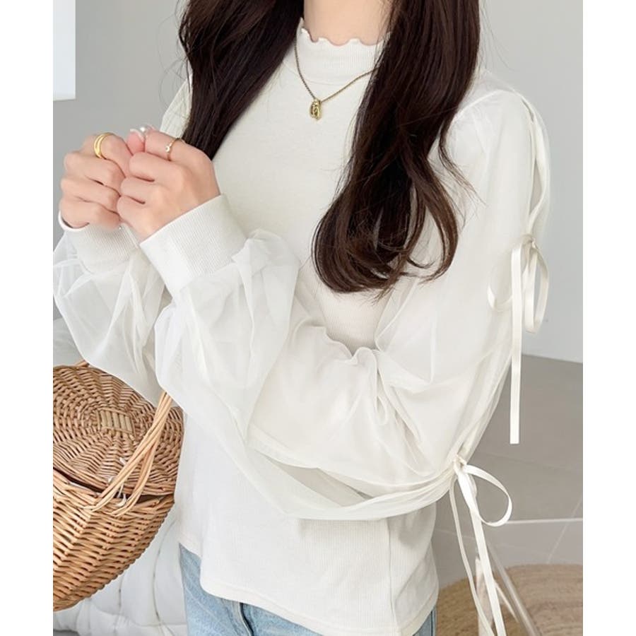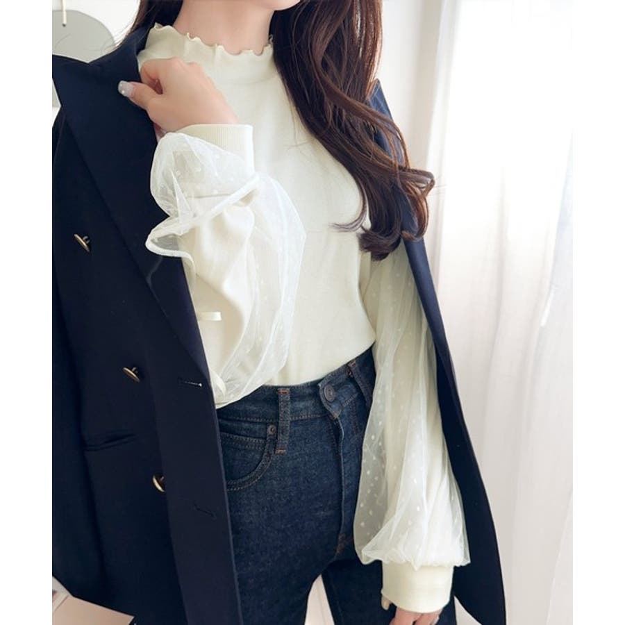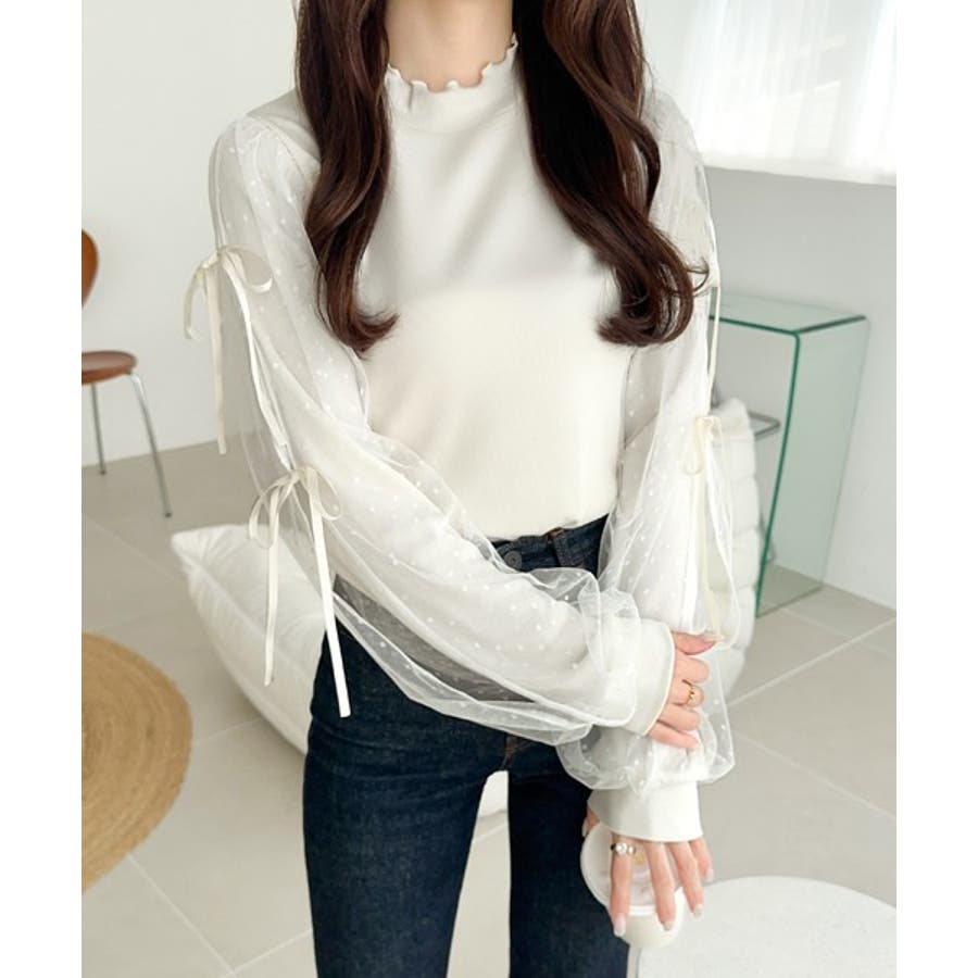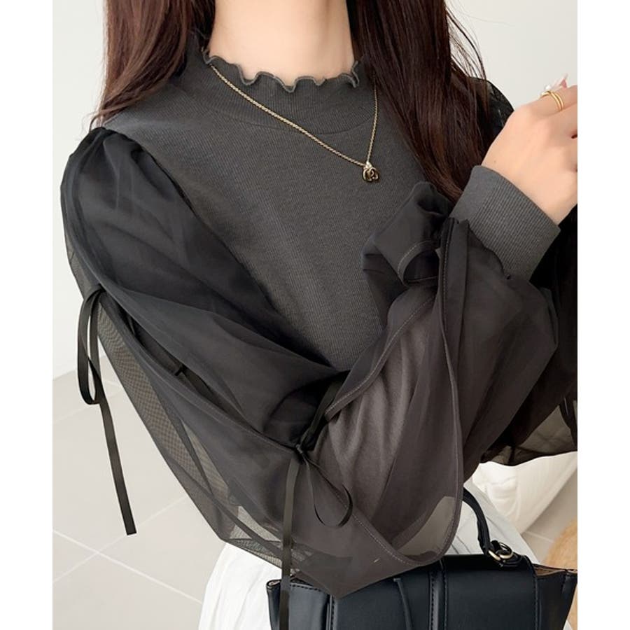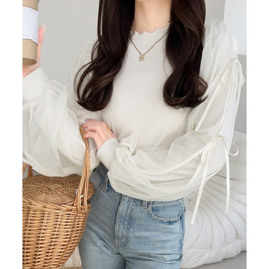 エレガントなチュールスリーブが魅力のこのニットソーは、
