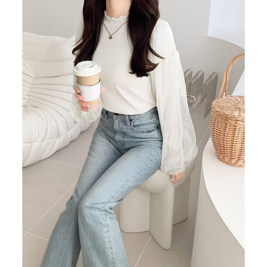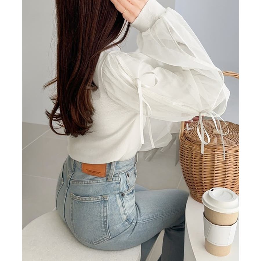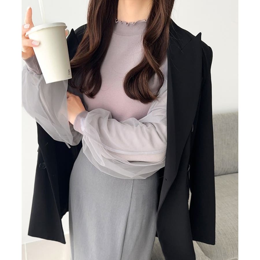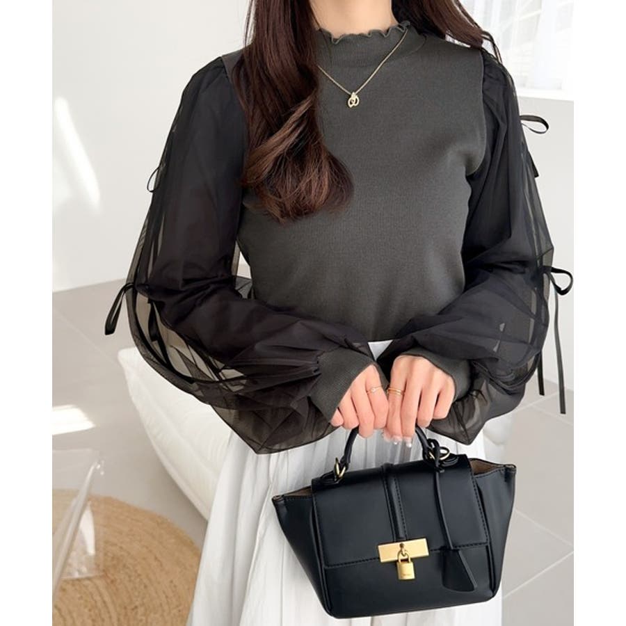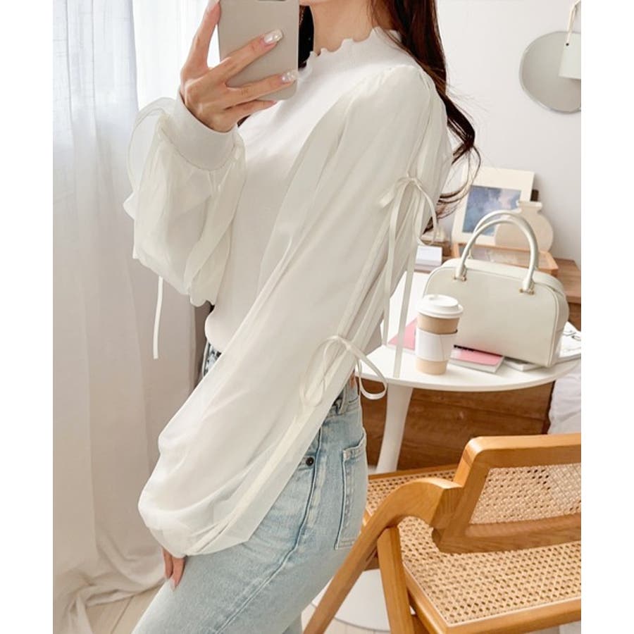 エレガントなチュールスリーブが魅力のこのニットソーは、