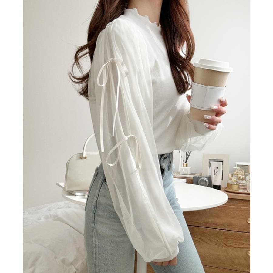軽やかなチュールが袖全体にあしらわれ、