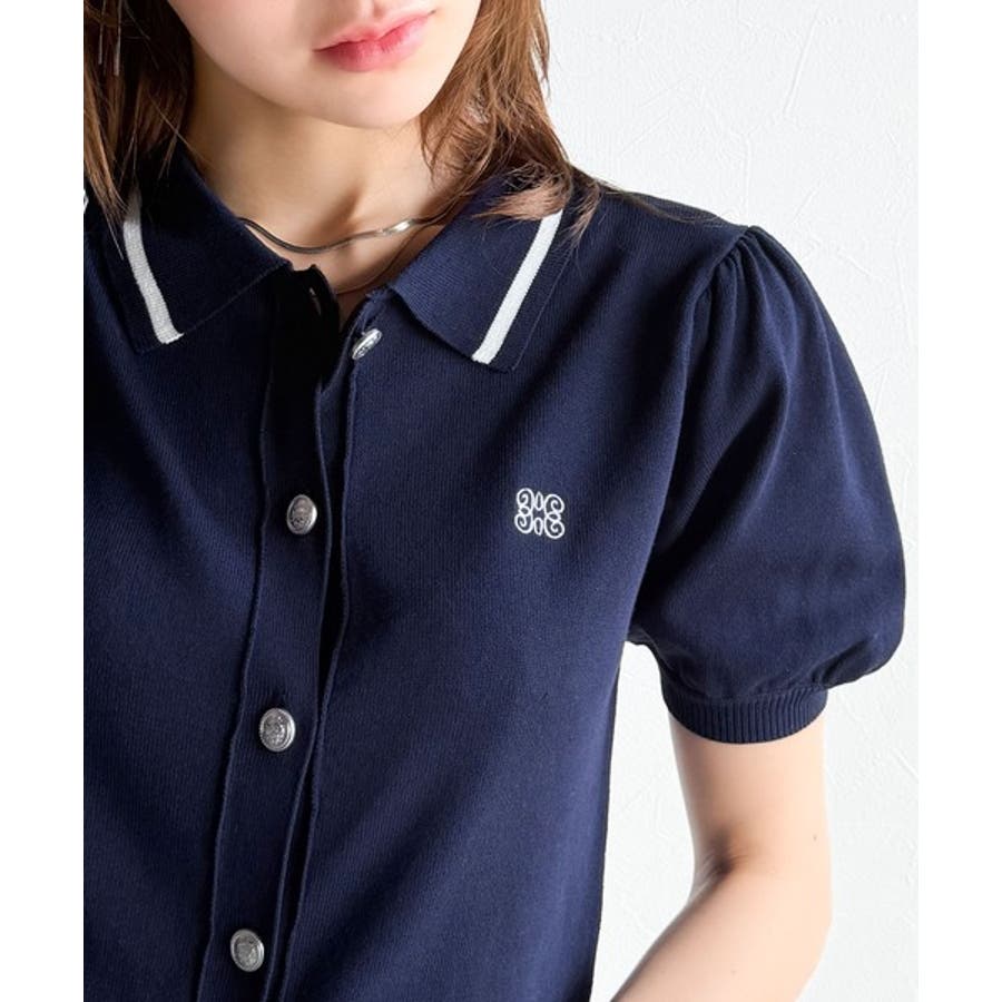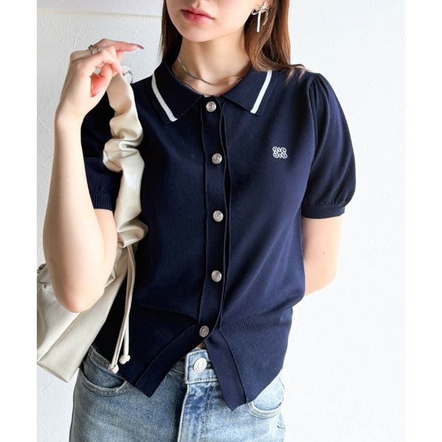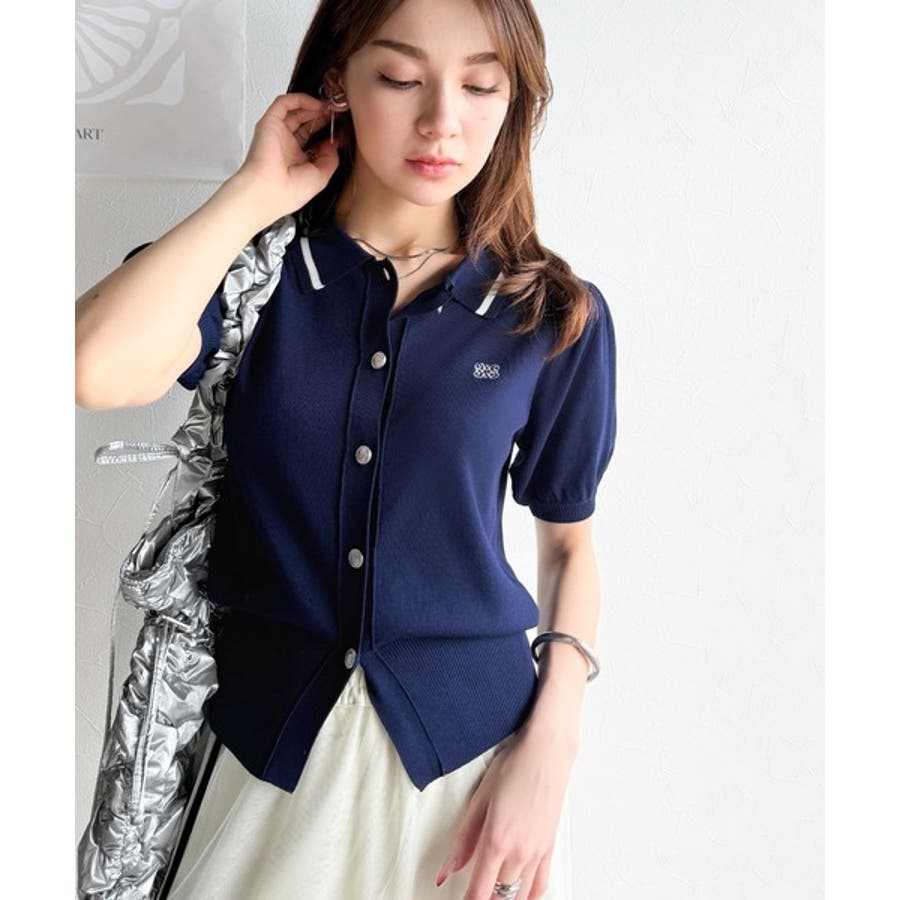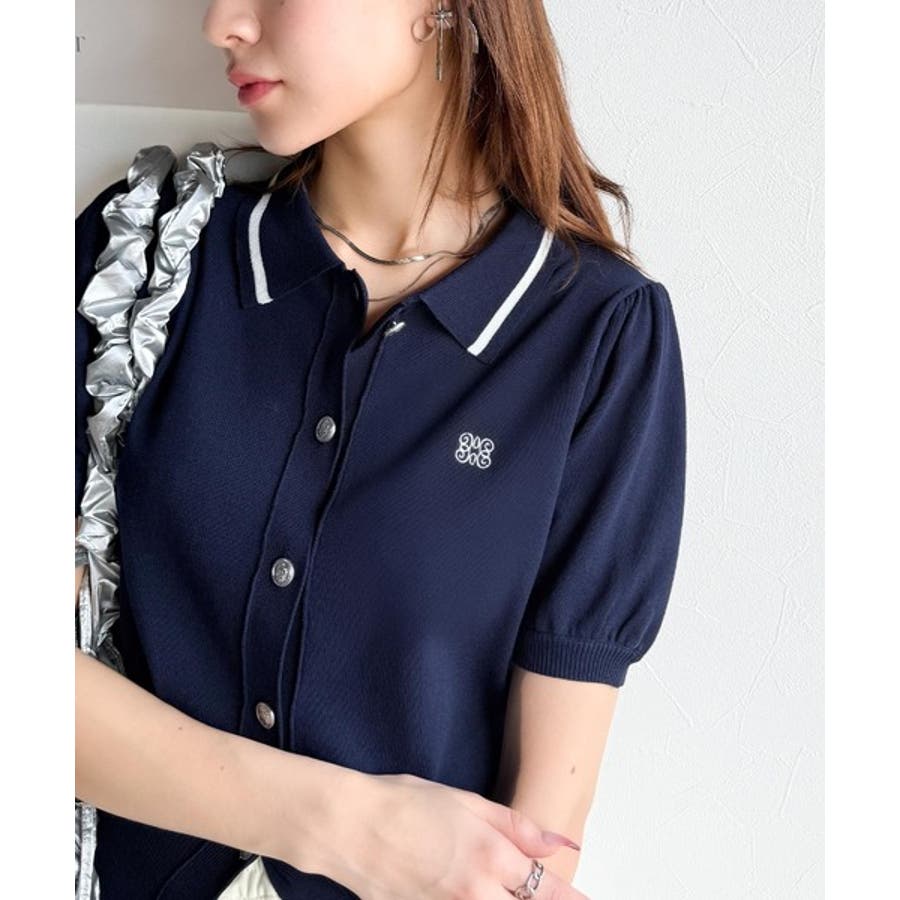 デザインボタンと胸刺繍がアクセントになったサマーニットポロ。