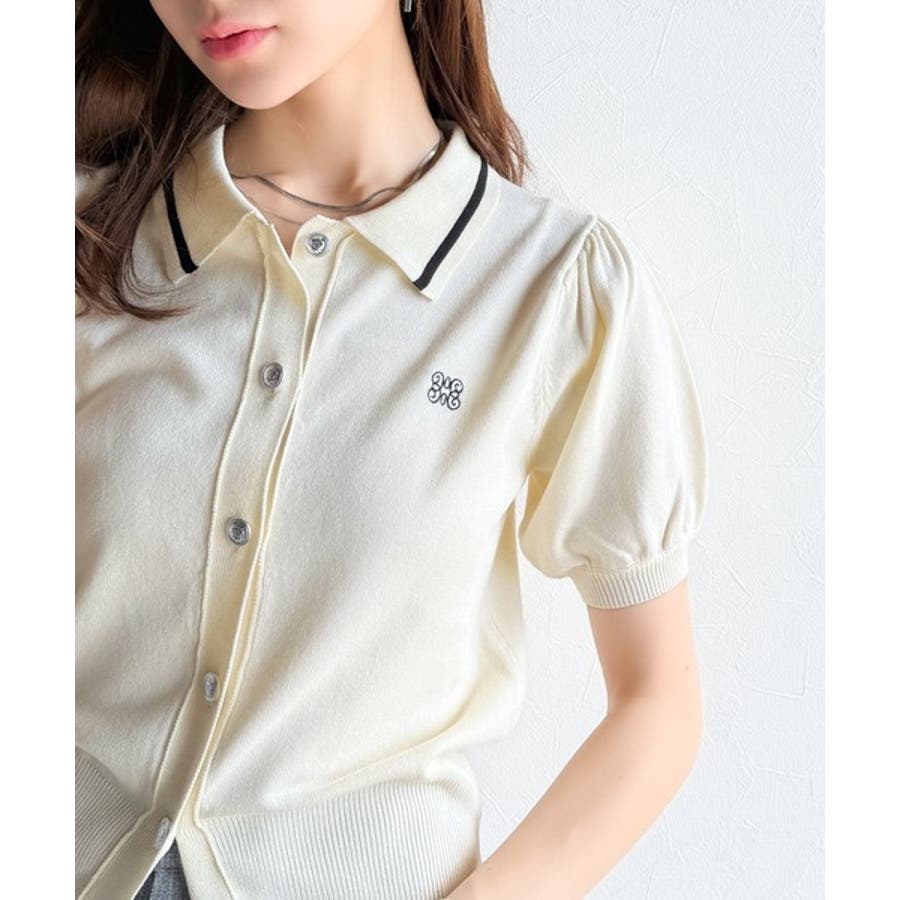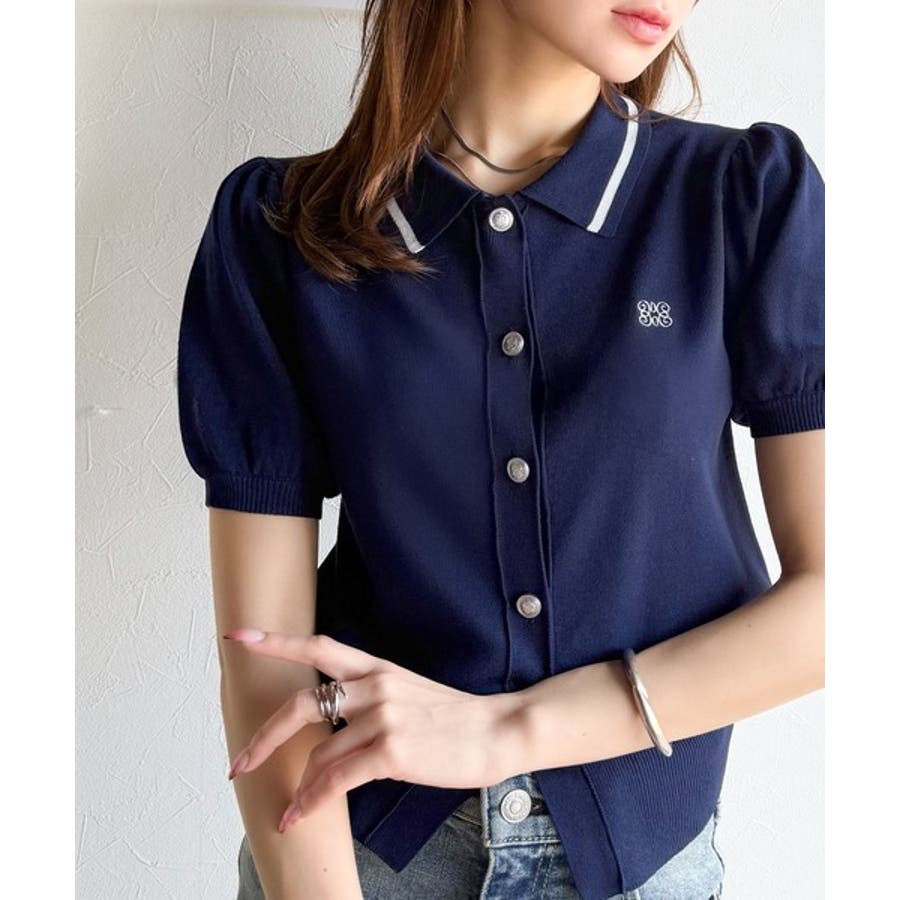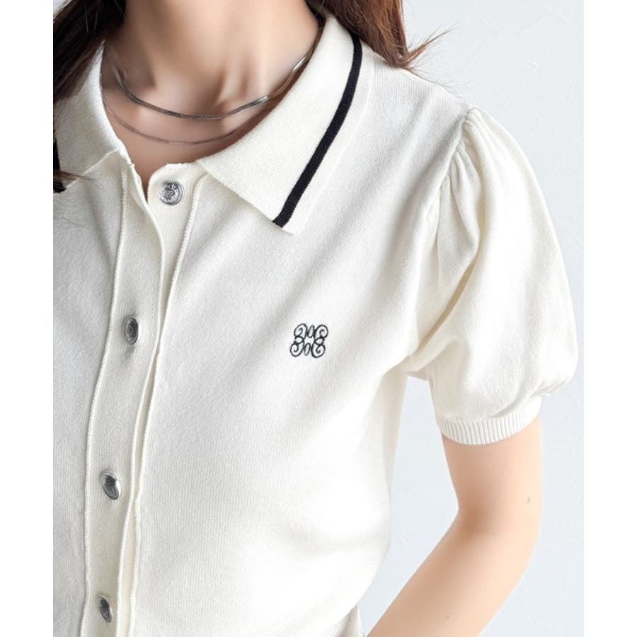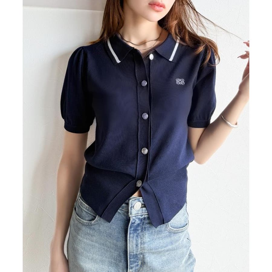 デザインボタンと胸刺繍がアクセントになったサマーニットポロ。