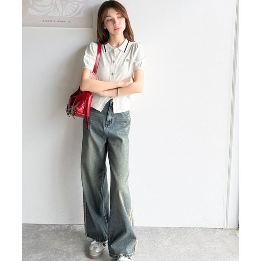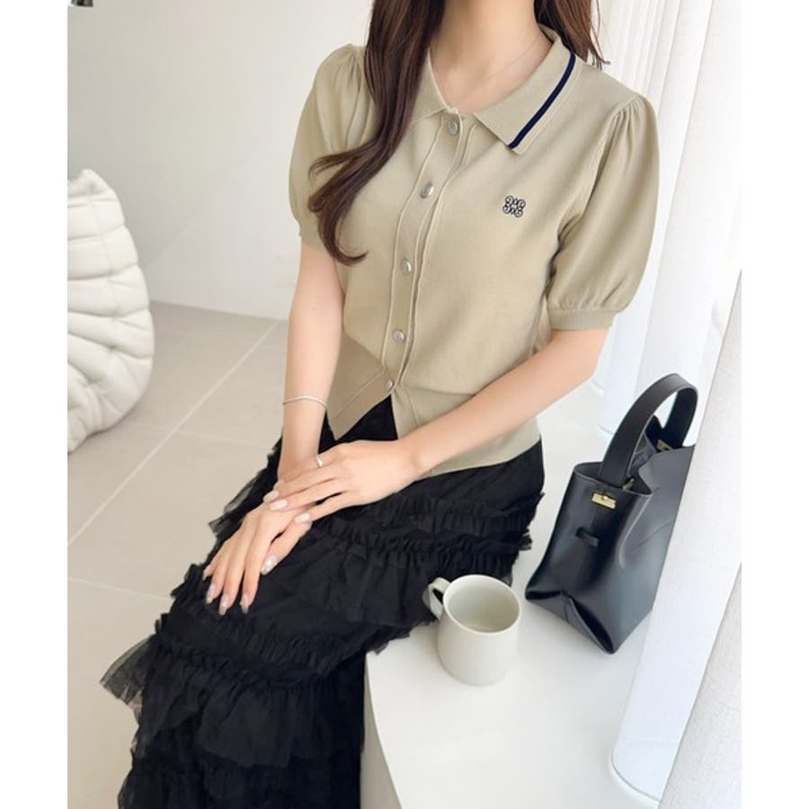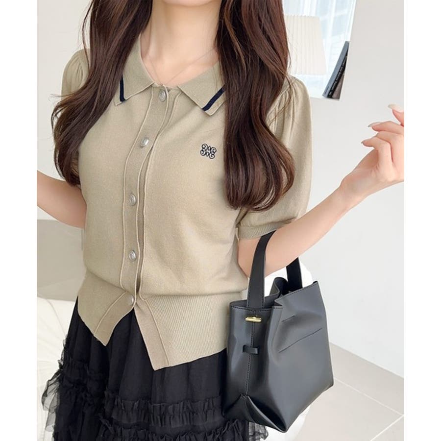 デザインボタン胸刺繍ニットポロは、様々なコーディネートに最適なアイテムです。